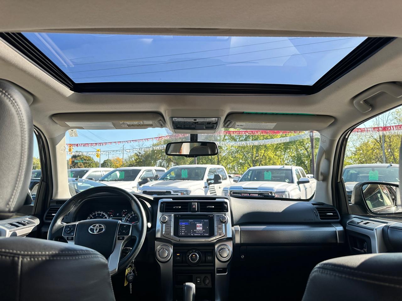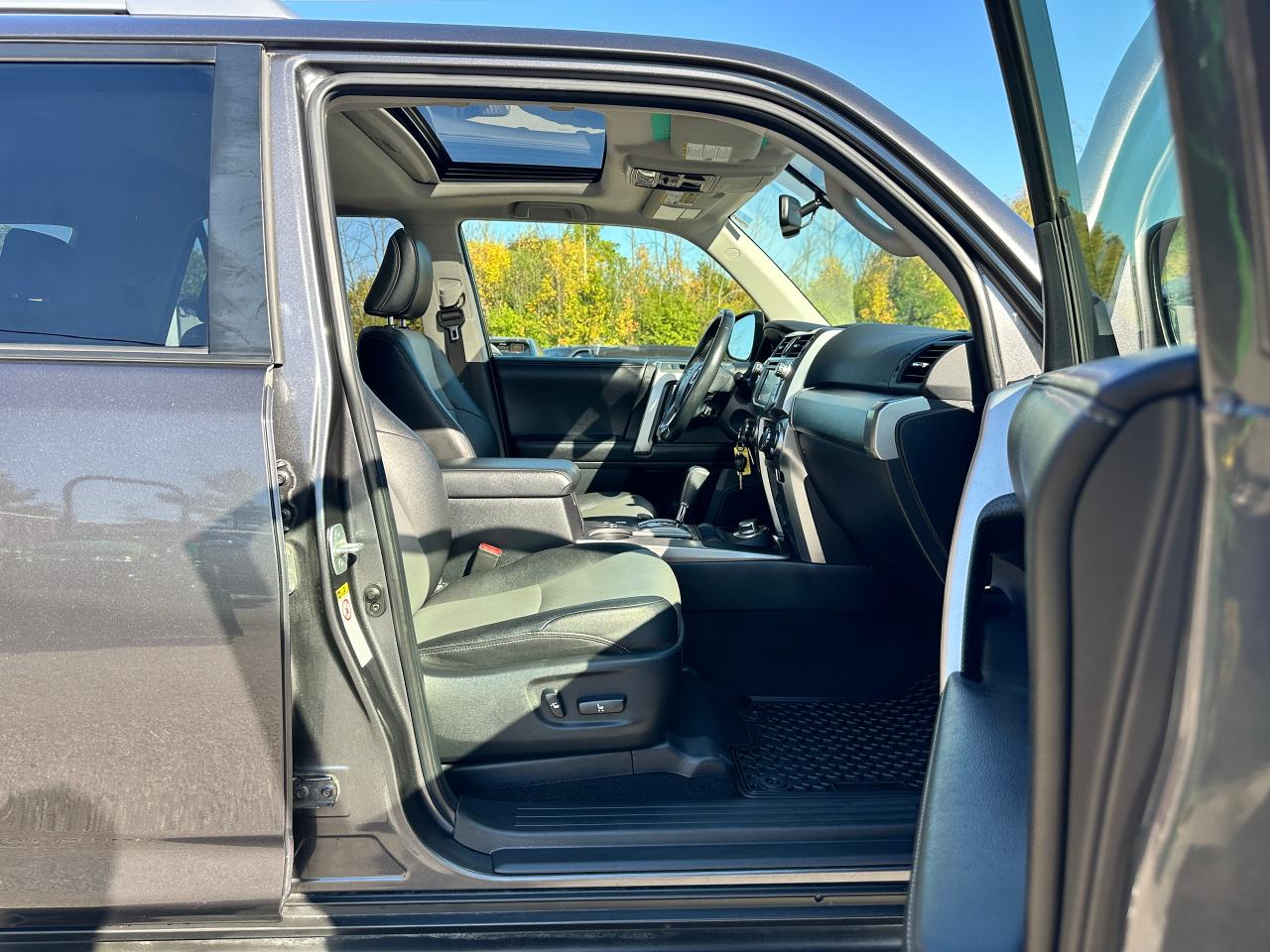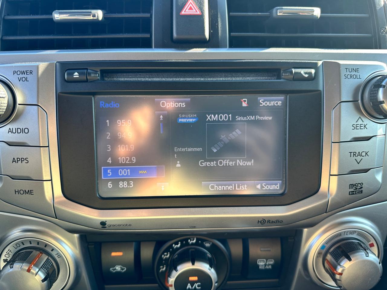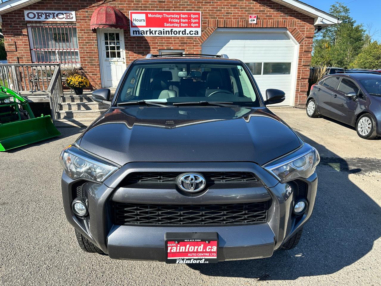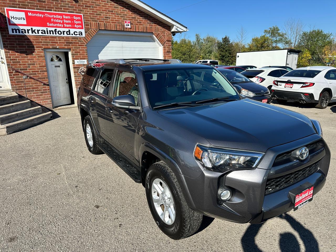 WOW! Super-Clean local Toyota 4Runner from Clarington, ON! This SR5 4WD model looks amazing in its Grey paint and factory alloy wheels, with nice options inside and out! The exterior features keyless entry, a factory power sunroof, headlights and fog lights, tinted privacy glass, black step sides, roof rack rails, a sleek rear spoiler, colour-matched heated side mirrors with integrated turn signals, a trailer hitch, sliding rear glass, gorgeous factory alloy wheels, a powerful 4.0L V6 Engine and Automatic transmission powering the 4WD system! The interior is clean and comfortable with heated front seating with power adjustment and drivers lumbar controls, fold-away third-row seating, power door locks, windows and mirrors, heated windshield wiper area, a leather wrapped steering wheel with audio and cruise controls, an easy to read and use gauge cluster, central touch screen AM/FM/XM Satellite HD Radio with Bluetooth, Navigation, MP3, CD Player and Backup Camera, A/C climate control with front and rear window defrost settings, 4x4 selection knob, universal garage door opener, A-Trac and Hill Descent Assist, USB/AUX/12V accessory ports and more!