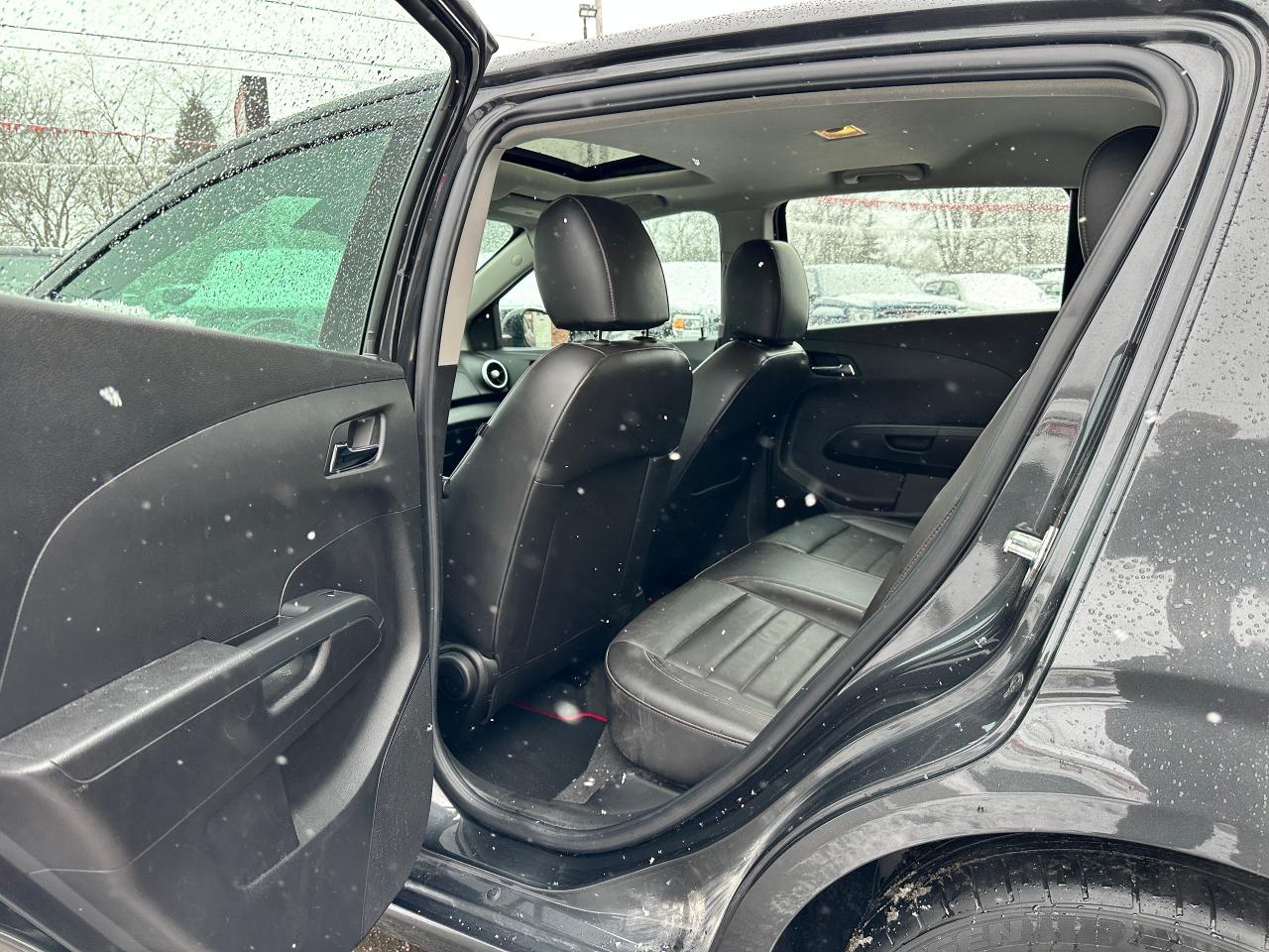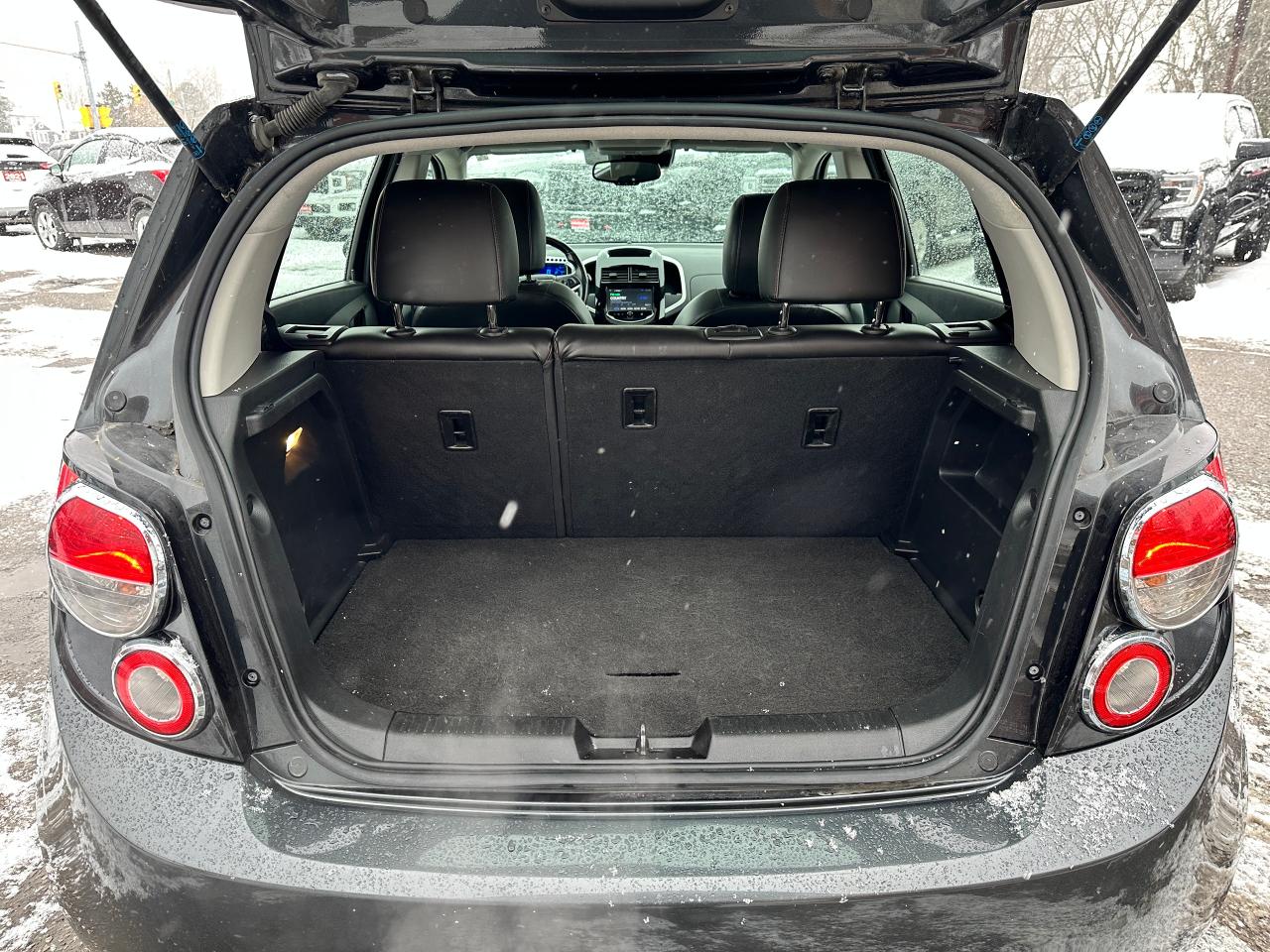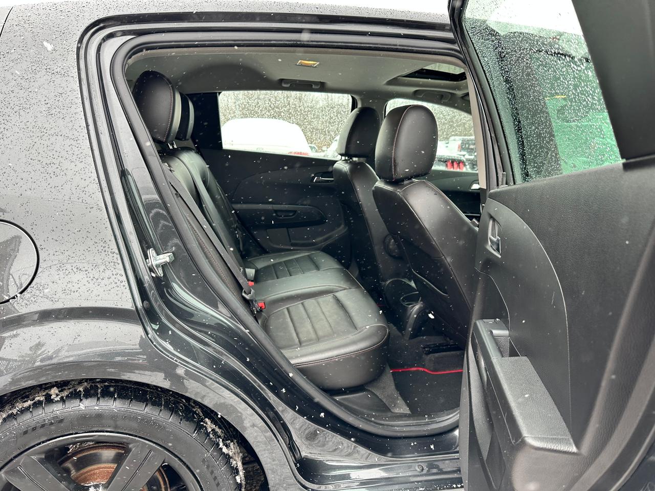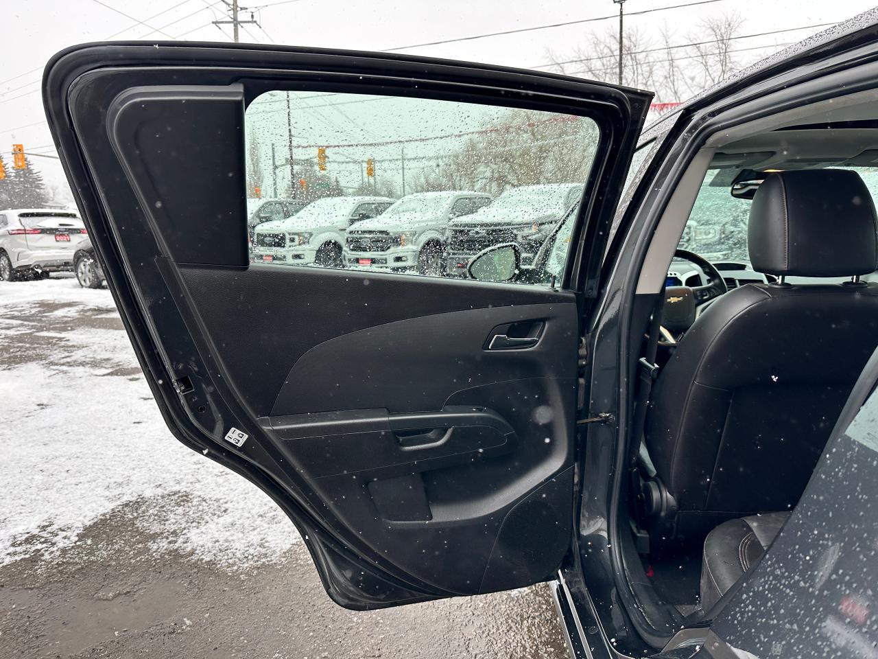 Super-Clean local trade-in Chevrolet Sonic from Bowmanville, ON! This RS hatchback model looks great in its dark Grey/Black paint, with nice options inside and out! The exterior features keyless entry with remote start, automatic headlights, foglights, a large factory power sunroof, colour-matched side mirrors, lane departure and forward collision warnings, a sleek rear spoiler, and gorgeous Black factory alloy wheels, a peppy fuel-efficient 1.4L 4-Cylinder Turbocharged Engine and Automatic transmission! The interior is clean and comfortable with heated leather front seats with RS motifs, power door locks, windows and mirrors, comfortable rear seating area, a decently sized cargo area, RS floor mats, a leather-wrapped steering wheel with Audio and Cruise controls, a sporty central gauge cluster, a large central touch screen AM/FM/XM Satellite Radio with Bluetooth, Backup Camera and SmartPhoneLink features, A/C climate control with front and rear window defrost settings, dash storage area, USB/AUX/12V accessory ports and more!