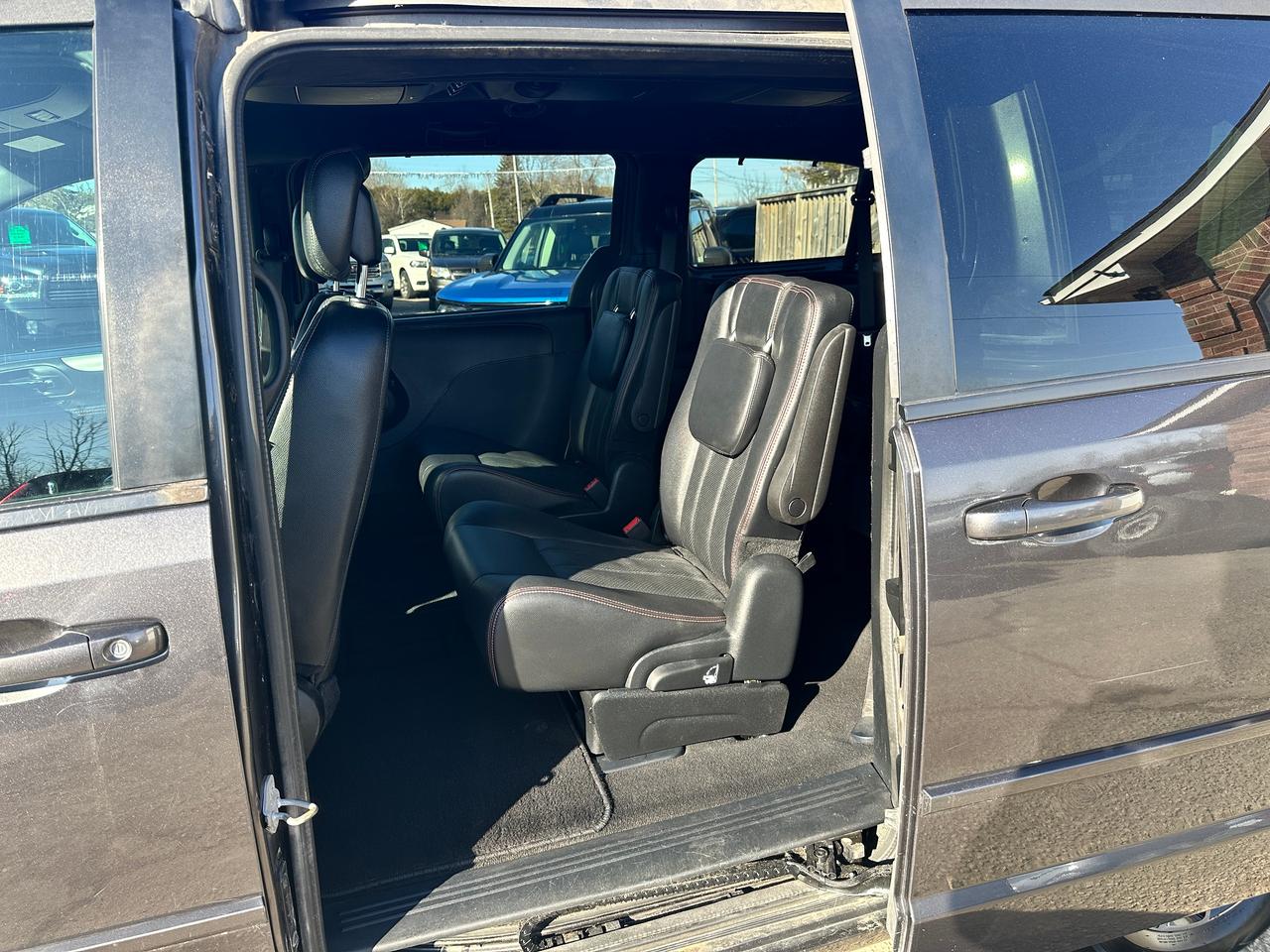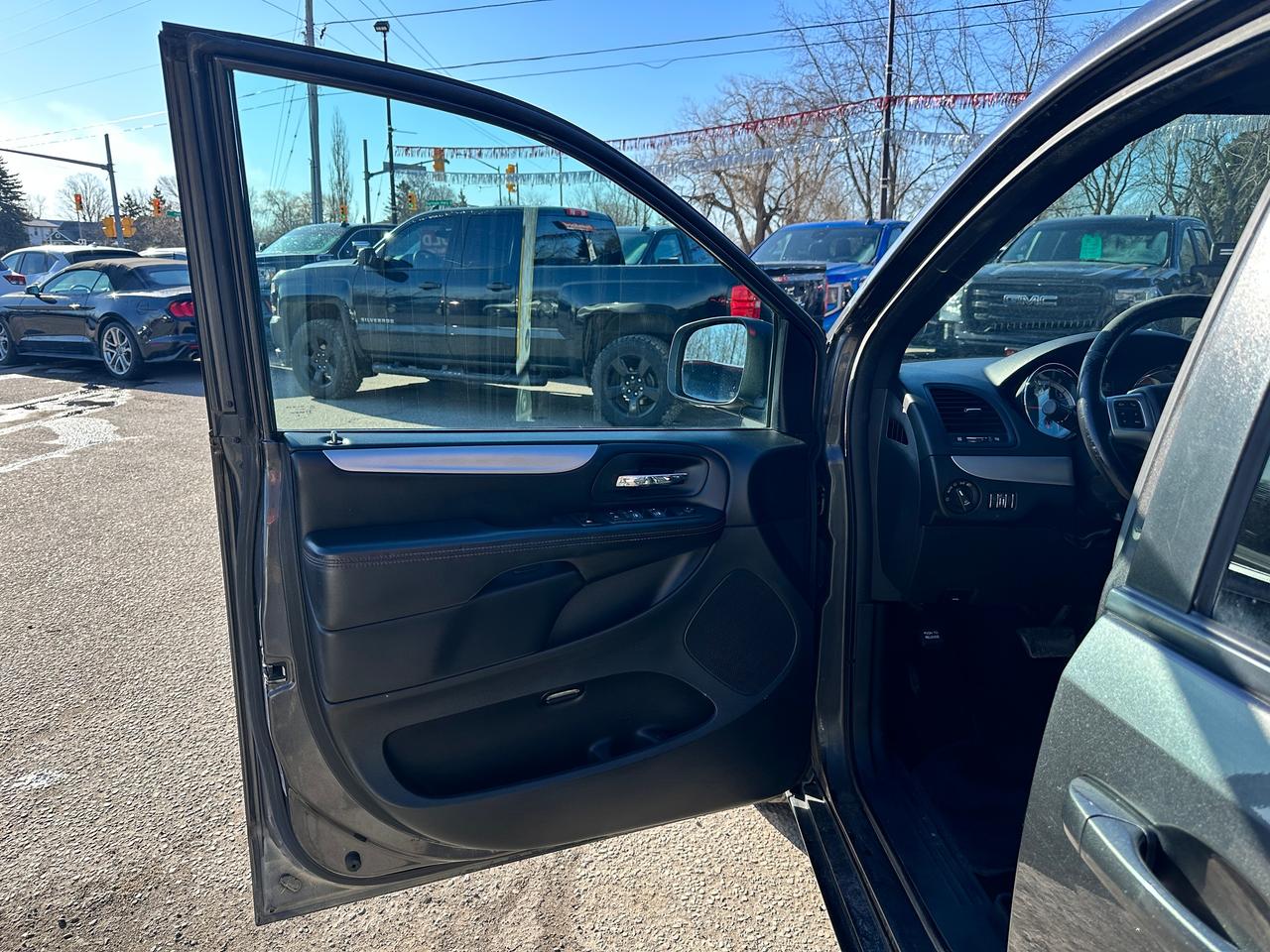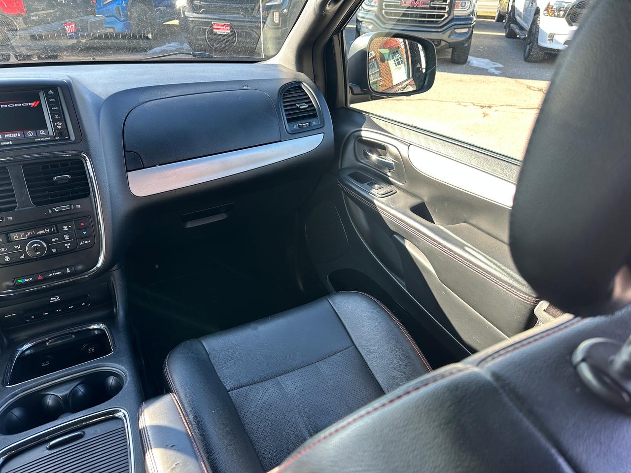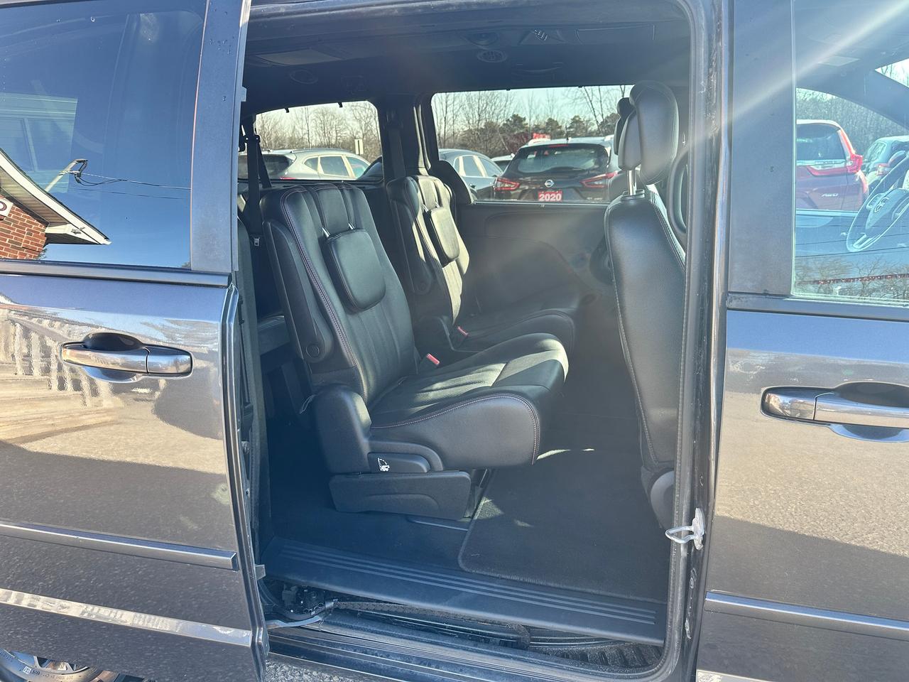 Super-Clean, Well-Equipped and Dealer-Maintained Dodge Grand Caravan from Kingston, ON! This R/T model looks sharp in its Grey paint and factory alloy wheels, with great options inside and out! The exterior features keyless entry with remote start, remote power sliding passenger doors and liftgate, automatic headlights, foglights, colour-matched side mirrors, tinted privacy glass, a sleek rear spoiler, trailer hitch, gorgeous split spoke factory alloy wheels, a powerful 3.6L V6 Engine and an automatic transmission! The interior is clean and comfortable with heated leather front seats with power adjustment and driver's lumbar controls, power door locks, mirrors and windows, power rear vent windows, Stow'N'Go mid and third rows, rear DVD entertainment and BluRay player, a heated leather wrapped steering wheel with Audio and Cruise controls, an easy-to-read and use gauge cluster, central AM/FM/XM Satellite Radio with Bluetooth, CD player and Backup Camera, Dual-Zone A/C climate control with front and rear window defrost settings, universal garage door openers, convex rear row mirror, dash storage area, USB/AUX/12V accessory ports and more!