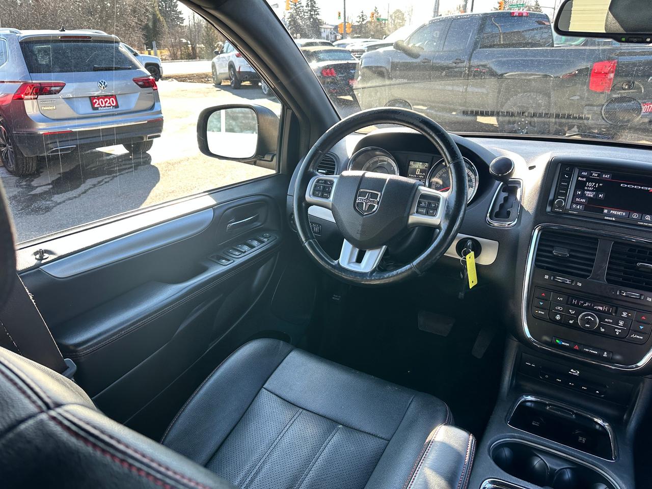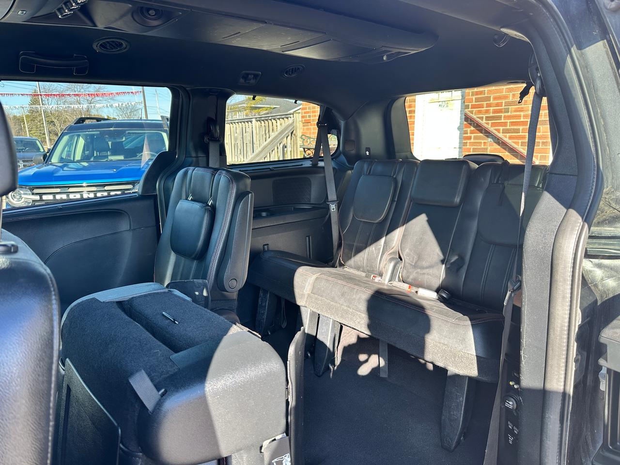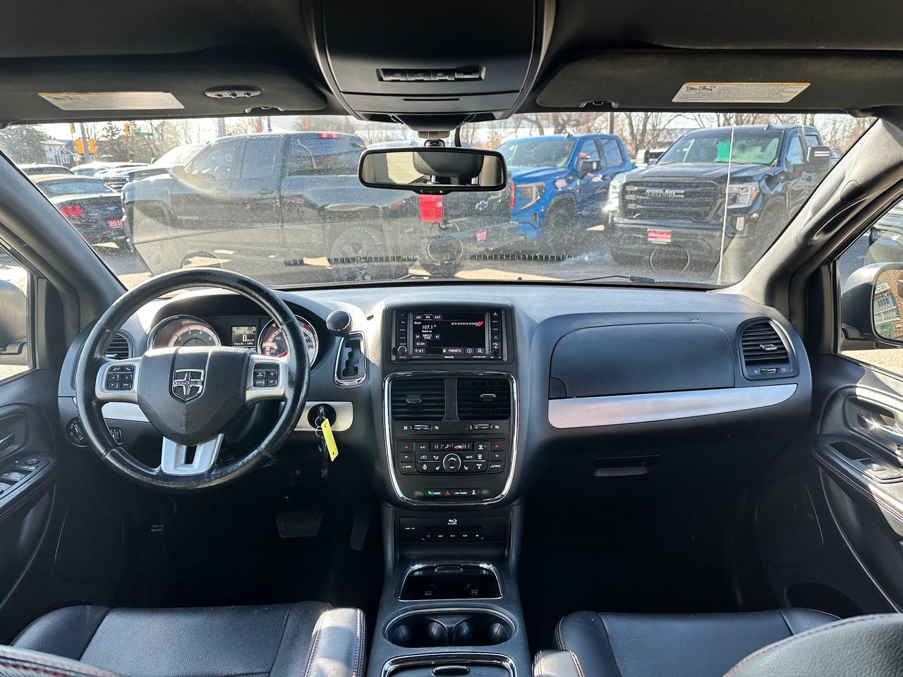 Super-Clean, Well-Equipped and Dealer-Maintained Dodge Grand Caravan from Kingston, ON! This R/T model looks sharp in its Grey paint and factory alloy wheels, with great options inside and out! The exterior features keyless entry with remote start, remote power sliding passenger doors and liftgate, automatic headlights, foglights, colour-matched side mirrors, tinted privacy glass, a sleek rear spoiler, trailer hitch, gorgeous split spoke factory alloy wheels, a powerful 3.6L V6 Engine and an automatic transmission! The interior is clean and comfortable with heated leather front seats with power adjustment and driver's lumbar controls, power door locks, mirrors and windows, power rear vent windows, Stow'N'Go mid and third rows, rear DVD entertainment and BluRay player, a heated leather wrapped steering wheel with Audio and Cruise controls, an easy-to-read and use gauge cluster, central AM/FM/XM Satellite Radio with Bluetooth, CD player and Backup Camera, Dual-Zone A/C climate control with front and rear window defrost settings, universal garage door openers, convex rear row mirror, dash storage area, USB/AUX/12V accessory ports and more!