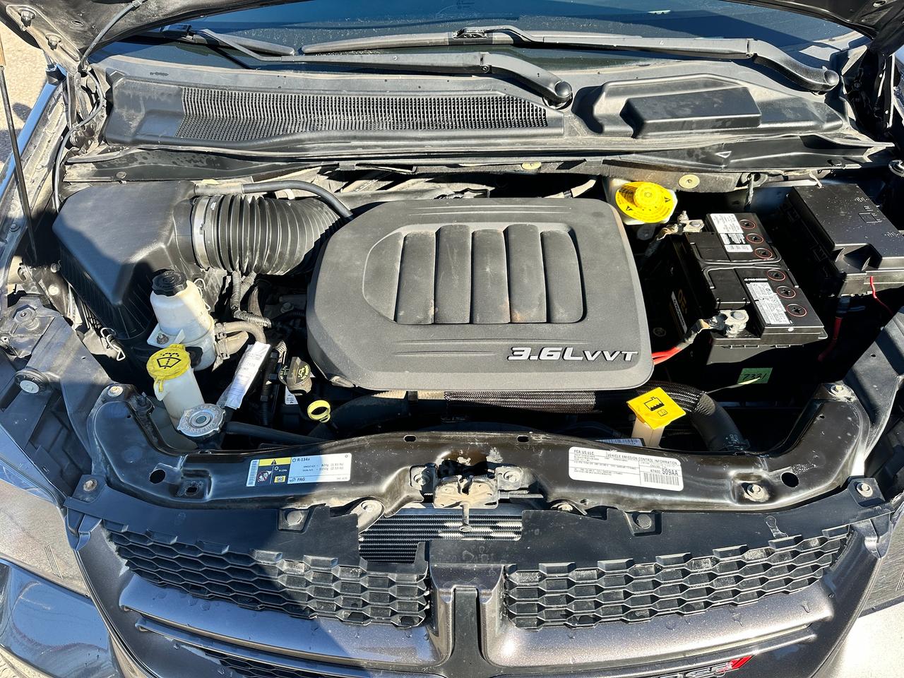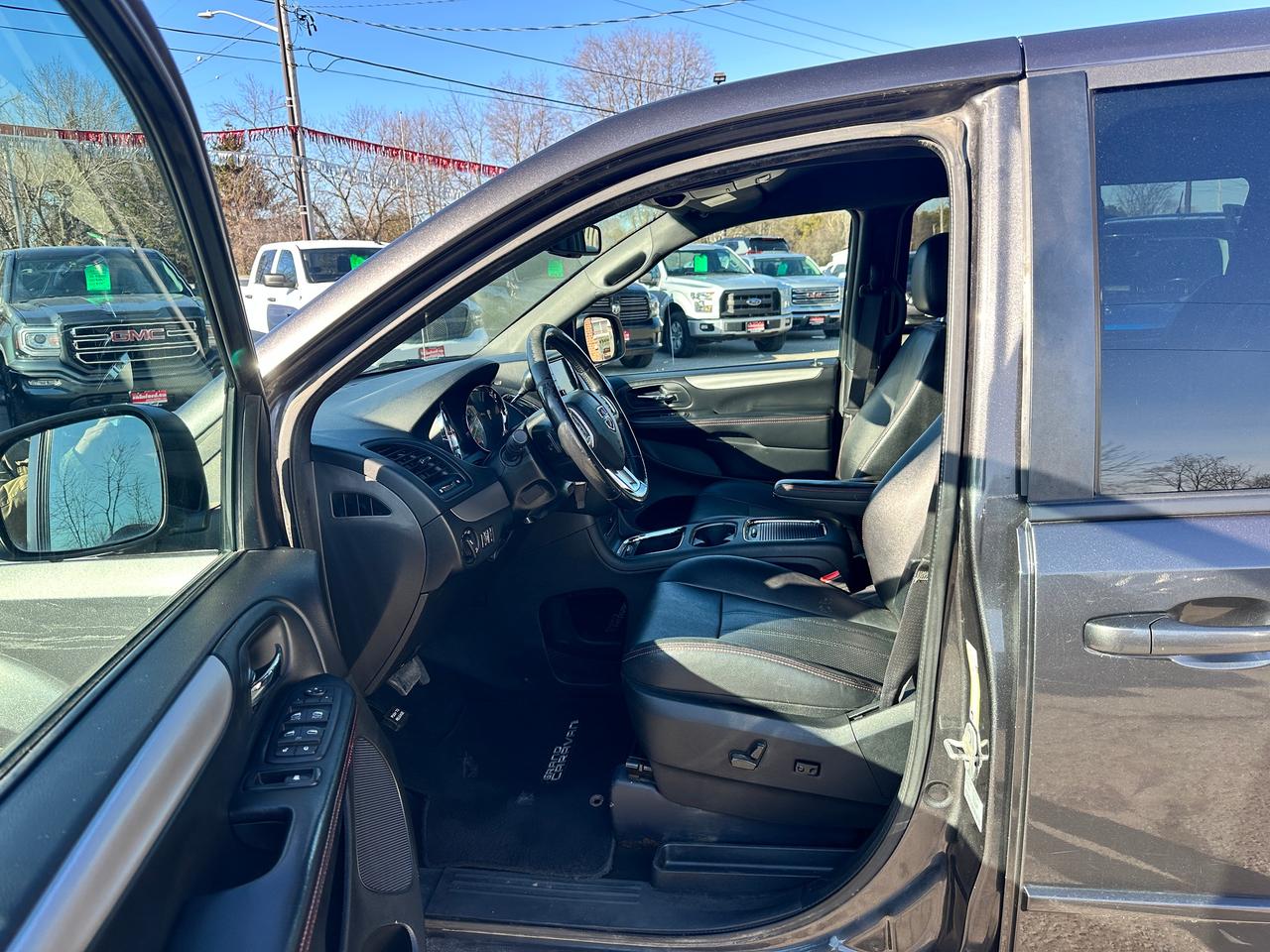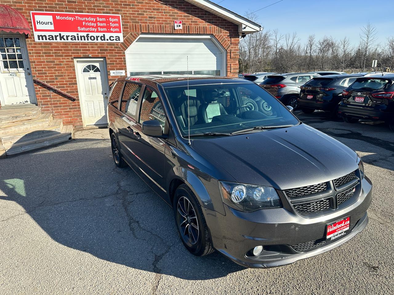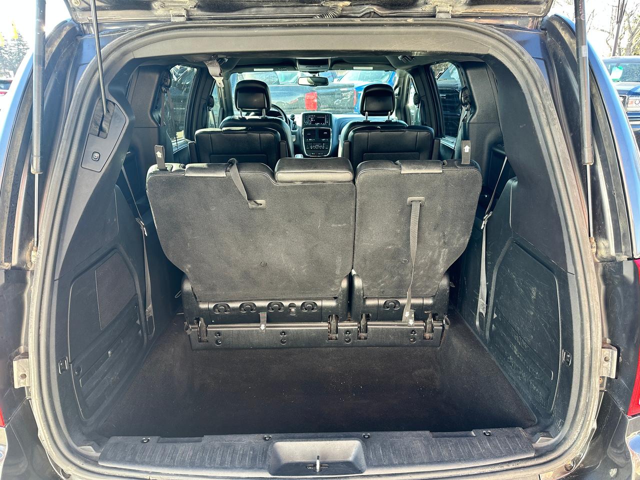 Super-Clean, Well-Equipped and Dealer-Maintained Dodge Grand Caravan from Kingston, ON! This R/T model looks sharp in its Grey paint and factory alloy wheels, with great options inside and out! The exterior features keyless entry with remote start, remote power sliding passenger doors and liftgate, automatic headlights, foglights, colour-matched side mirrors, tinted privacy glass, a sleek rear spoiler, trailer hitch, gorgeous split spoke factory alloy wheels, a powerful 3.6L V6 Engine and an automatic transmission! The interior is clean and comfortable with heated leather front seats with power adjustment and driver's lumbar controls, power door locks, mirrors and windows, power rear vent windows, Stow'N'Go mid and third rows, rear DVD entertainment and BluRay player, a heated leather wrapped steering wheel with Audio and Cruise controls, an easy-to-read and use gauge cluster, central AM/FM/XM Satellite Radio with Bluetooth, CD player and Backup Camera, Dual-Zone A/C climate control with front and rear window defrost settings, universal garage door openers, convex rear row mirror, dash storage area, USB/AUX/12V accessory ports and more!