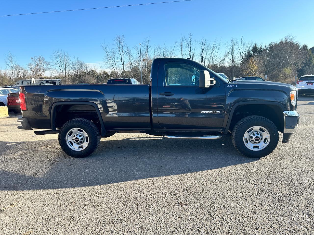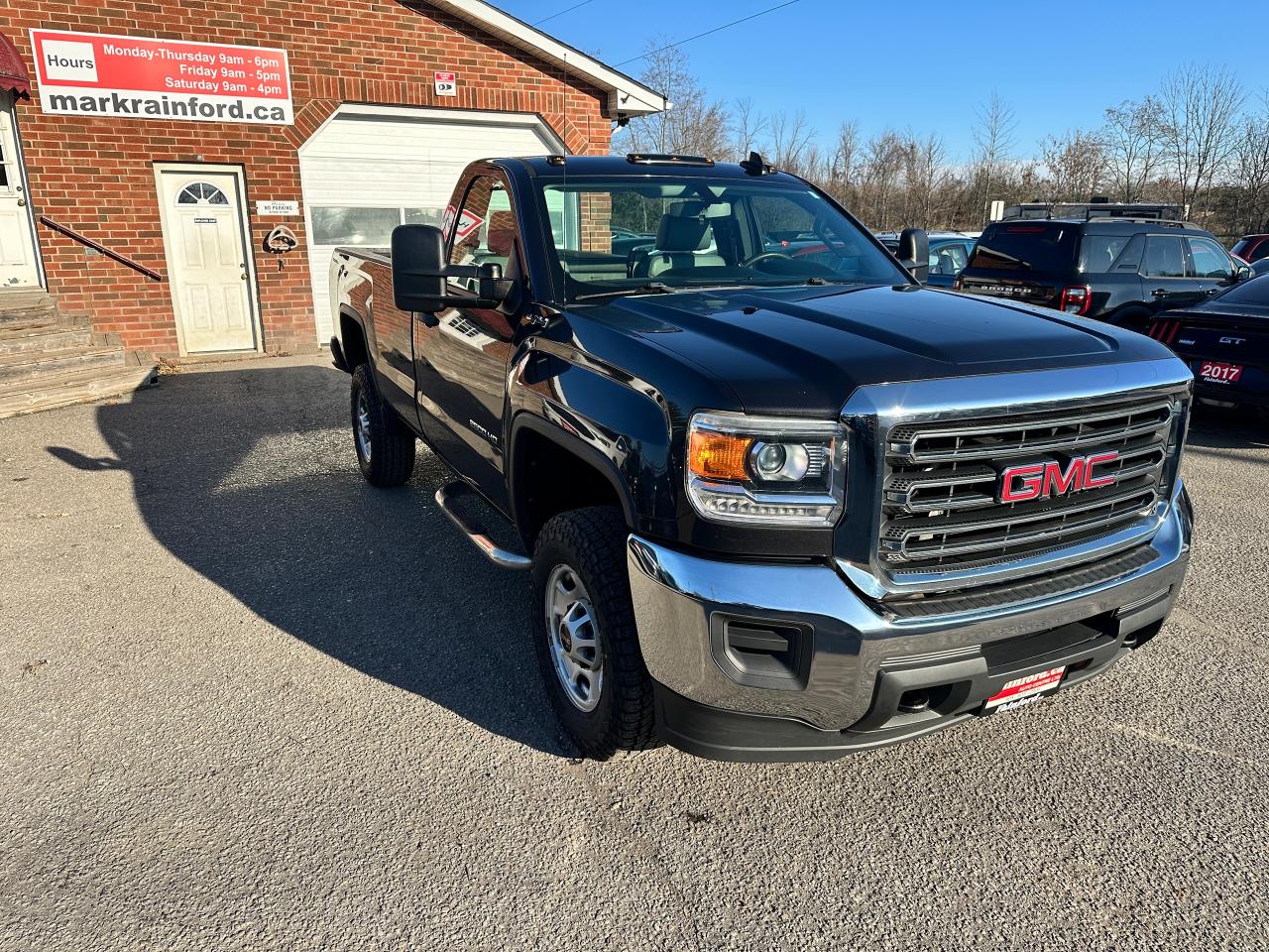Clean local GMC Sierra 2500HD from Bowmanville, ON! This Base Regular Cab 4x4 model looks nice in its Black paint and factory wheels, and is ready to do whatever you need! The exterior features keyed entry, automatic headlights, front tow hooks, a trailer hitch, tow-style mirrors, step sides, bumper steps, overhead marker lights, a spray-in bedliner for its long box, NEW All-Season Tires freshly installed, a powerful 6.0L V8 Gas Engine and Automatic transmission driving the 4x4 system! The interior is clean and comfortable with work-ready floors and all-weather floor mats, seating for 3 through its fold-up centre console, power door locks, roll down windows, integrated electronic trailer brake controller, steering wheel mounted cruise controls, an easy-to-read and use gauge cluster, a mechanical 4x4 selection lever, column gear selection and Trailer mode, central touch screen AM/FM Radio with Bluetooth, Apple CarPlay and Android Auto, A/C climate controls with front window defrost setting, bed light and Auxillary Switches, 12V accessory ports and more!