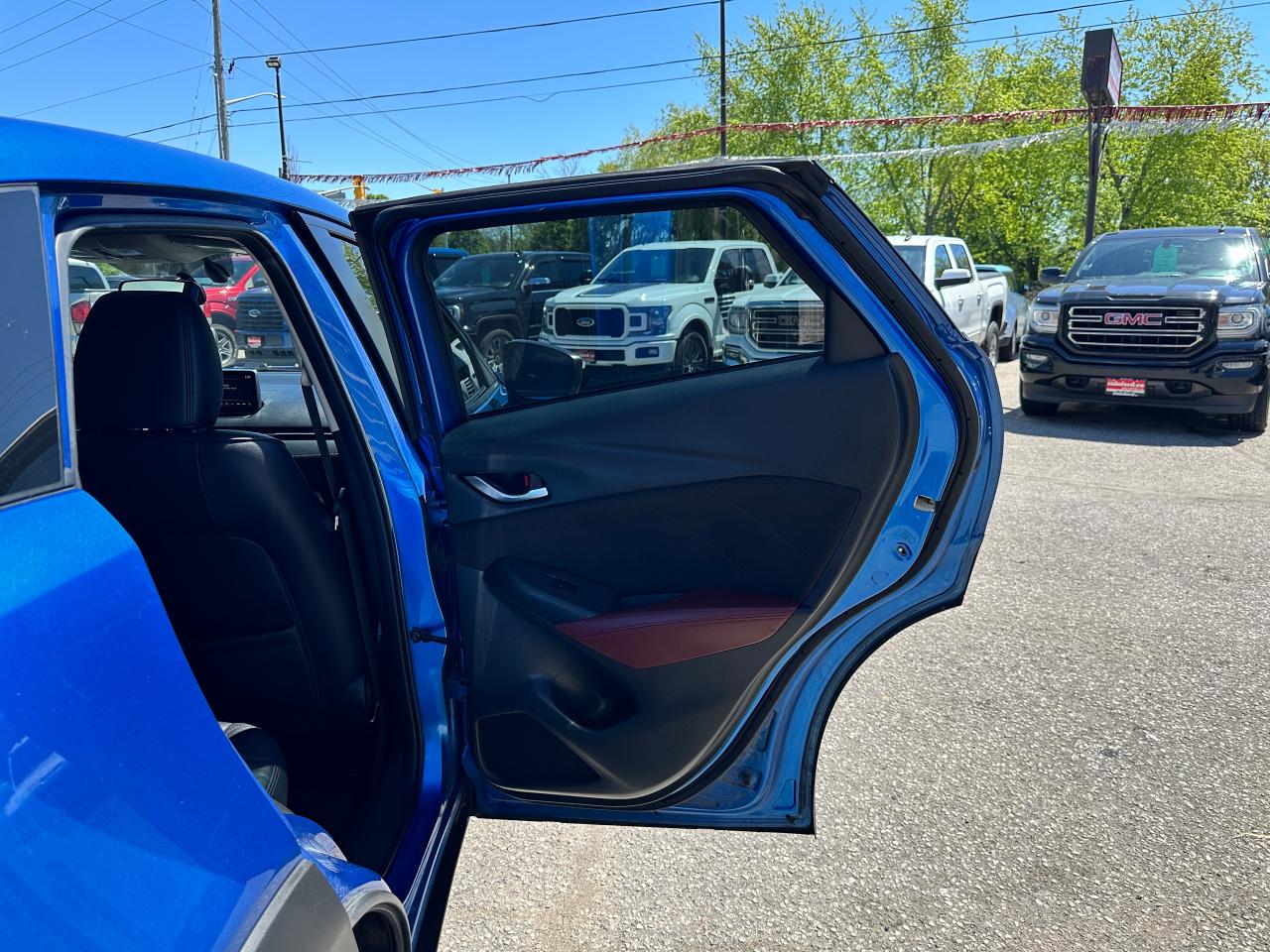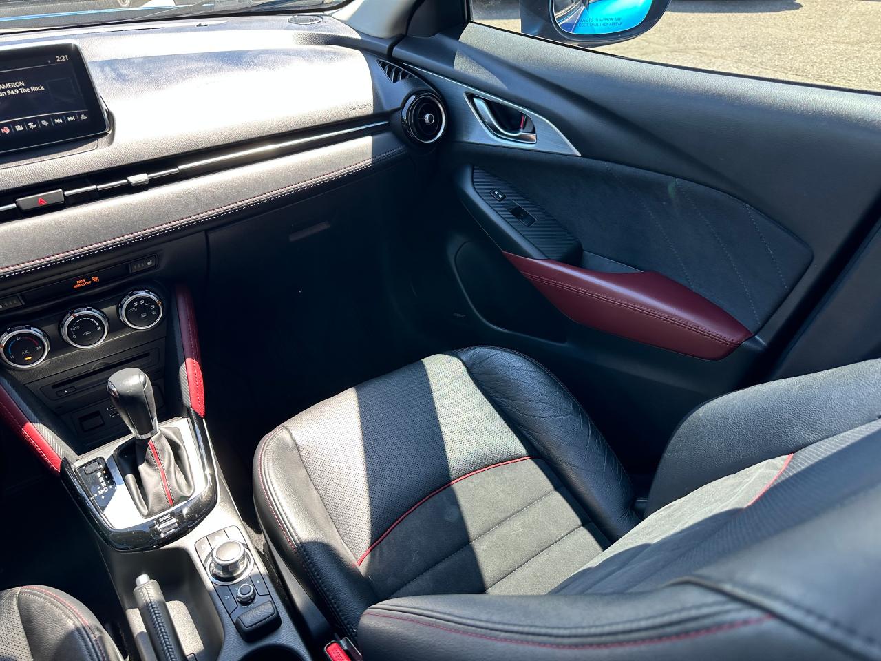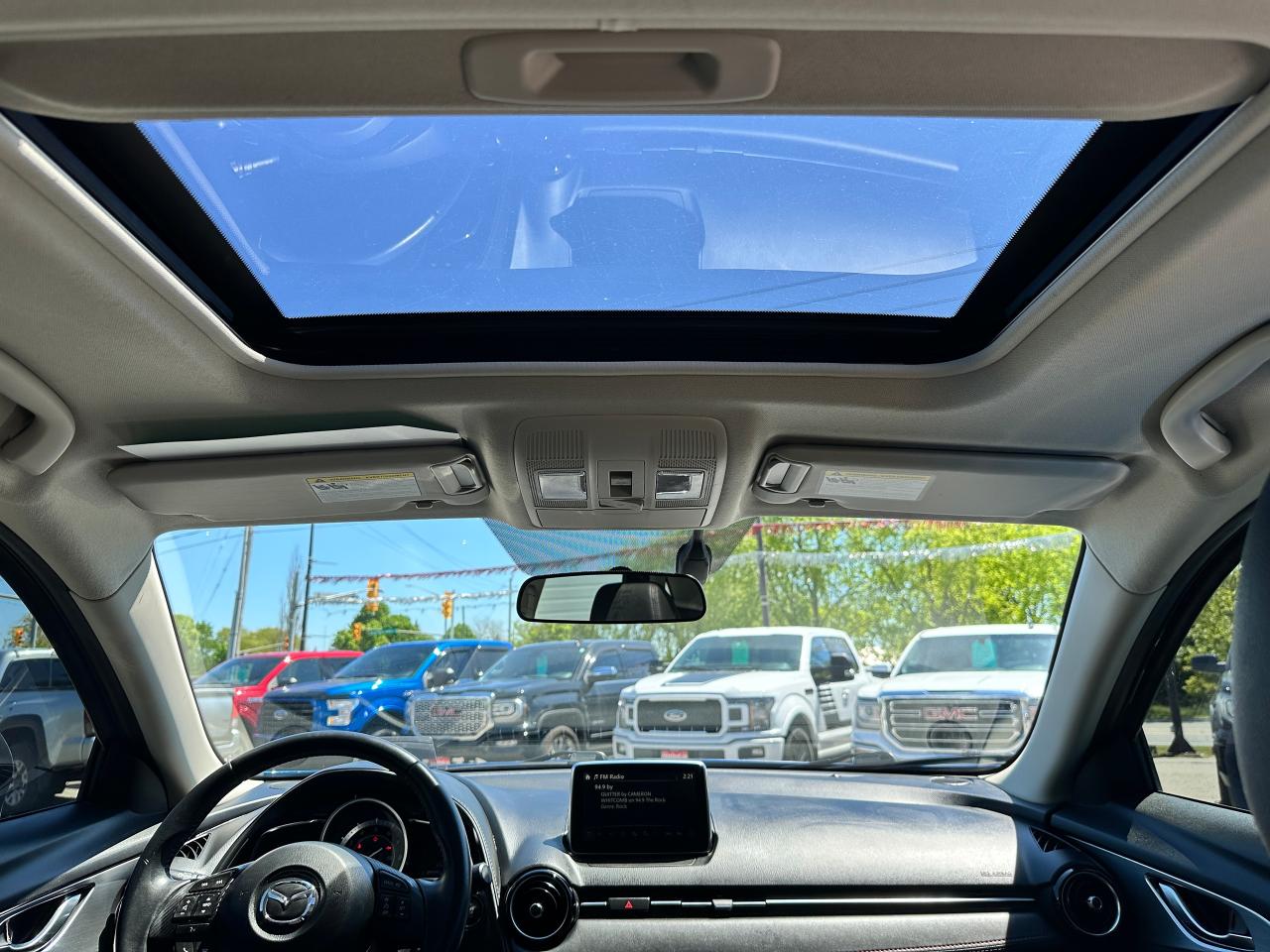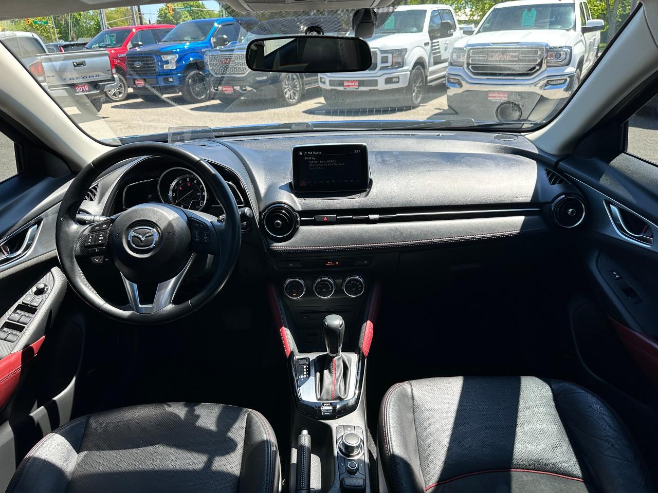 Super-Clean and well-equipped Mazda CX-3 from Ottawa, ON! This GT AWD model looks stunning its Blue paint and factory alloy wheels, with fantastic options inside and out! The exterior features keyless entry with proximity key, automatic headlights, foglights, factory power sunroof, colour-matched side mirrors with integrated turn signals, sporty dual exhaust and sleek spoiler, tinted privacy glass, sharp exterior styling, gorgeous machine finished dark Alloy wheels, a peppy and fuel efficient 2.0L 4-cylinder Engine and Automatic transmission powering the All-Wheel-Drive system! The interior is clean and comfortable with heated leather front seats, a comfortable rear seating area and a large cargo area with a cargo shade, all-weather Mazda mats, power door locks, windows and mirrors, a leather wrapped steering wheel with Audio and Cruise controls, paddle shifters, an easy to read and use gauge cluster, push button start, central AM/FM HD Radio with BOSE Premium Audio, Bluetooth, Navigation, Backup Camera and CD Player, A/C Climate control with front and rear window defrost settings, USB/AUX/12V accessory ports, SPORT Driving mode and more!