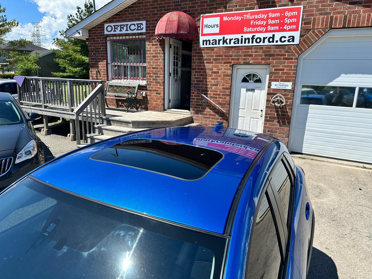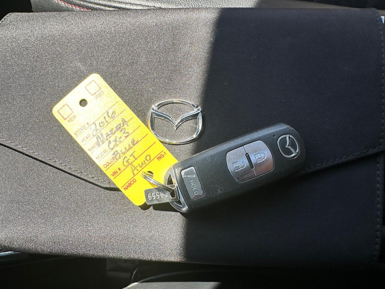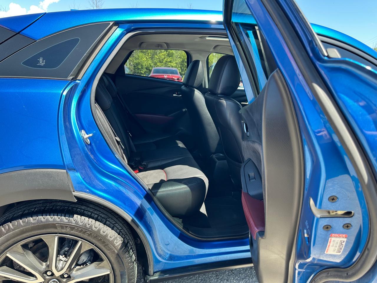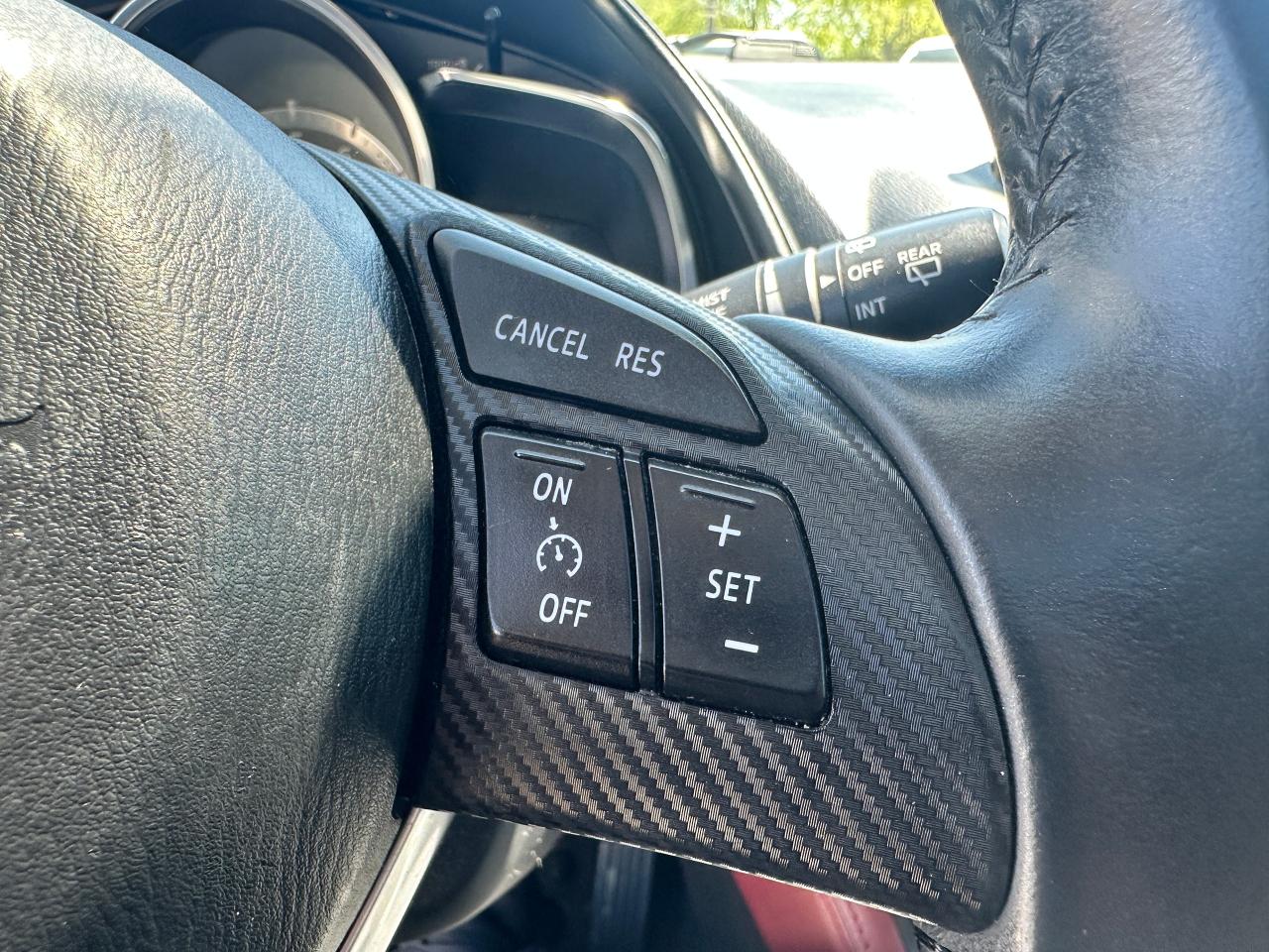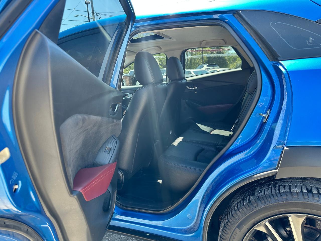 Super-Clean and well-equipped Mazda CX-3 from Ottawa, ON! This GT AWD model looks stunning its Blue paint and factory alloy wheels, with fantastic options inside and out! The exterior features keyless entry with proximity key, automatic headlights, foglights, factory power sunroof, colour-matched side mirrors with integrated turn signals, sporty dual exhaust and sleek spoiler, tinted privacy glass, sharp exterior styling, gorgeous machine finished dark Alloy wheels, a peppy and fuel efficient 2.0L 4-cylinder Engine and Automatic transmission powering the All-Wheel-Drive system! The interior is clean and comfortable with heated leather front seats, a comfortable rear seating area and a large cargo area with a cargo shade, all-weather Mazda mats, power door locks, windows and mirrors, a leather wrapped steering wheel with Audio and Cruise controls, paddle shifters, an easy to read and use gauge cluster, push button start, central AM/FM HD Radio with BOSE Premium Audio, Bluetooth, Navigation, Backup Camera and CD Player, A/C Climate control with front and rear window defrost settings, USB/AUX/12V accessory ports, SPORT Driving mode and more!