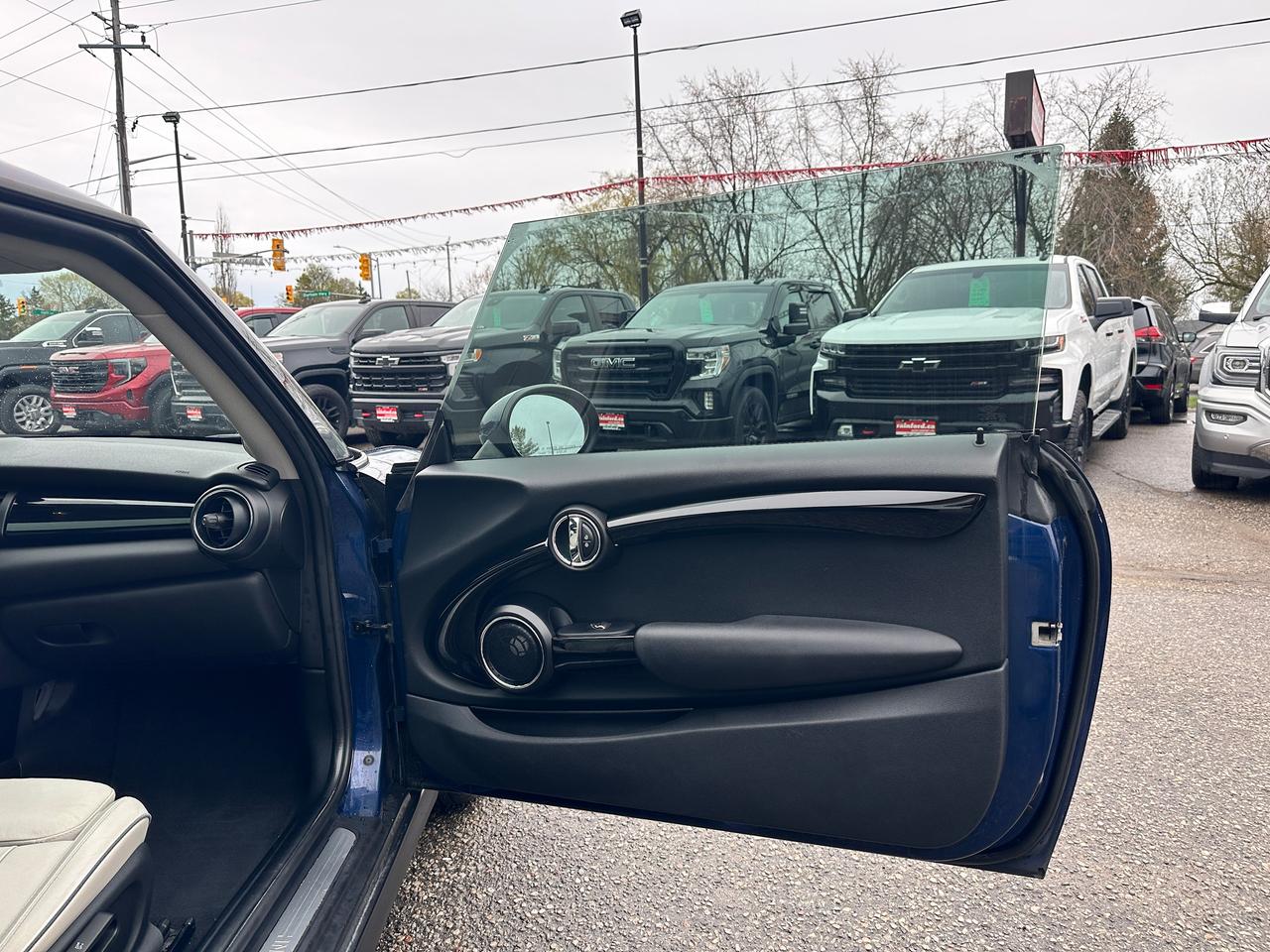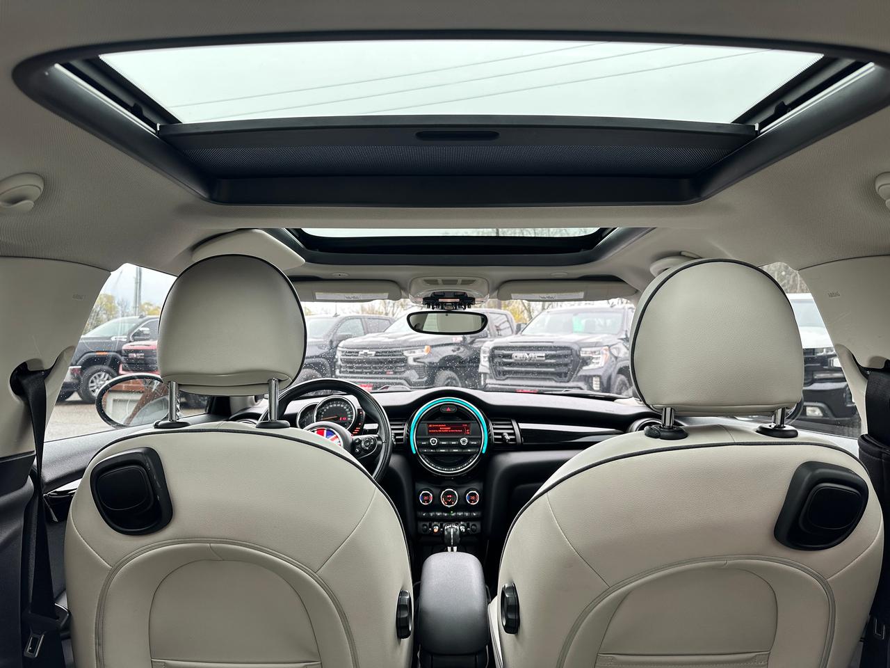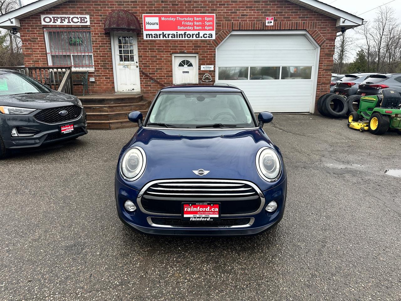 WOW! Super-Clean LOW KM Local MINI Cooper from Bowmanville, ON! This 2-Door Hatchback model looks incredible in its Dark Blue paint and Black Alloy wheels! The exterior features keyless entry with proximity keys, dual moonroofs, colour-matched side mirrors, automatic headlights, foglights, tinted privacy glass, a sleek rear spoiler, beautiful Black alloy wheels, a peppy fuel-efficient 1.5L 3-Cylinder Turbocharged Engine and 6-Speed Manual Transmission, Car Cover Included! The interior is clean and comfortable with heated leather front seating, power door locks, windows and mirrors, a leather wrapped steering wheel with Audio and Cruise controls, a sporty gauge cluster, push button start, a central AM/FM Radio with Bluetooth, and MP3 capability, Dual-Zone A/C Climate controls with front and rear window defrost settings, heated front windscreen wiper area, Auto-Stop/Start override switch, USB/AUX/12V accessory ports, Sport/Green Driving modes, and more!