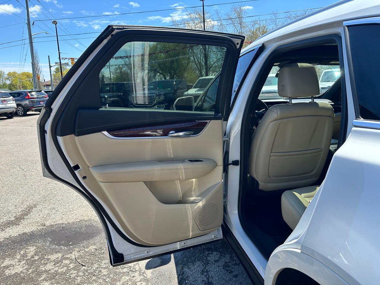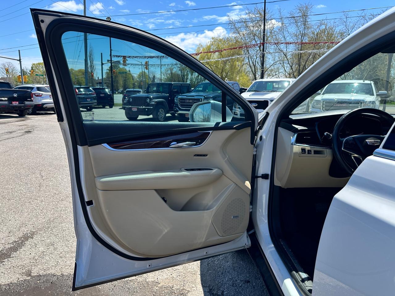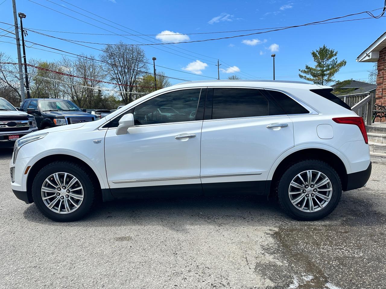 Clean and tidy Cadillac XT5 from Mississauga, ON! This Luxury FWD model is a real head turner in its Pearl White paint and factory alloy wheels, with nice options inside and out! The exterior features keyless entry with remote start and proximity keys, a remote power liftgate, automatic headlights, fog lights, colour-matched power folding side mirrors, blind spot monitor, parking sensors, a large panoramic sunroof, roof rack rails, tinted privacy glass, a sleek rear spoiler, chromed accents, sporty dual rear exhaust, gorgeous factory alloy wheels, a powerful 3.6L V6 Engine and Automatic transmission! The interior is clean and comfortable, with heated leather front seats with power adjustment, lumbar controls, and driver's memory settings, power door locks, windows and mirrors, a heated leather wrapped steering wheel with audio and cruise controls, an easy to read and use gauge cluster, push button start, a spacious and comfortable rear seating area, large cargo area with retractable shade, a large central touch screen AM/FM/XM Satellite HD Radio with Bluetooth, Apple CarPlay, Android Auto, Compass, and Backup Camera, Dual-Zone A/C climate control with front and rear window defrost settings, universal garage door opener, USB/AUX/12V accessory ports and more!