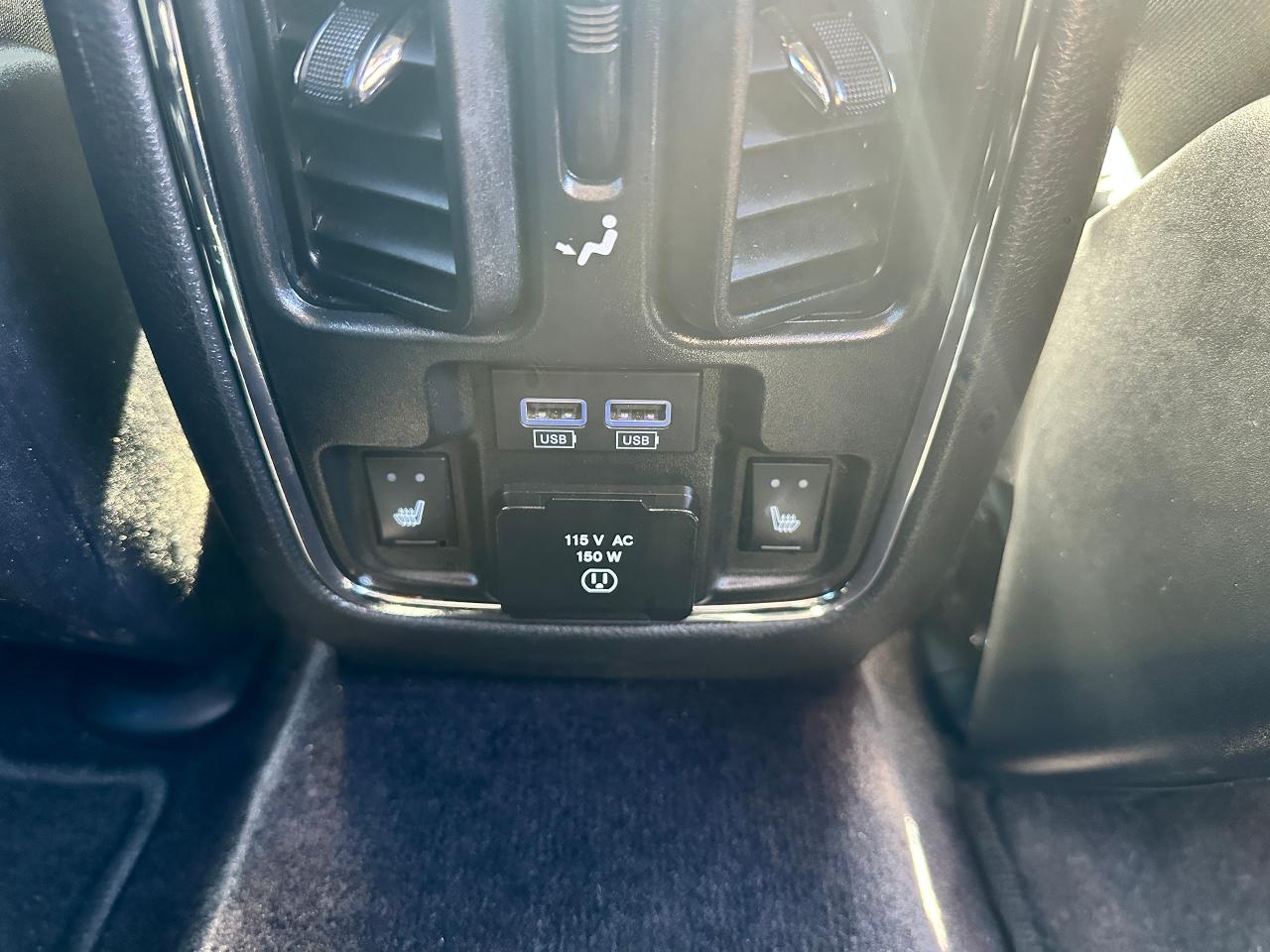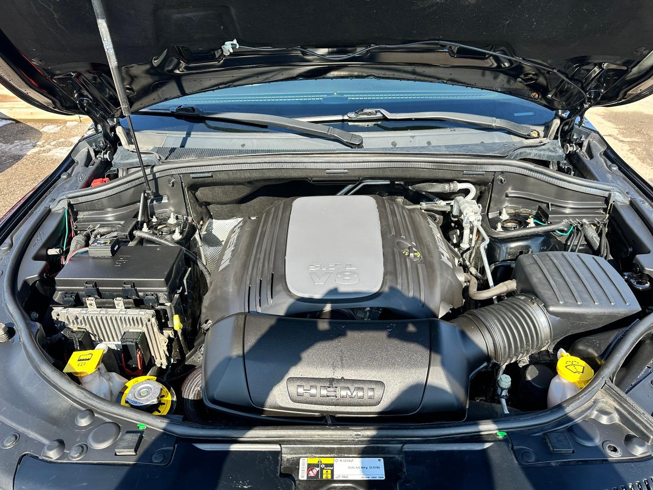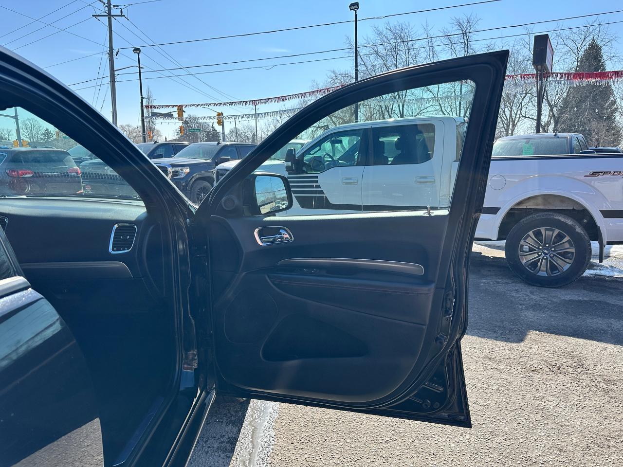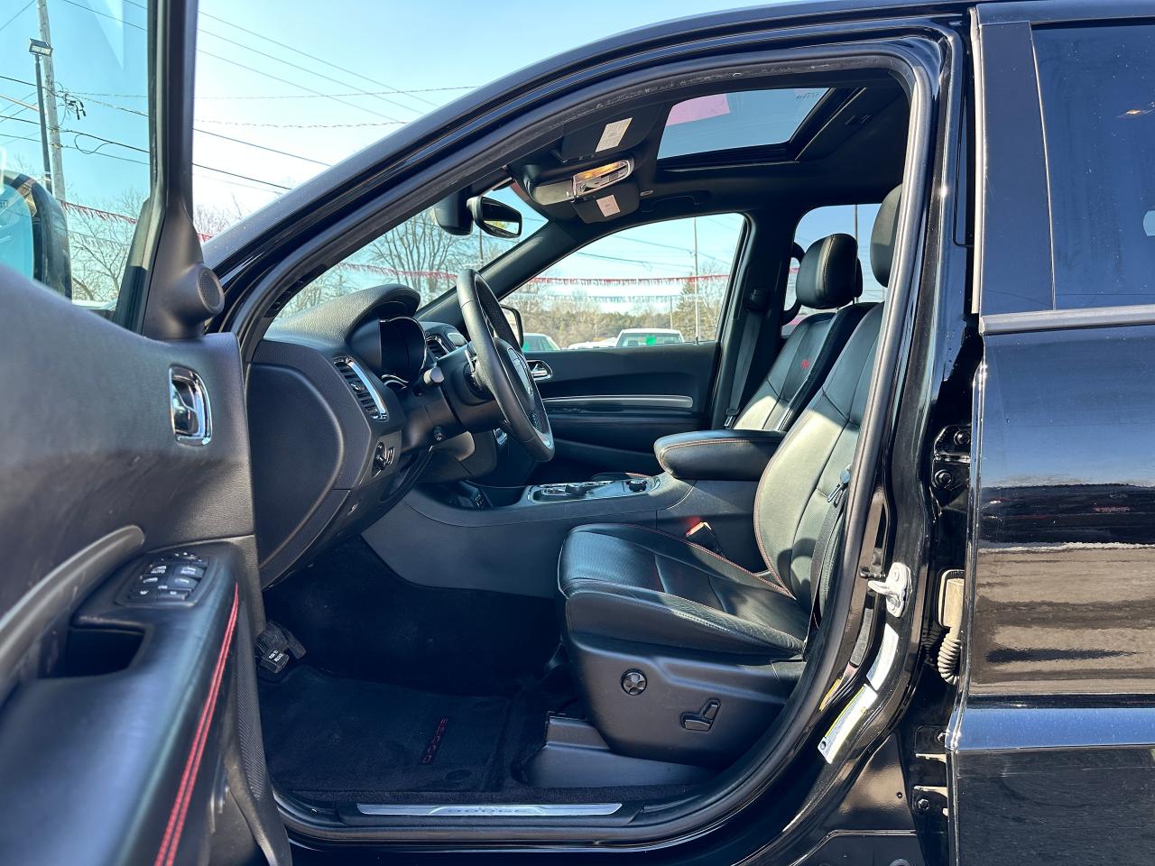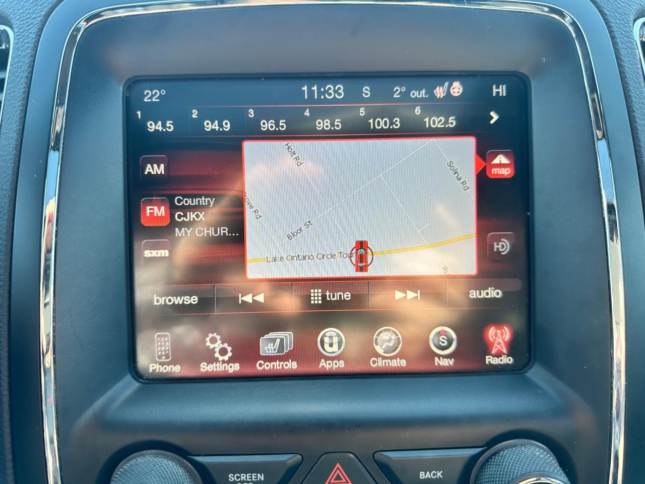Super-Clean and Low-KM Dodge Durango from Rockland, ON! This R/T AWD model looks awesome in its Black/Black Colour scheme, with nice options inside and out! The exterior features keyless entry with proximity keys and remote start, a large factory power sunroof, a remote power liftgate, automatic headlights, foglights, colour-matched side mirrors with integrated turn signals, a sleek rear spoiler, sporty dual rear exhaust, tinted privacy glass, rearparking sensors, gorgeous dark factory split spoke alloy wheels, a powerful 5.7L V8 Engine and Automatic transmission and All-Wheel-Drive! The interior is very clean and comfortable with heated and cooled front leather seating with power adjustment and lumbar controls, driver's memory seating, heated rear seating, third row fold-up seats, power door locks, windows and mirrors, a heated leather wrapped steering wheel with Audio and Cruise controls, paddle shifters, push button start, an easy to read and use gauge cluster, a large central touch screen AM/FM/XM Satellite Radio with Bluetooth, Navigation, MP3 Capability and Backup Camera, ECO/Sport Modes, Dual-Zone A/C climate controls with front and rear window defrost settings, USB/AUX/12V accessory ports, universal garage door openers, and more!