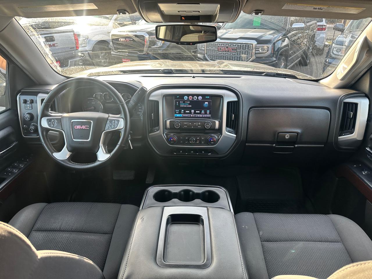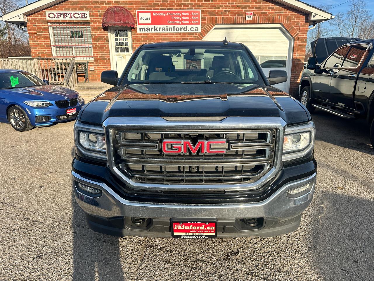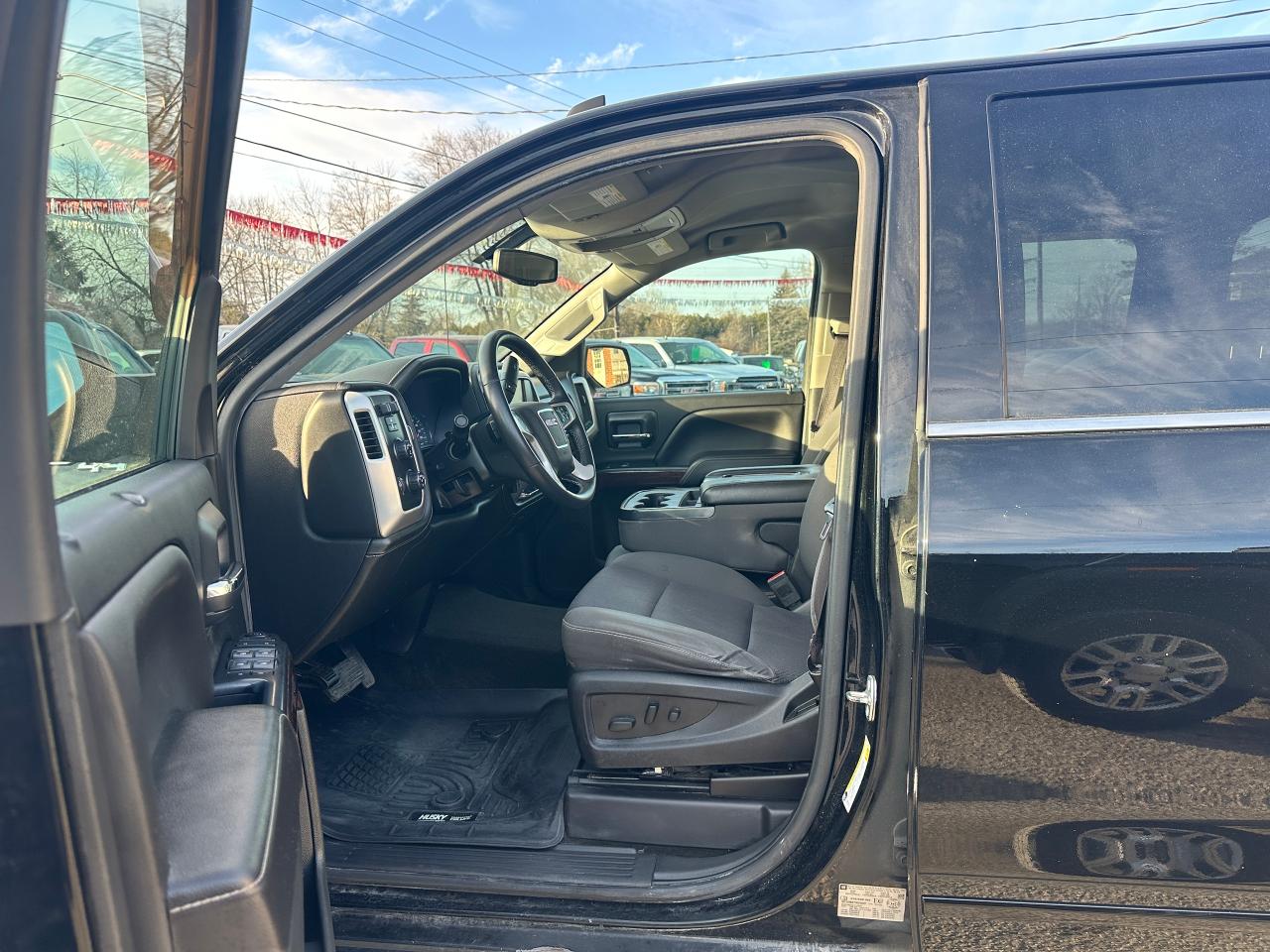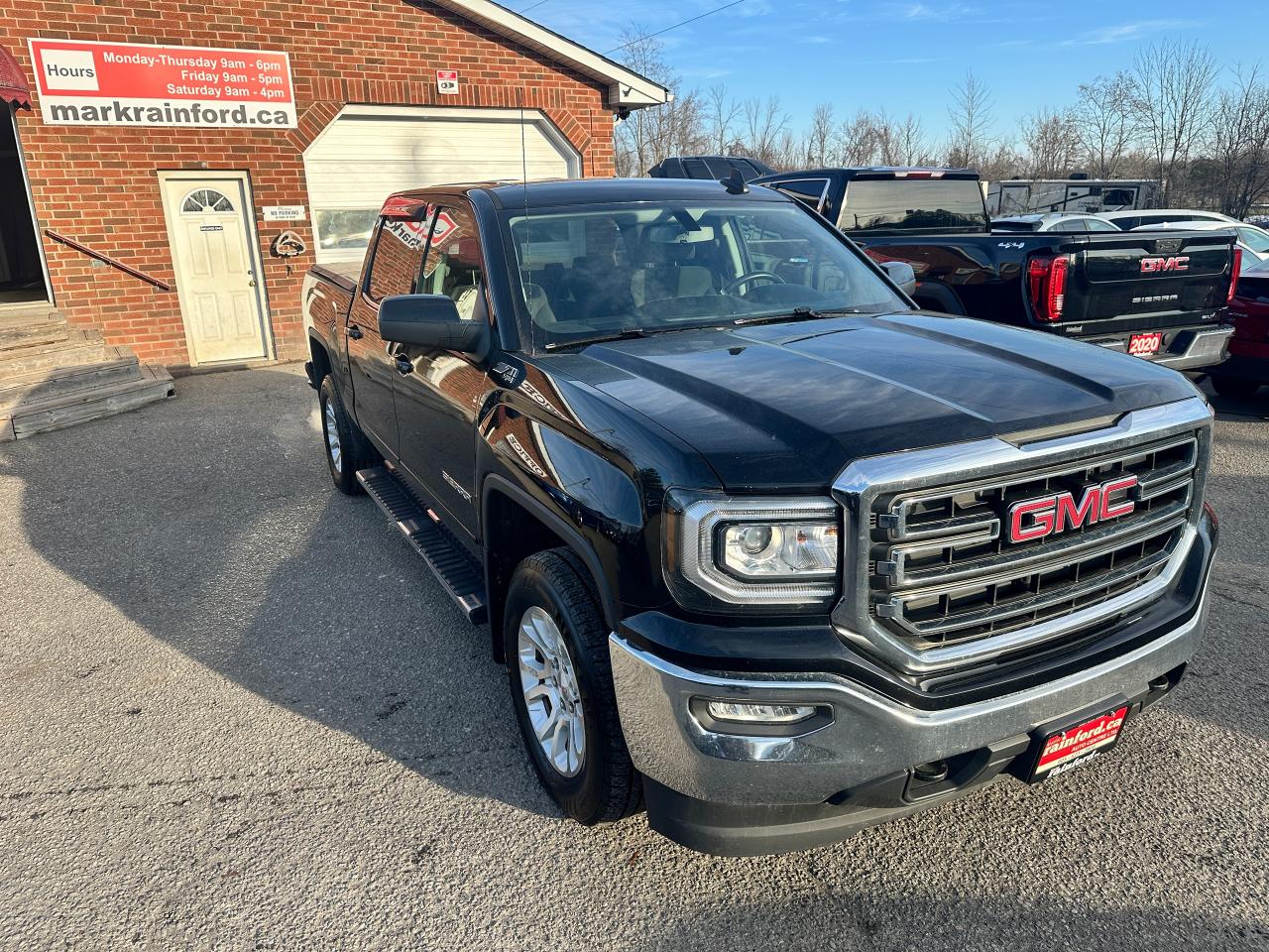 Super-Clean GMC Sierra 1500 from Perth, ON! This SLE 4x4 Crew Cab model looks great in its Black paint and factory alloy wheels with nice options inside and out! The exterior features keyless entry and remote start, automatic headlights, foglights, colour-matched side mirrors, tinted privacy glass, front tow hooks, a trailer hitch, rear bumper steps, chromed step sides, a spray-in GMC bedliner, soft folding tonneau cover, nice factory alloy wheels with NEW All-Weather Tires freshly installed and nice brakes all around, a powerful 5.3L V8 Engine and Automatic transmission driving the 4x4 system! The interior is clean and comfortable with cloth seats for 6 passengers through its fold up centre console, driver's power adjustment and lumbar control, all-weather floor mats front and rear, power door locks, windows and mirrors, electronic 4x4 selection and integrated electronic trailer brake controller, a leather wrapped steering wheel with Audio and Cruise controls, an easy to read and use gauge cluster, a large central touch screen AM/FM/XM Satellite HD Radio with Bluetooth, Apple CarPlay, Android Auto, Compass, Backup Camera and CD Player, Dual-Zone A/C climate control with front and rear window defrost settings, hill descent assist, USB/AUX/12V accessory ports, universal garage door opener and more!
