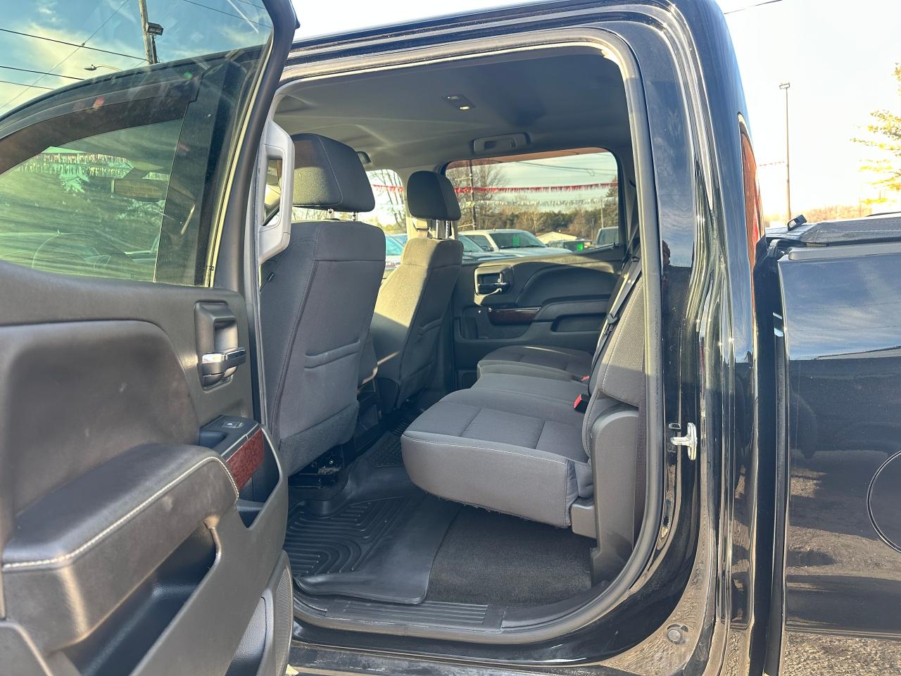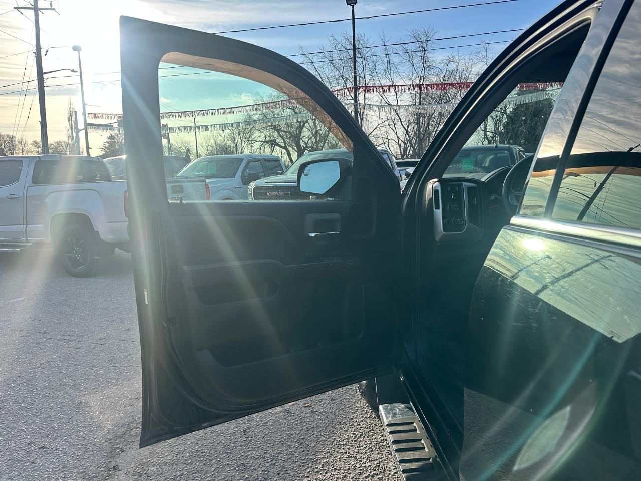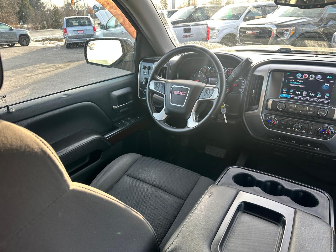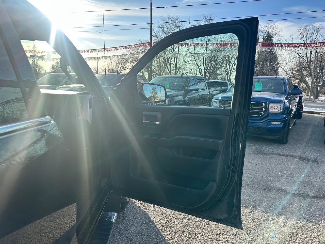 Super-Clean GMC Sierra 1500 from Perth, ON! This SLE 4x4 Crew Cab model looks great in its Black paint and factory alloy wheels with nice options inside and out! The exterior features keyless entry and remote start, automatic headlights, foglights, colour-matched side mirrors, tinted privacy glass, front tow hooks, a trailer hitch, rear bumper steps, chromed step sides, a spray-in GMC bedliner, soft folding tonneau cover, nice factory alloy wheels with NEW All-Weather Tires freshly installed and nice brakes all around, a powerful 5.3L V8 Engine and Automatic transmission driving the 4x4 system! The interior is clean and comfortable with cloth seats for 6 passengers through its fold up centre console, driver's power adjustment and lumbar control, all-weather floor mats front and rear, power door locks, windows and mirrors, electronic 4x4 selection and integrated electronic trailer brake controller, a leather wrapped steering wheel with Audio and Cruise controls, an easy to read and use gauge cluster, a large central touch screen AM/FM/XM Satellite HD Radio with Bluetooth, Apple CarPlay, Android Auto, Compass, Backup Camera and CD Player, Dual-Zone A/C climate control with front and rear window defrost settings, hill descent assist, USB/AUX/12V accessory ports, universal garage door opener and more!