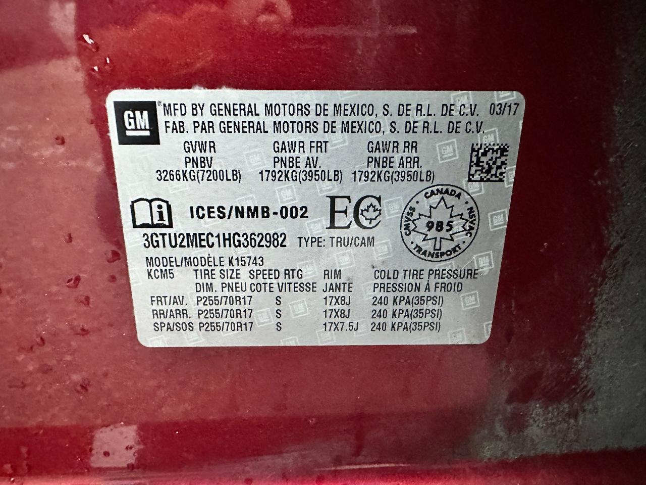 - VIN: 3GTU2MEC1HG362982