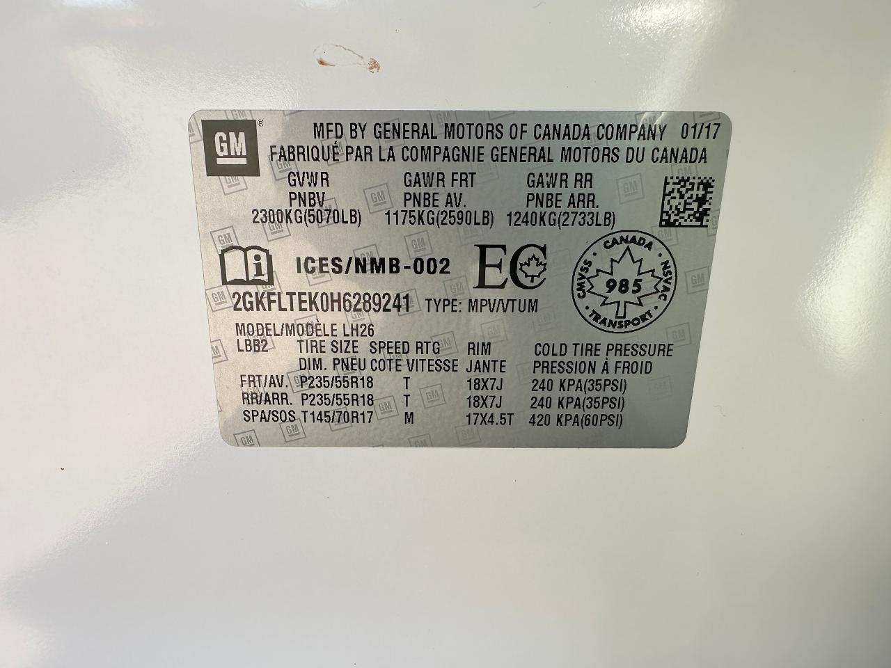 - VIN: 2GKFLTEK0H6289241
