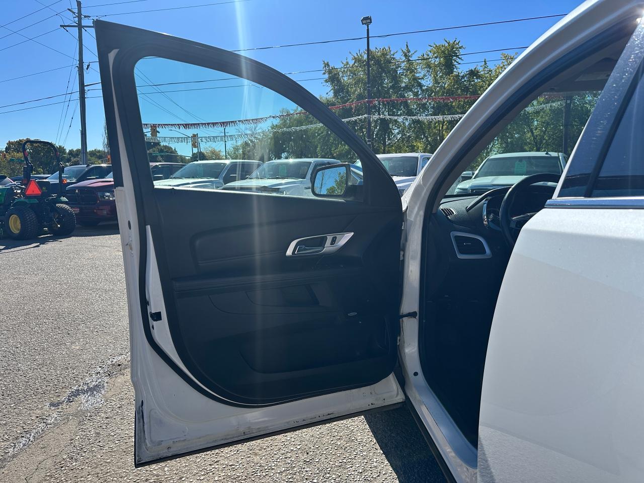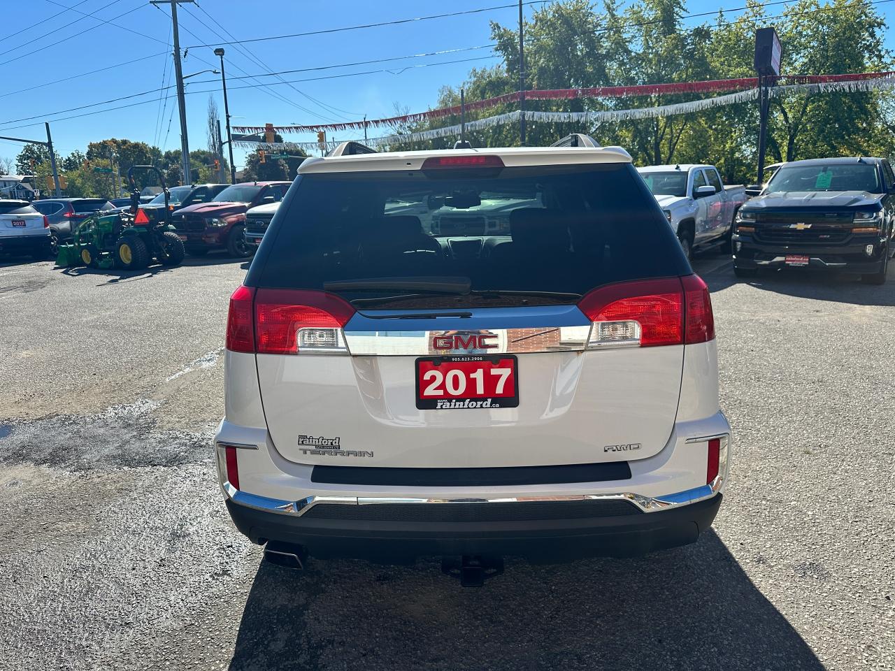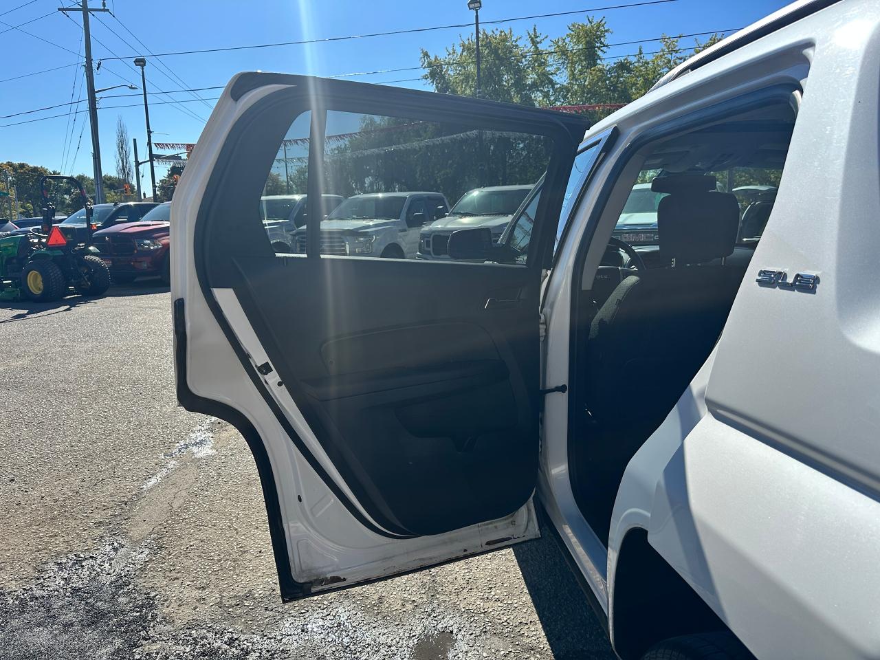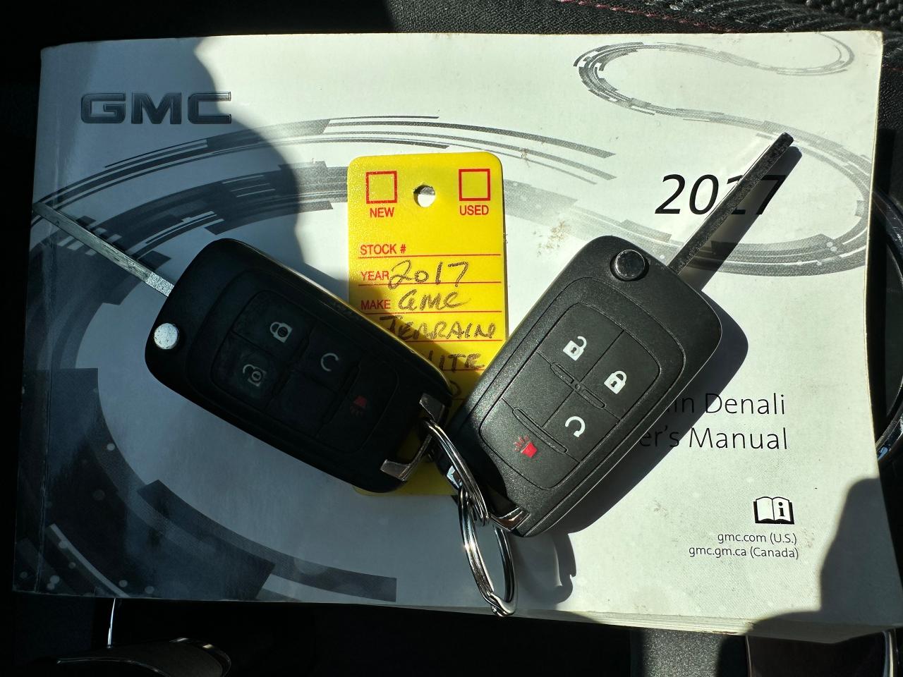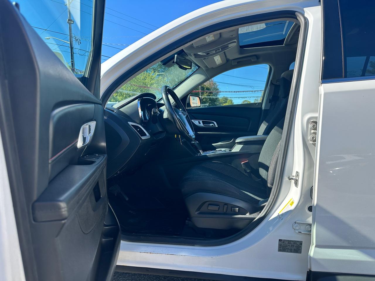 Super-Clean local GMC Terrain from Peterborough/Oshawa, ON! This SLE2 AWD model looks nice in its White paint and factory alloy wheels, with great options inside and out! The exterior features keyless entry with remote start, headlights and foglights, tinted privacy glass, a factory power sunroof, roof rack rails, a trailer hitch, chromed accents, a peppy fuel-efficient 2.4L 4-cylinder Engine and Automatic transmission powering the All-Wheel-Drive system! The interior is clean and comfortable with heated cloth front seats with driver's power adjustment and lumbar controls, power door locks, windows and mirrors, spacious rear seating and cargo area with cargo net, red accent stitching, a leather wrapped steering wheel with Audio and Cruise controls, an easy to read and use gauge cluster, central touch screen AM/FM/XM Satellite Radio with Bluetooth, Navigation and Backup Camera, A/C climate control with front and rear window defrost settings, ECO driving mode for improved fuel economy, USB/12V accessory ports, all-weather floor mats and more!