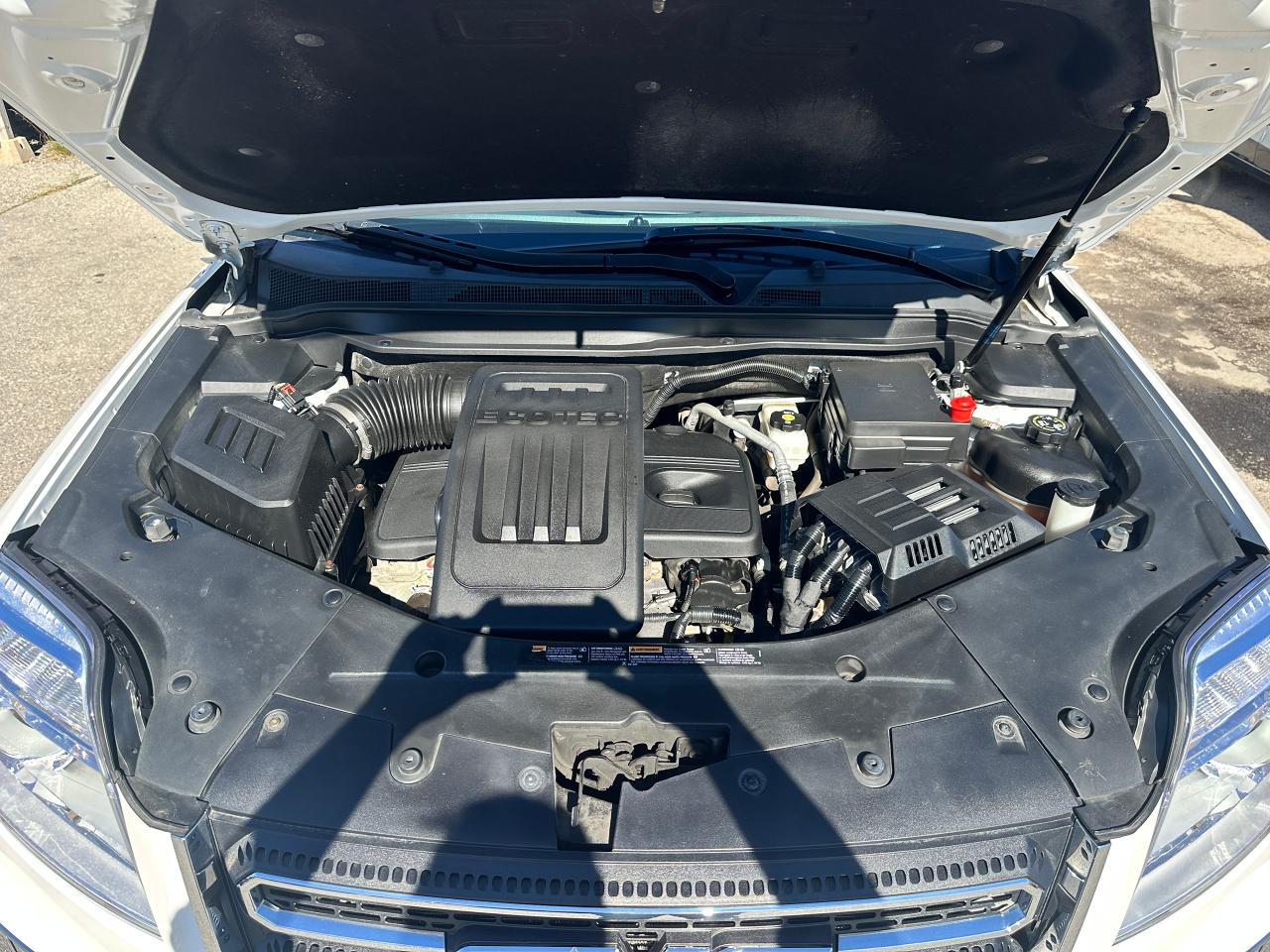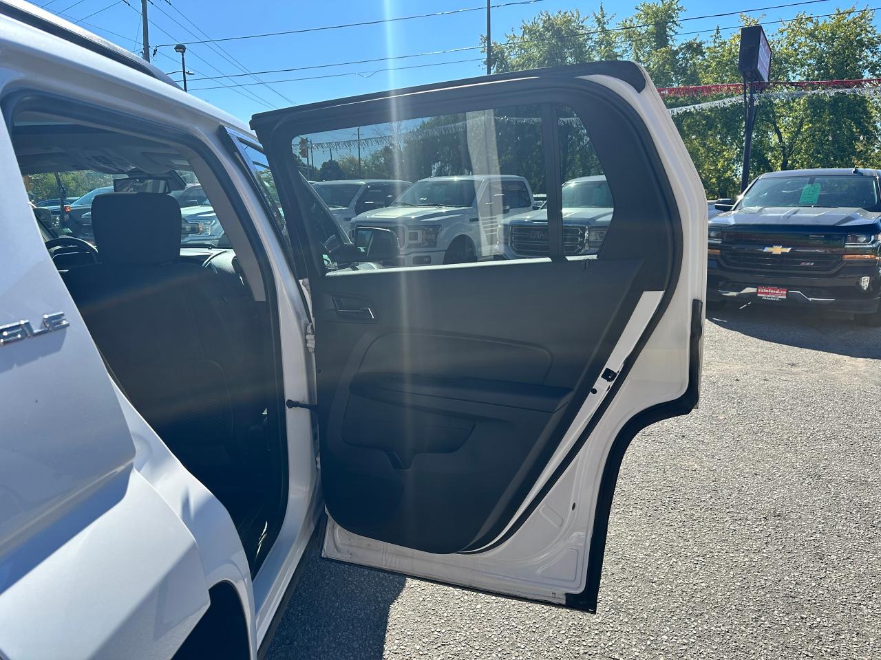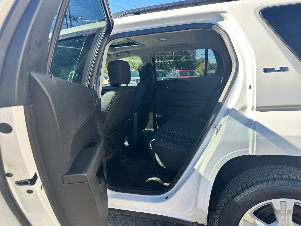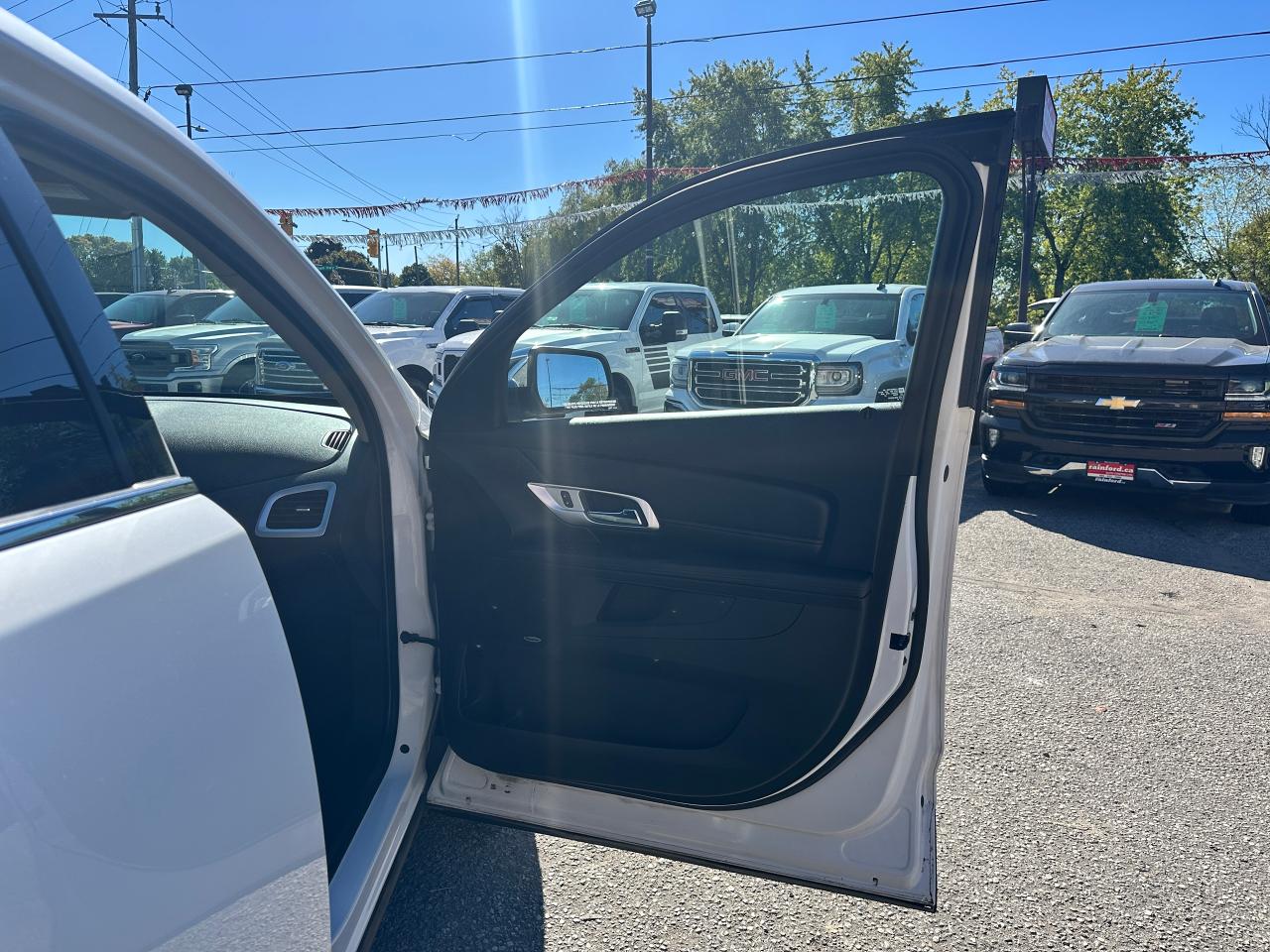 Super-Clean local GMC Terrain from Peterborough/Oshawa, ON! This SLE2 AWD model looks nice in its White paint and factory alloy wheels, with great options inside and out! The exterior features keyless entry with remote start, headlights and foglights, tinted privacy glass, a factory power sunroof, roof rack rails, a trailer hitch, chromed accents, a peppy fuel-efficient 2.4L 4-cylinder Engine and Automatic transmission powering the All-Wheel-Drive system! The interior is clean and comfortable with heated cloth front seats with driver's power adjustment and lumbar controls, power door locks, windows and mirrors, spacious rear seating and cargo area with cargo net, red accent stitching, a leather wrapped steering wheel with Audio and Cruise controls, an easy to read and use gauge cluster, central touch screen AM/FM/XM Satellite Radio with Bluetooth, Navigation and Backup Camera, A/C climate control with front and rear window defrost settings, ECO driving mode for improved fuel economy, USB/12V accessory ports, all-weather floor mats and more!