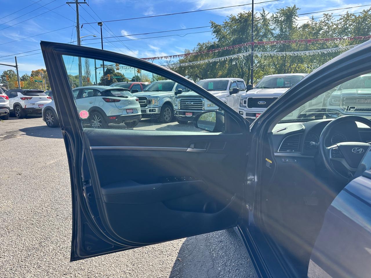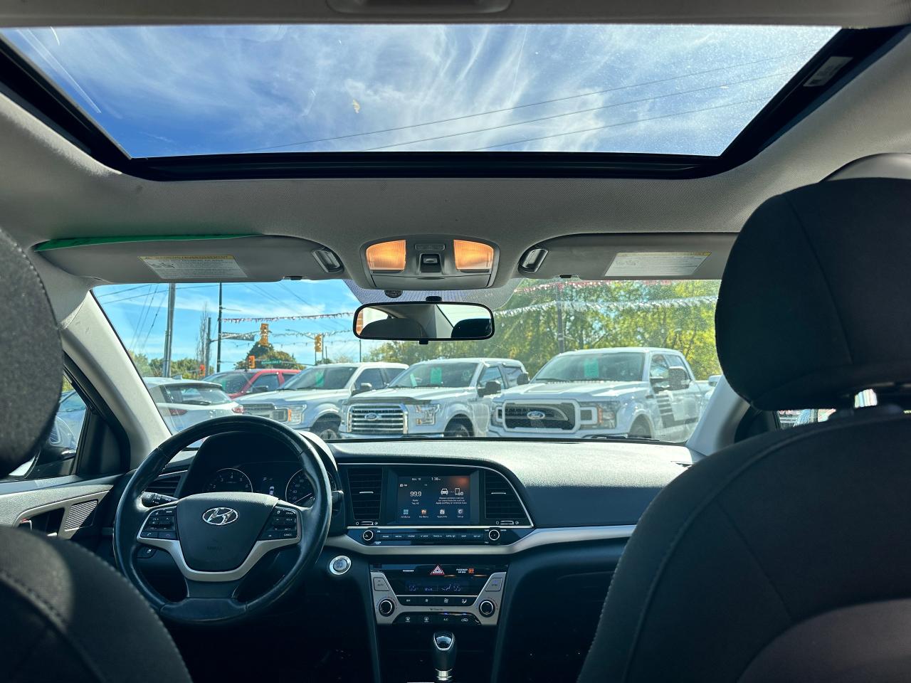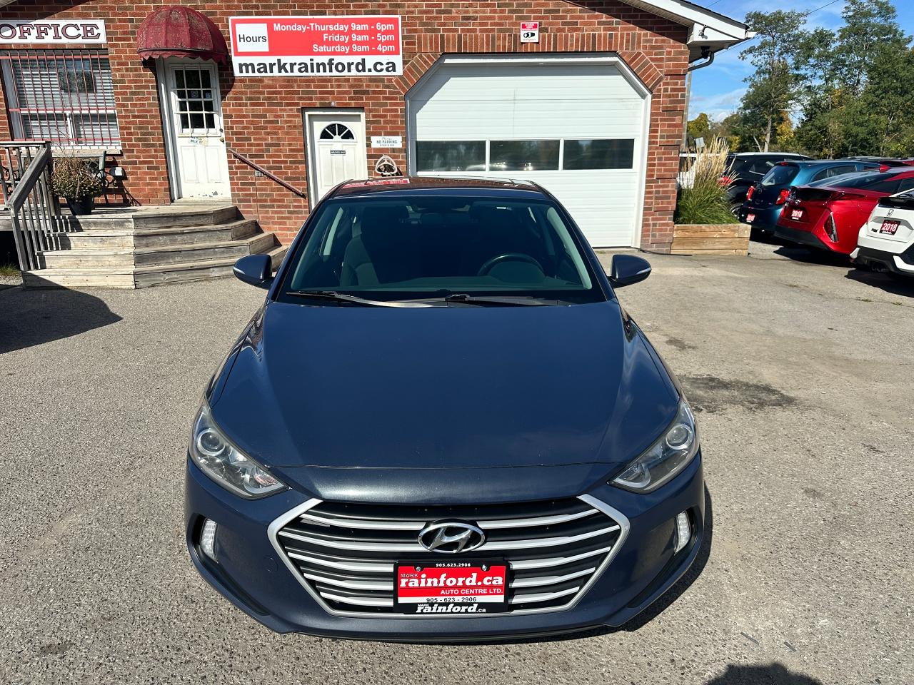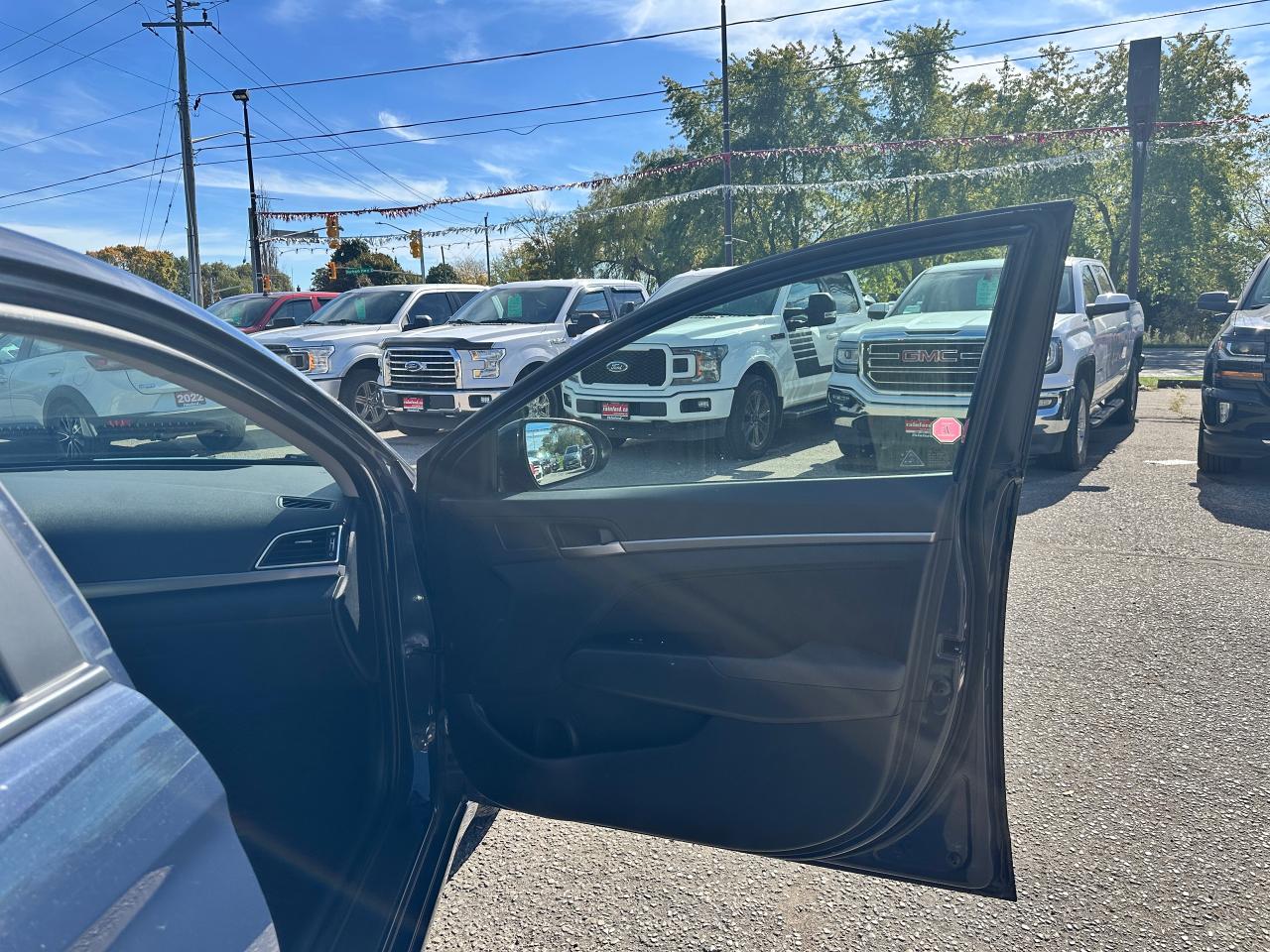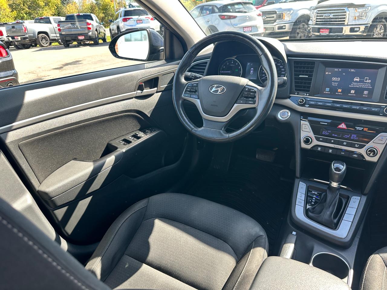 Super-Clean local Hyundai Elantra from Bowmanville, ON! This One Owner GLS model looks great in its Grey/Blue paint with nice options inside and out! The exterior features keyless entry with proximity keys, a large factory sunroof, colour-matched side mirrors with integrated turn signals, blind spot monitors, gorgeous factory alloy wheels, a peppy fuel-efficient 2.0L 4-cylinder Engine and Automatic transmission! The interior is clean and comfortable with heated cloth seats front and rear, power door locks, windows and mirrors, a heated leather wrapped steering wheel with Audio and Cruise controls, an easy to read and use gauge cluster, push button start, a large central touch screen AM/FM/XM Satellite Radio with Bluetooth, Apple CarPlay, Android Auto and Backup Camera, Dual-Zone A/C climate control with front and rear window defrost settings, USB/AUX/12V accessory ports, ECO/Sport Driving Modes, and more!