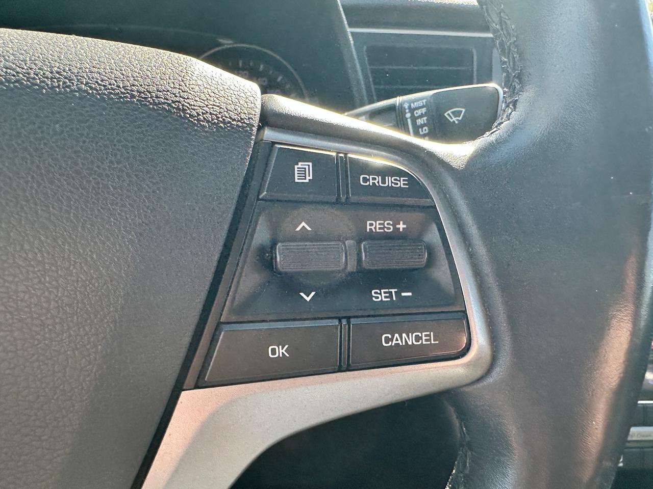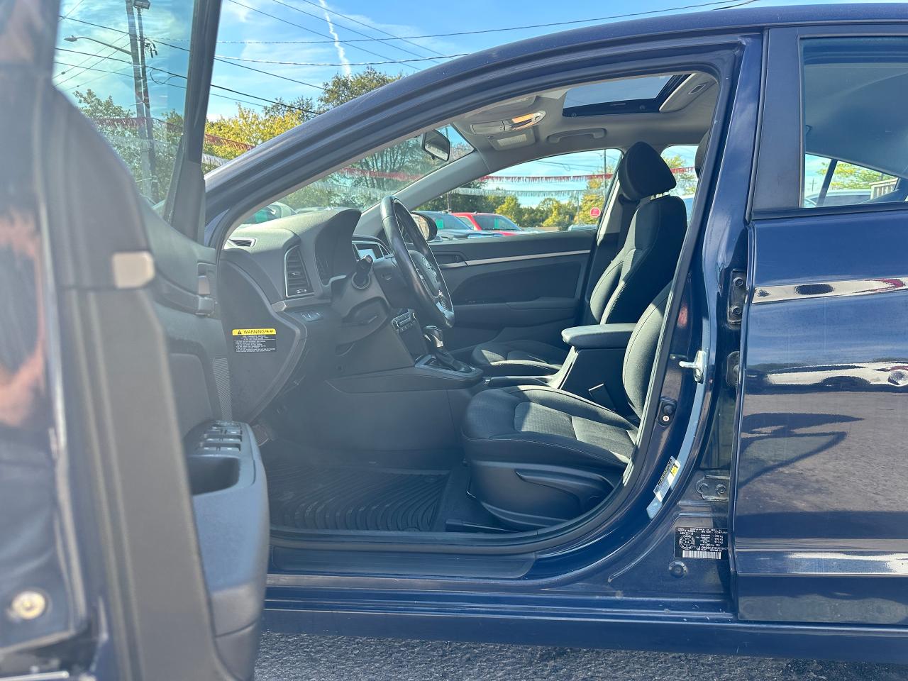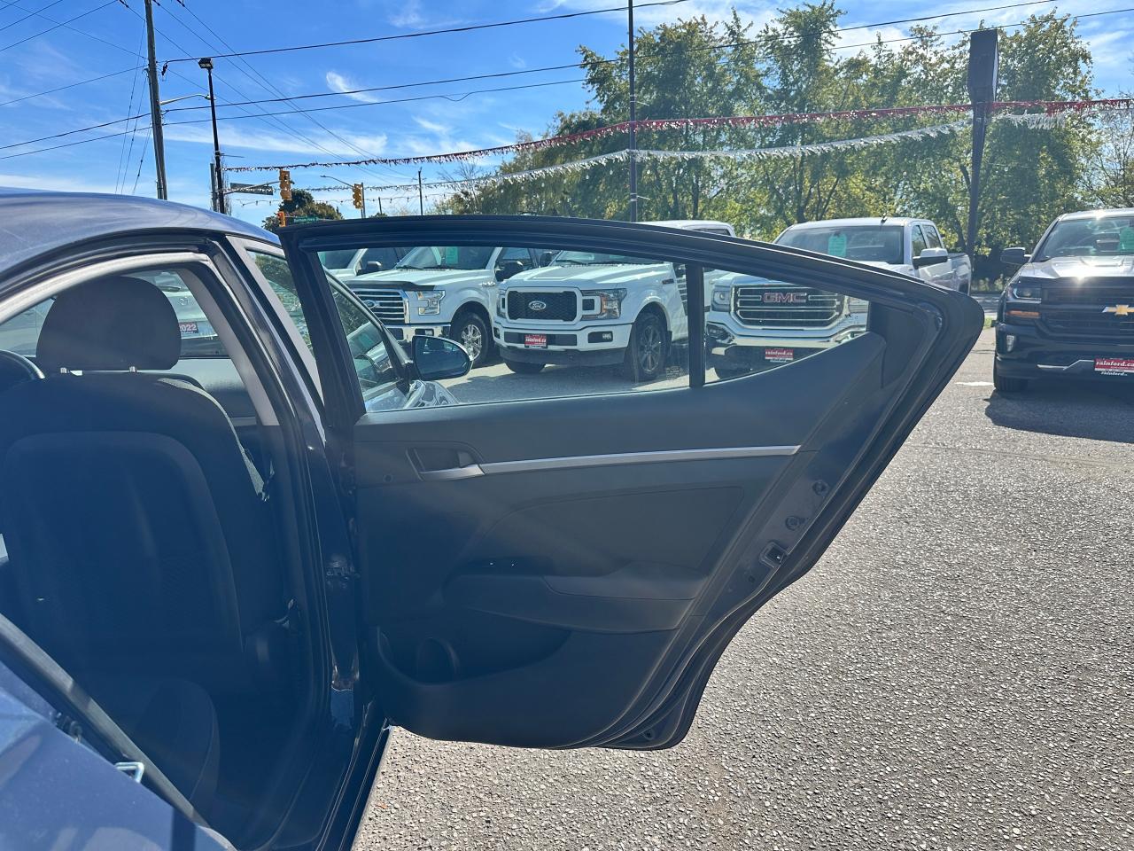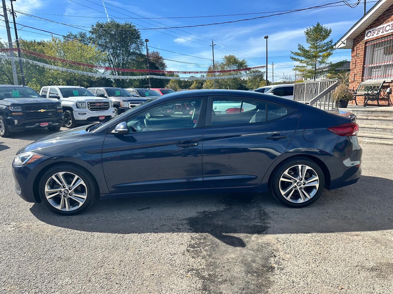 Super-Clean local Hyundai Elantra from Bowmanville, ON! This One Owner GLS model looks great in its Grey/Blue paint with nice options inside and out! The exterior features keyless entry with proximity keys, a large factory sunroof, colour-matched side mirrors with integrated turn signals, blind spot monitors, gorgeous factory alloy wheels, a peppy fuel-efficient 2.0L 4-cylinder Engine and Automatic transmission! The interior is clean and comfortable with heated cloth seats front and rear, power door locks, windows and mirrors, a heated leather wrapped steering wheel with Audio and Cruise controls, an easy to read and use gauge cluster, push button start, a large central touch screen AM/FM/XM Satellite Radio with Bluetooth, Apple CarPlay, Android Auto and Backup Camera, Dual-Zone A/C climate control with front and rear window defrost settings, USB/AUX/12V accessory ports, ECO/Sport Driving Modes, and more!