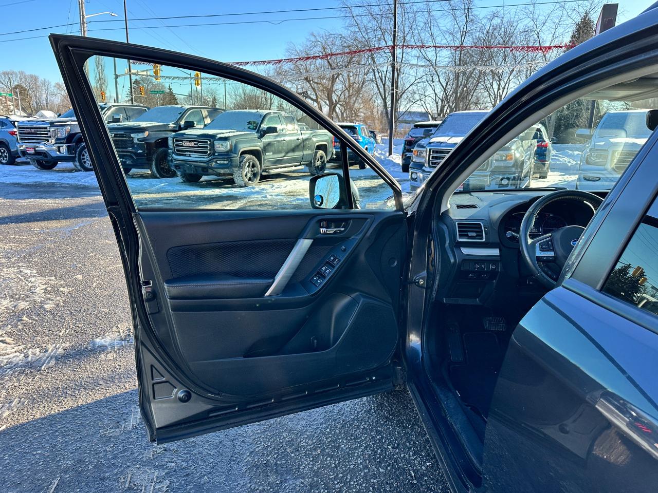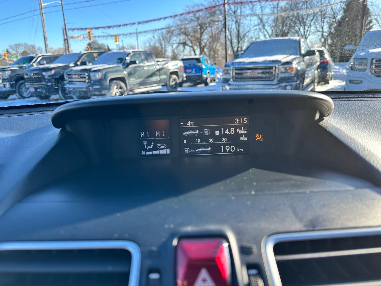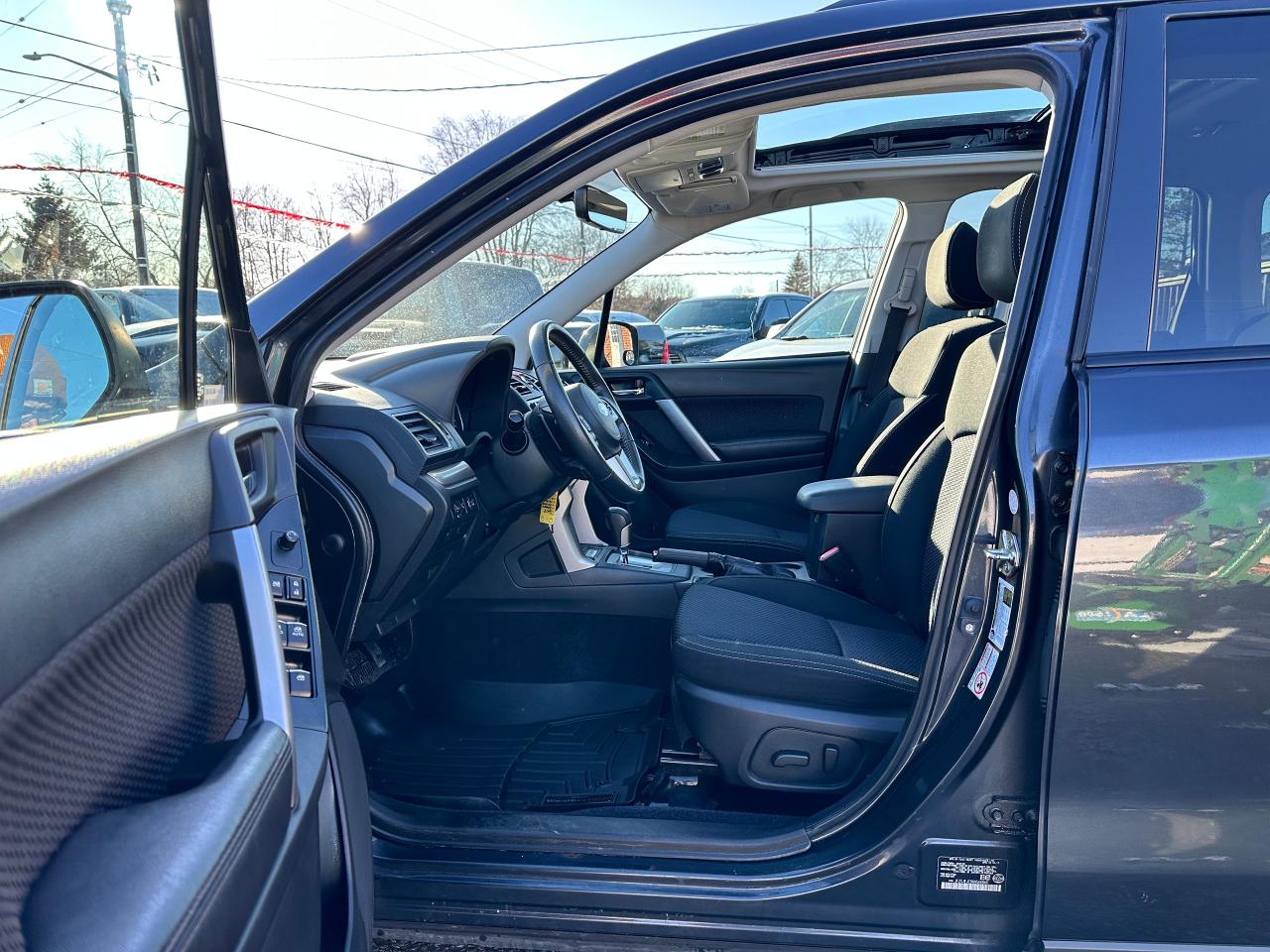 WOW! Super-Clean and well-maintained local Subaru Forester from Bowmanville, ON! This iTouring 2.5 AWD model looks stunning in its Dark Grey paint and factory alloy wheels, with nice options inside and out! The exterior features keyless entry, a large factory power sunroof, a power rear liftgate, automatic headlights, foglights, tinted rear privacy glass, blind spot monitors, colour-matched side mirrors, roof rack rails, gorgeous polished factory Alloy Wheels, a great history of undercoating, a peppy fuel-efficient 2.5L 4-Cylinder Boxer Engine and CVT Auto Transmission powering the All-Wheel-Drive system! The interior is clean and comfortable with heated cloth front seats with driver's power adjustment and lumbar control, power door locks, windows and mirrors, all-weather floor mats, a leather wrapped steering wheel with Audio and Cruise controls, paddle shifters, an easy to read and use gauge cluster, a large central touch screen AM/FM/XM Satellite Radio with Bluetooth, Backup Camera and CD Player, Dual-Zone A/C climate controls with front and rear window defrost settings, X-Mode, USB/AUX/12V accessory ports and more!
