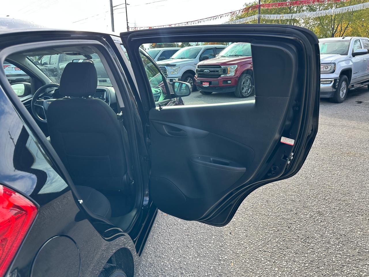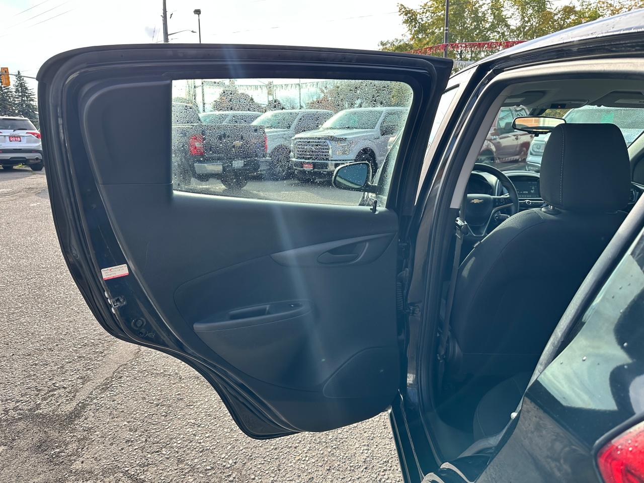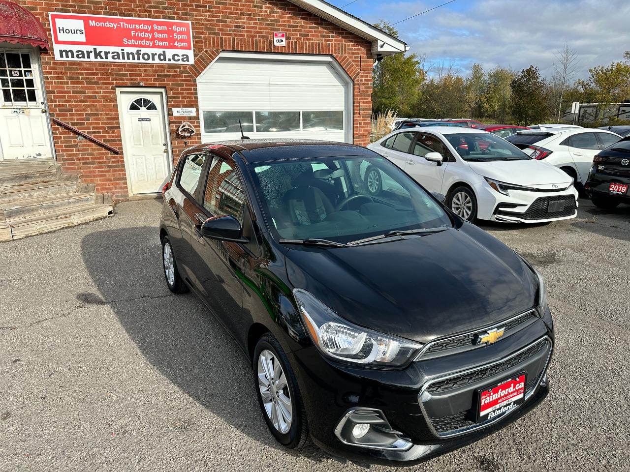 Super-Clean, LOW KM, Chevrolet Spark from Collingwood, ON! This LT Hatchback model looks great in its Black paint and factory alloy wheels, and is sure to be a fuel saver with its compact size! The exterior features keyless entry, automatic headlights, foglights, colour-matched side mirrors, sharp exterior styling, gorgeous factory alloy wheels, a peppy fuel-efficient 1.4L 4-cylinder Turbocharged Engine and CVT Auto transmission! The interior is clean and comfortable with cloth seating for all 4 occupants, power door locks, windows and mirrors, comfortable rear seating and decent storage space, sleek Black/Blue interior styling, steering wheel Audio and Cruise controls, an easy to read and use gauge cluster, a large central touch screen AM/FM/XM Satellite Radio with Bluetooth, Apple CarPlay, Android Auto and Backup Camera, A/C climate control with front and rear window defrost settings, USB/AUX/12V accessory ports and more!