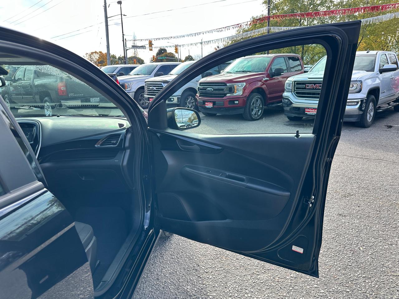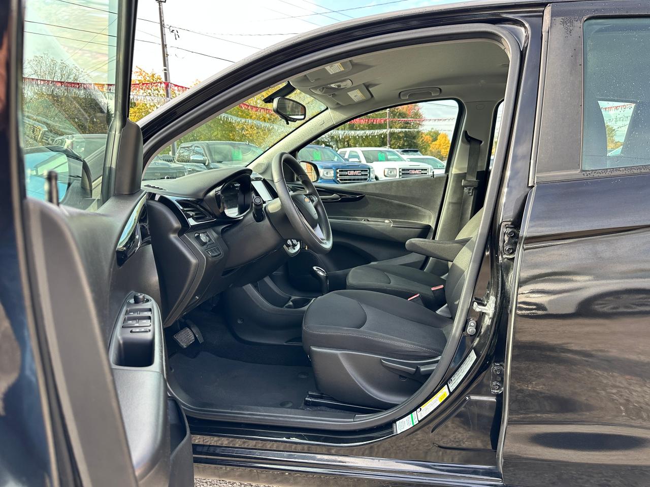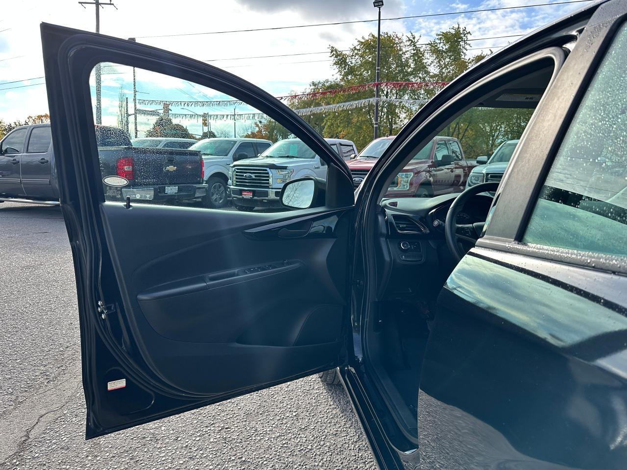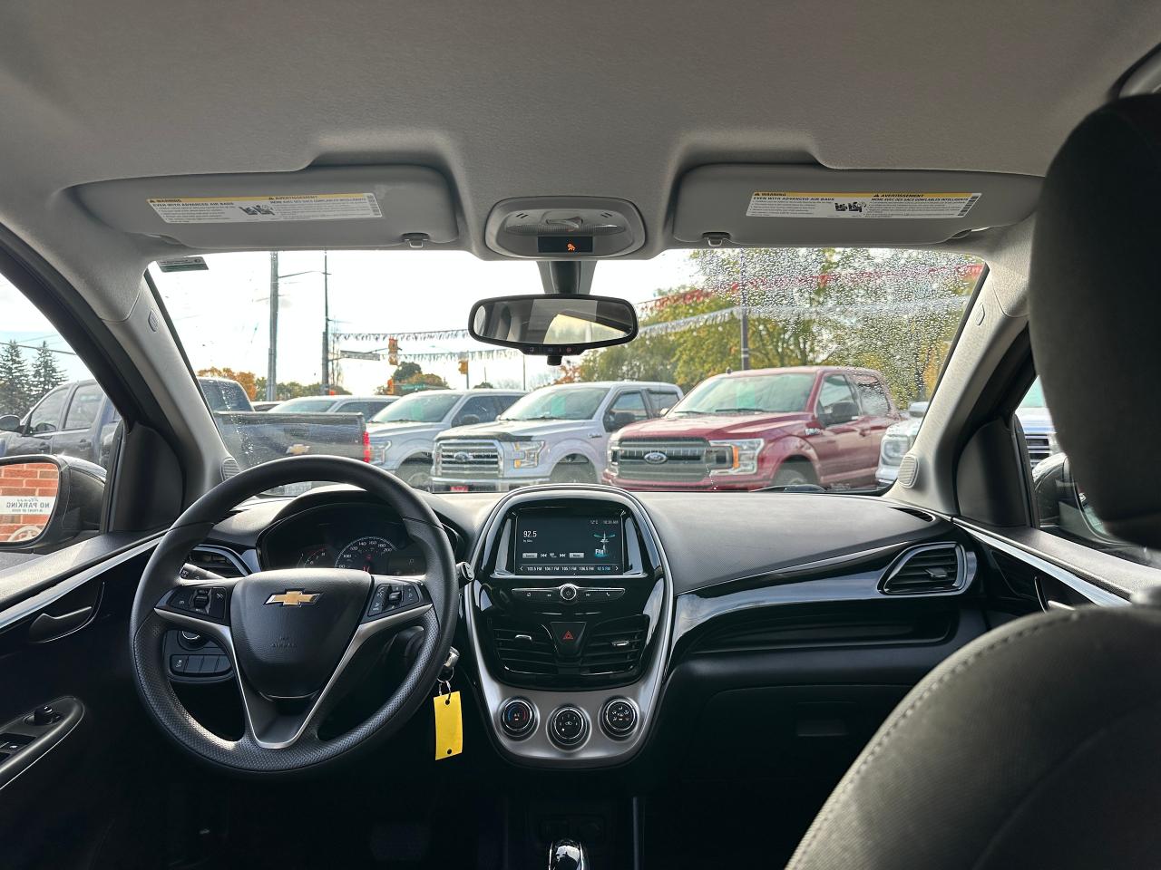 Super-Clean, LOW KM, Chevrolet Spark from Collingwood, ON! This LT Hatchback model looks great in its Black paint and factory alloy wheels, and is sure to be a fuel saver with its compact size! The exterior features keyless entry, automatic headlights, foglights, colour-matched side mirrors, sharp exterior styling, gorgeous factory alloy wheels, a peppy fuel-efficient 1.4L 4-cylinder Turbocharged Engine and CVT Auto transmission! The interior is clean and comfortable with cloth seating for all 4 occupants, power door locks, windows and mirrors, comfortable rear seating and decent storage space, sleek Black/Blue interior styling, steering wheel Audio and Cruise controls, an easy to read and use gauge cluster, a large central touch screen AM/FM/XM Satellite Radio with Bluetooth, Apple CarPlay, Android Auto and Backup Camera, A/C climate control with front and rear window defrost settings, USB/AUX/12V accessory ports and more!