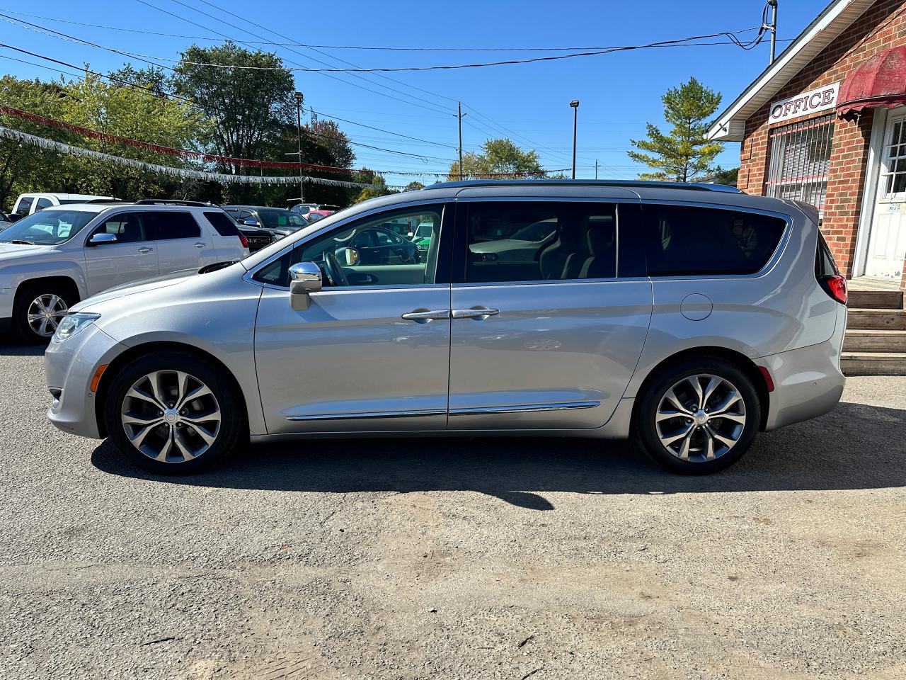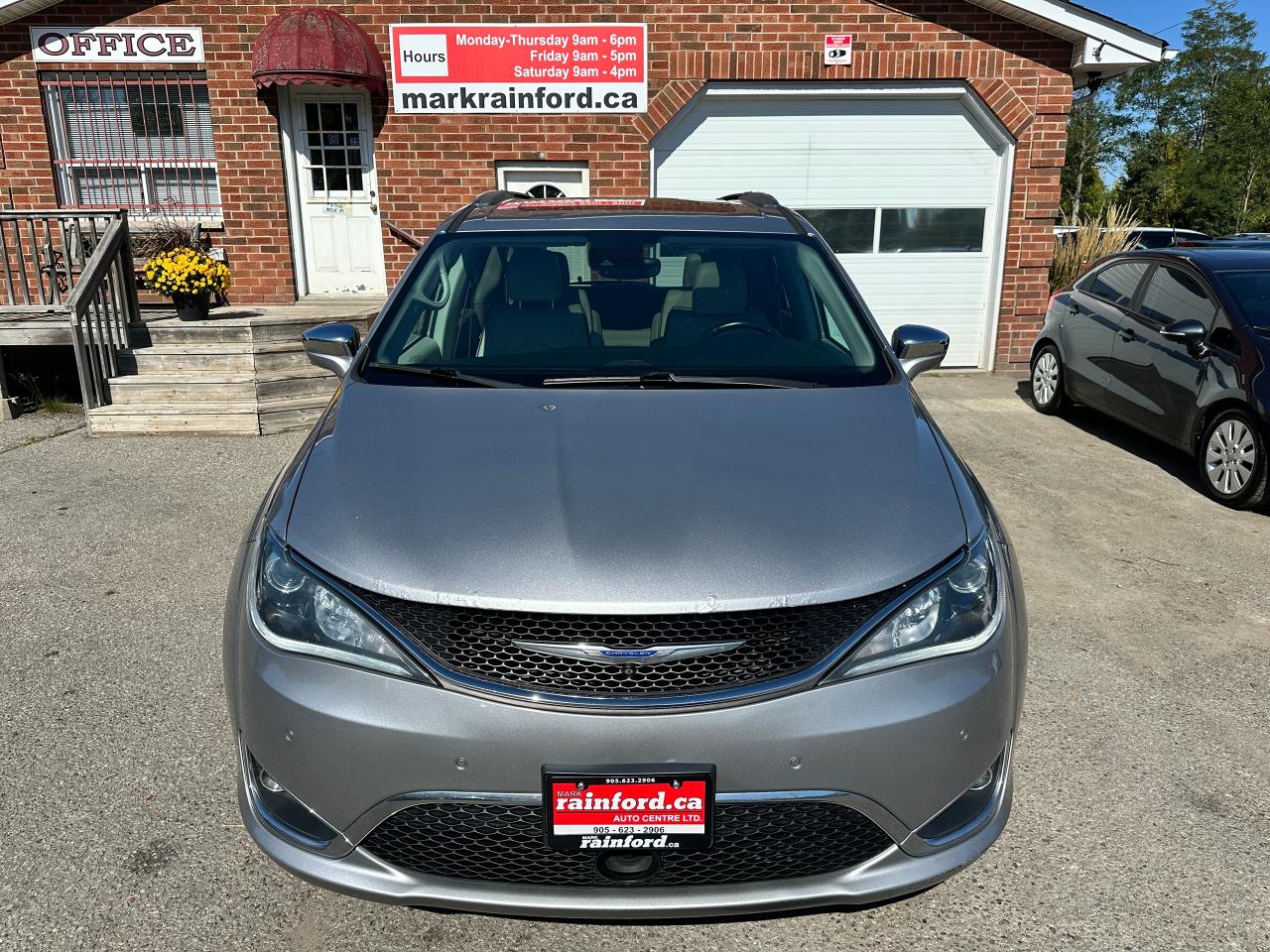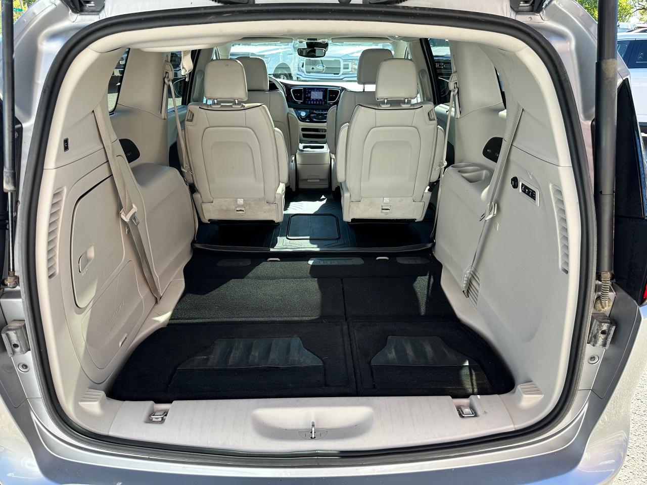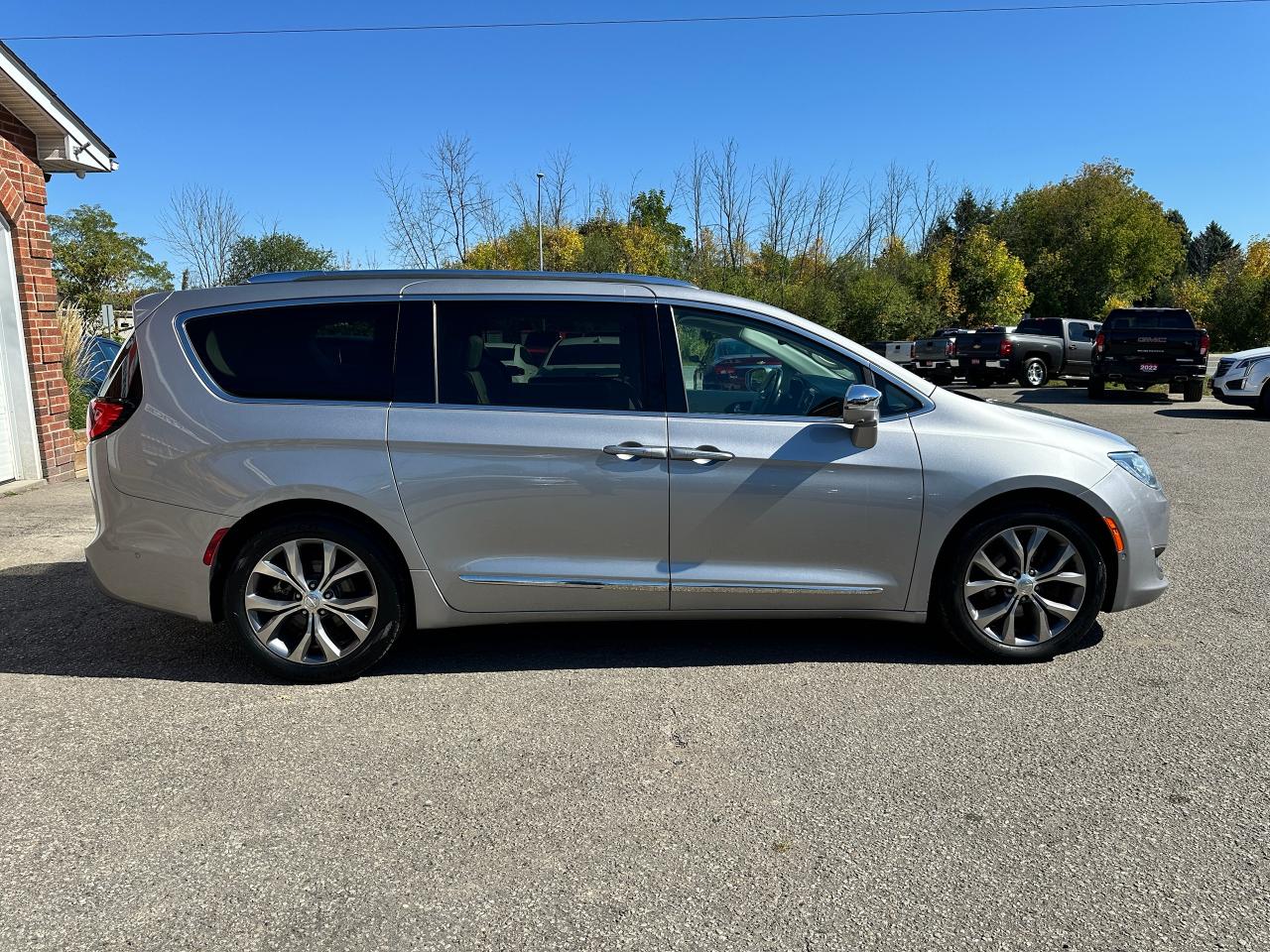 WOW! Super-Clean and Sharp-looking Chrysler Pacifica from Southampton, ON! This Limited 7-Passenger model looks amazing in its Silver paint and Accented Interior, with fantastic options inside and out! The exterior features keyless entry with remote start and proximity keys, remote power sliding doors and rear liftgate, a HUGE Panoramic Sunroof and Rear Moonroof, Automatic headlights, tinted privacy glass, driver assist systems including adaptive cruise controls, lane keeping assist, parking sensors and blind spot monitors, roof rack rails, a sleek rear spoiler, gorgeous factory alloy wheels, a powerful 3.6L V6 Engine and Automatic transmission! The interior is clean and comfortable with heated and cooled power adjustable front leather seats with lumbar controls and driver's memory settings, heated mid row seats and power stowing rear row, power door locks, windows and mirrors, a two-tone leather wrapped heated steering wheel with Audio and Cruise controls, push button start, a large central touch screen AM/FM/XM Satellite HD Radio with Bluetooth, Apple CarPlay, Android Auto, Navigation, SkyView Cameras and Backup Camera, Auto-Stop/Start Override button, Multi-Zone A/C climate control with front and rear window defrost settings, USB/AUX/12V accessory ports, universal garage door openers, and more! This Van has TONS of Features waiting for you to Discover!