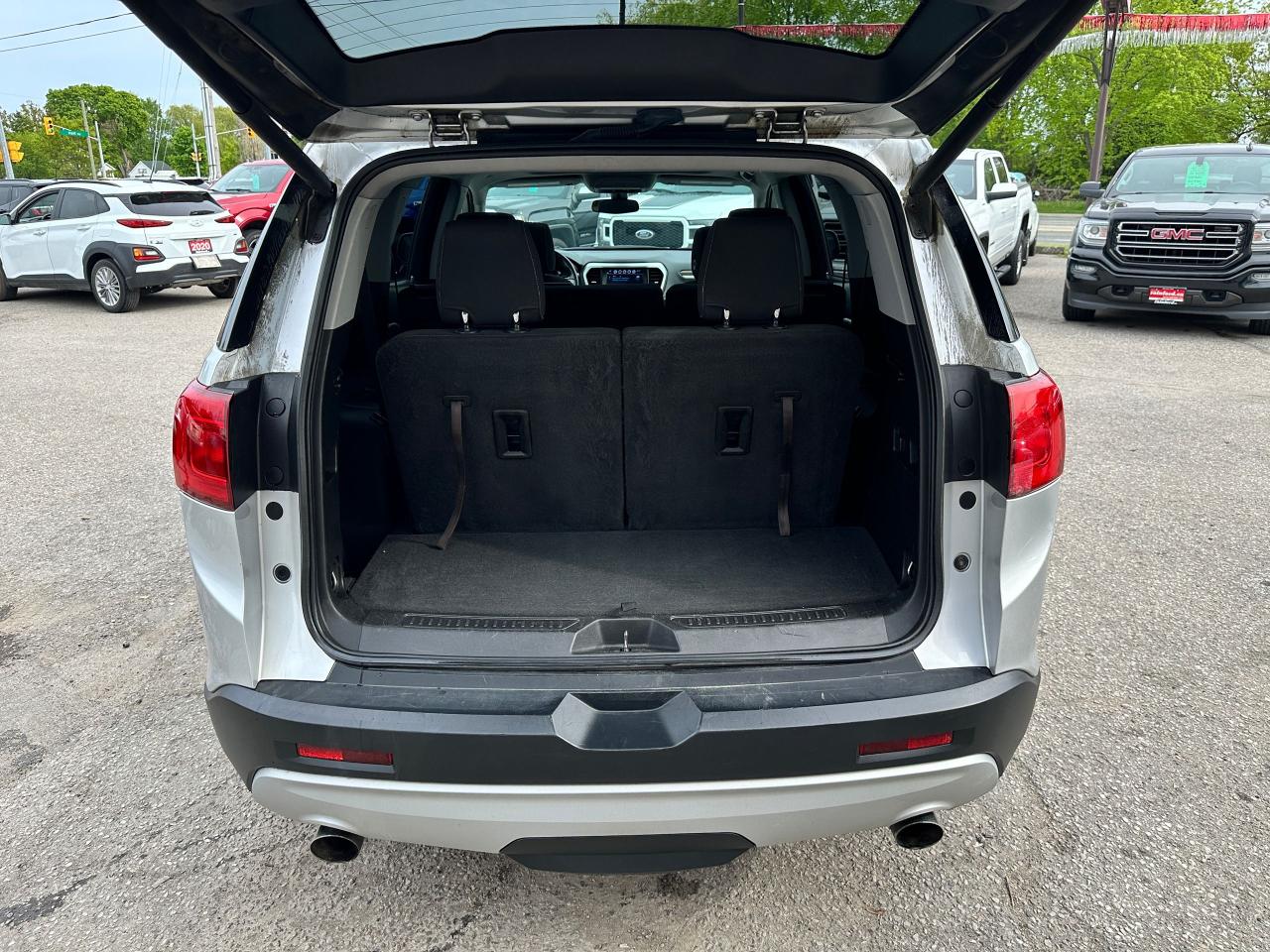 Super-Clean GMC Acadia from Ottawa, ON! This SLE AWD model looks great in its Silver paint and factory alloy wheels, with nice options inside and out! The exterior features keyless entry, with remote start and proximity keys, remote power rear lift gate, automatic headlights, foglights, a large power front sunroof, rear moonroof, colour matched side mirrors, roof rack rails, tinted rear privacy glass, a sporty dual exhaust, gorgeous factory alloy wheels, a powerful 3.6L V6 Engine and Automatic transmission powering the All-Wheel-Drive System! The interior is clean and comfortable with seating for 7, heated cloth front seating with driver's power adjustment, power door locks, windows and mirrors, comfortable and spacious rear rows with rear A/C controls, a leather wrapped steering wheel with audio and cruise controls, an easy to read and use gauge cluster, push button start, a large central touch screen AM/FM/XM Satellite Radio with Bluetooth, Apple CarPlay, Android Auto, OnStar Routing, WiFi Settings and Backup Camera, Dual-Zone A/C climate controls with front and rear window defrost settings, AWD control knob with terrain options, universal garage door opener, USB/AUX/12V accesory ports and more!