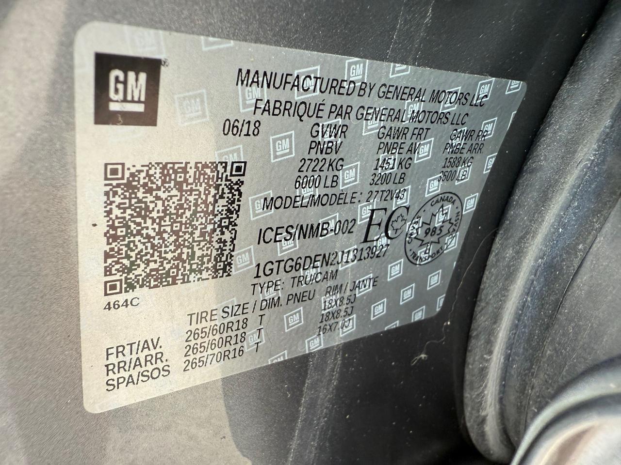 - VIN: 1GTG6DEN2J1313927