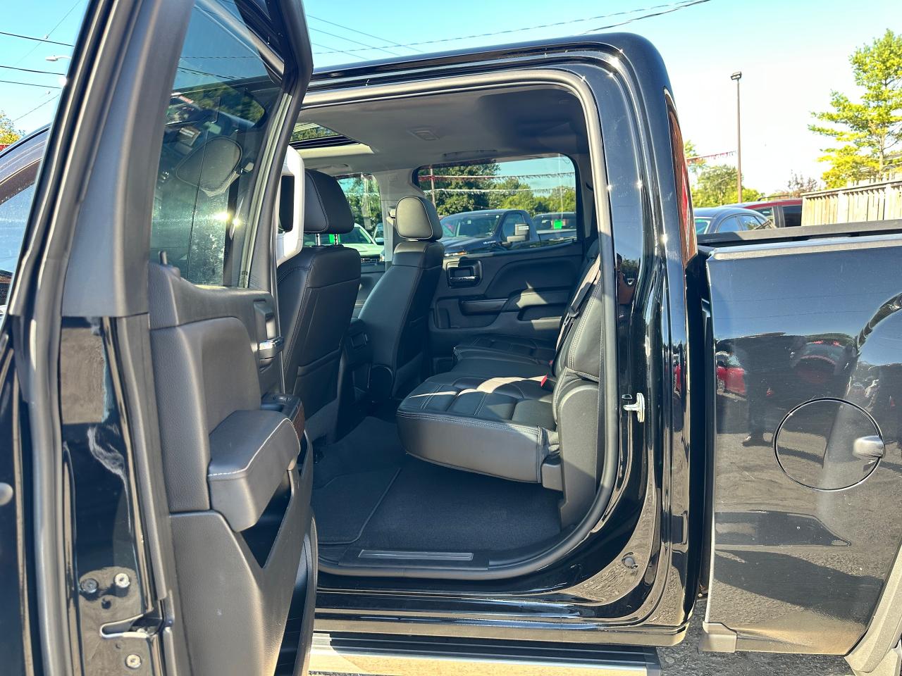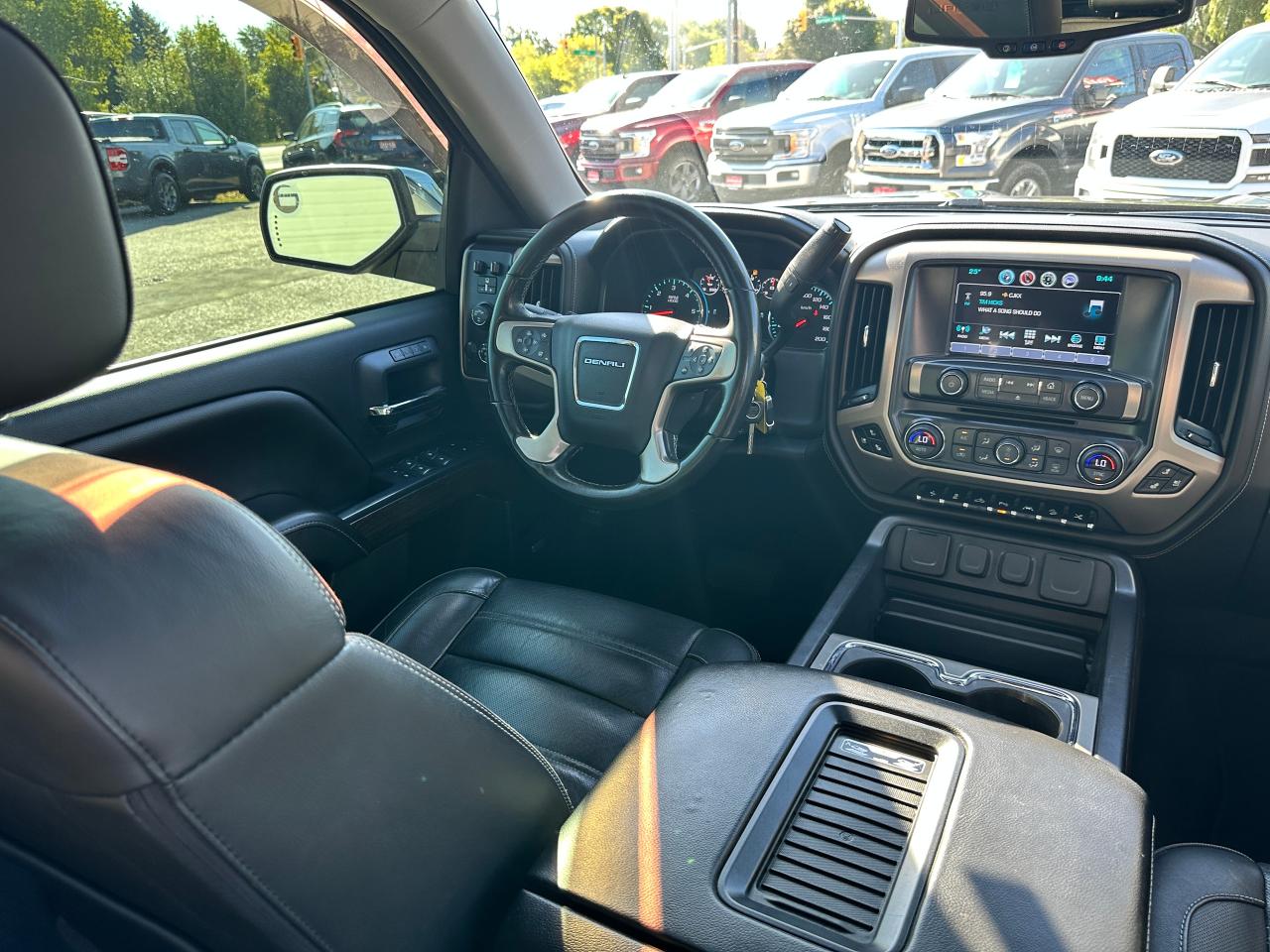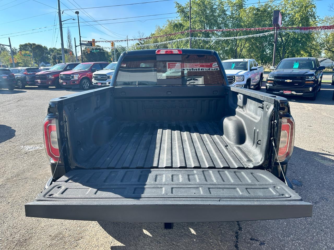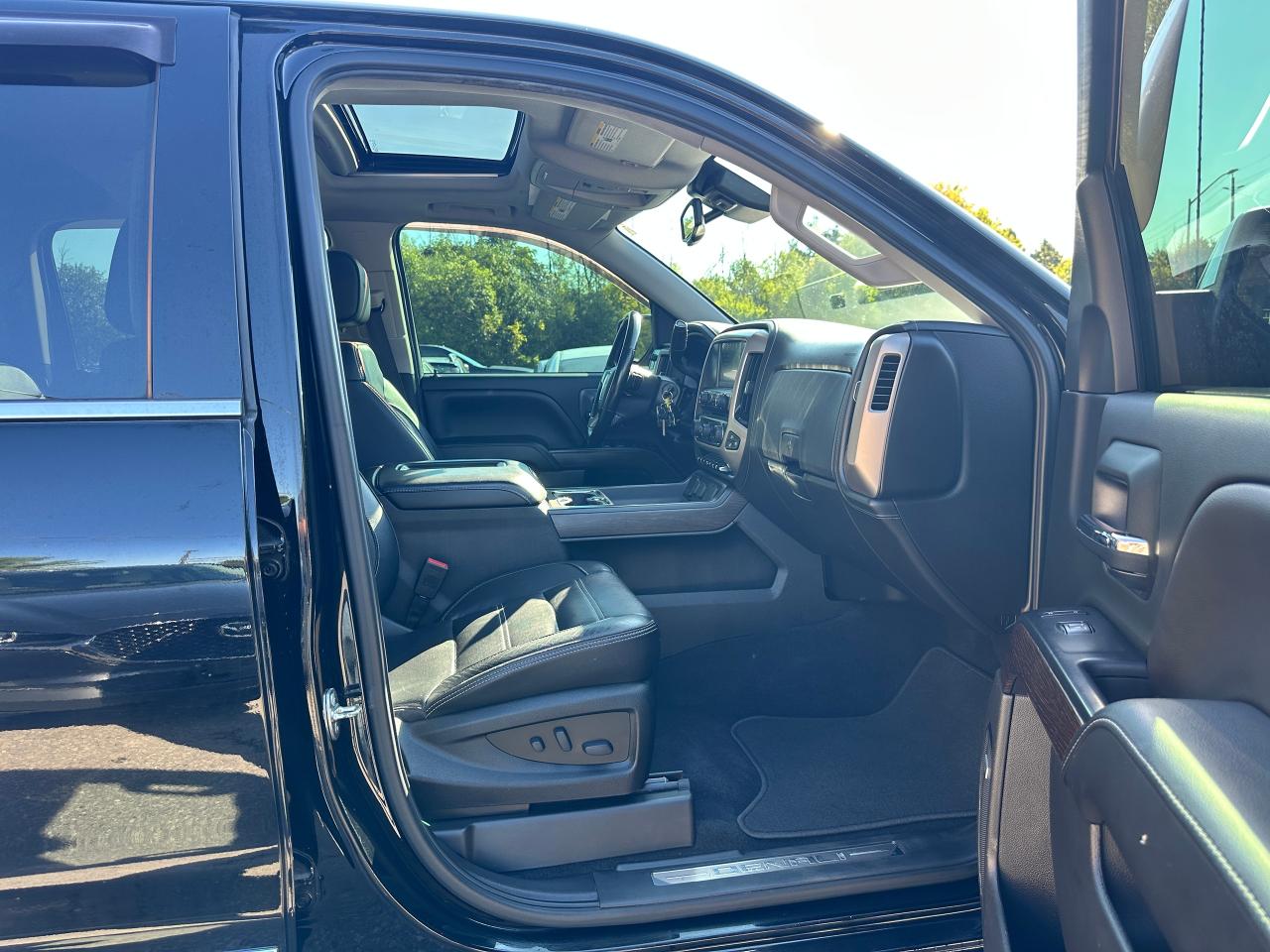 Super-Clean GMC Sierra 1500 from Belleville, ON! This Denali Crew Cab 4x4 model looks sharp in its Black paint and gorgeous factory alloy wheels, and is extremely well-equipped both inside and out! The exterior features keyless entry with remote start, automatic headlights, foglights, a factory power Sunroof, forward collision warning and lane departure warning with adaptive cruise, parking sensors, front tow hooks, a trailer hitch, tinted privacy glass, chromed power running boards, rear bumper steps, a spray-in GMC Bedliner, beautiful factory alloy wheels with new All-Season Tires installed, power sliding rear window, a powerful 6.2L V8 Engine and Automatic Transmission driving the 4x4 system! The interior is clean and very comfortable with heated and cooled front leather seating with power adjustment and lumbar controls, seating for 5 with its full centre console with wireless charger, a spacious rear seating area, power door locks, windows and folding mirrors, driver's memory seating, electronic 4x4 selection knob, an integrated electronic trailer brake controller, a heated leather wrapped steering wheel with Audio and Cruise controls, an easy to read and use gauge cluster, a large central touch screen AM/FM/XM HD Radio with BOSE Premium Audio, Bluetooth, Navigation, Apple CarPlay, Android Auto, Backup Camera and CD Player, Dual-Zone A/C climate control with front and rear window defrost settings, power adjustable drivers pedals, hill descent assist, multiple 12V/USB/AUX ports, universal garage door opener and more!