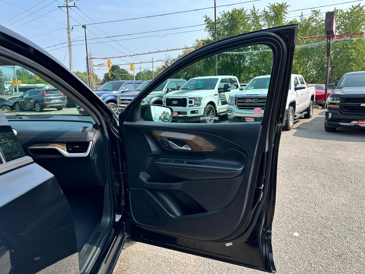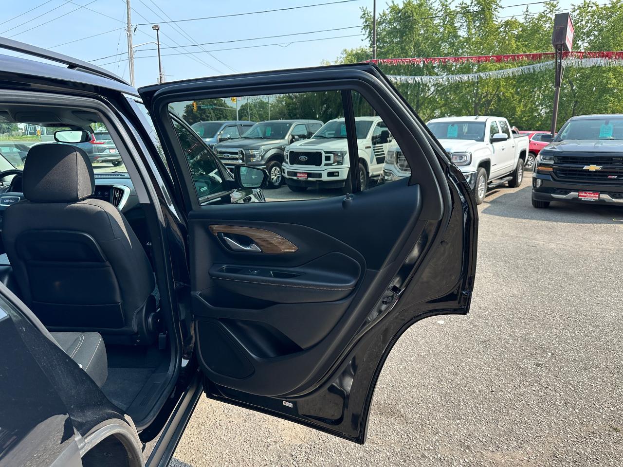 Calling All Commuters and Fuel Savers, SUPER-CLEAN LOW KM GMC Terrain from Belleville, ON! This SLE AWD Diesel model looks incredible in its Black paint and factory alloy wheels, with great options! The exterior features keyless entry with remote start and power remote liftgate, proximity keys, colour-matched side mirrors, tinted rear privacy glass, roof rack rails, automatic headlights, gorgeous split spoke factory alloy wheels, a fuel-efficient 1.6L 4-cylinder Turbo-Diesel Engine and Automatic transmission powering the All-Wheel-Drive system! The interior is clean and comfortable with heated cloth front seats with driver's power adjustment and lumbar control, power door locks, windows and mirrors, woodgrain interior trim, comfortable rear seating and a large cargo area, a leather wrapped steering wheel with Audio and Cruise controls, an easy to read and use gauge cluster, push button start, a large central touch screen AM/FM/XM Satellite Radio with Bluetooth, Navigation, Apple CarPlay, Android Auto, Backup Camera and MP3 capabilities, Dual-Zone A/C Climate control with front and rear window defrost settings, USB/AUX/USB-C/12V accessory ports, push button gear selection and more!