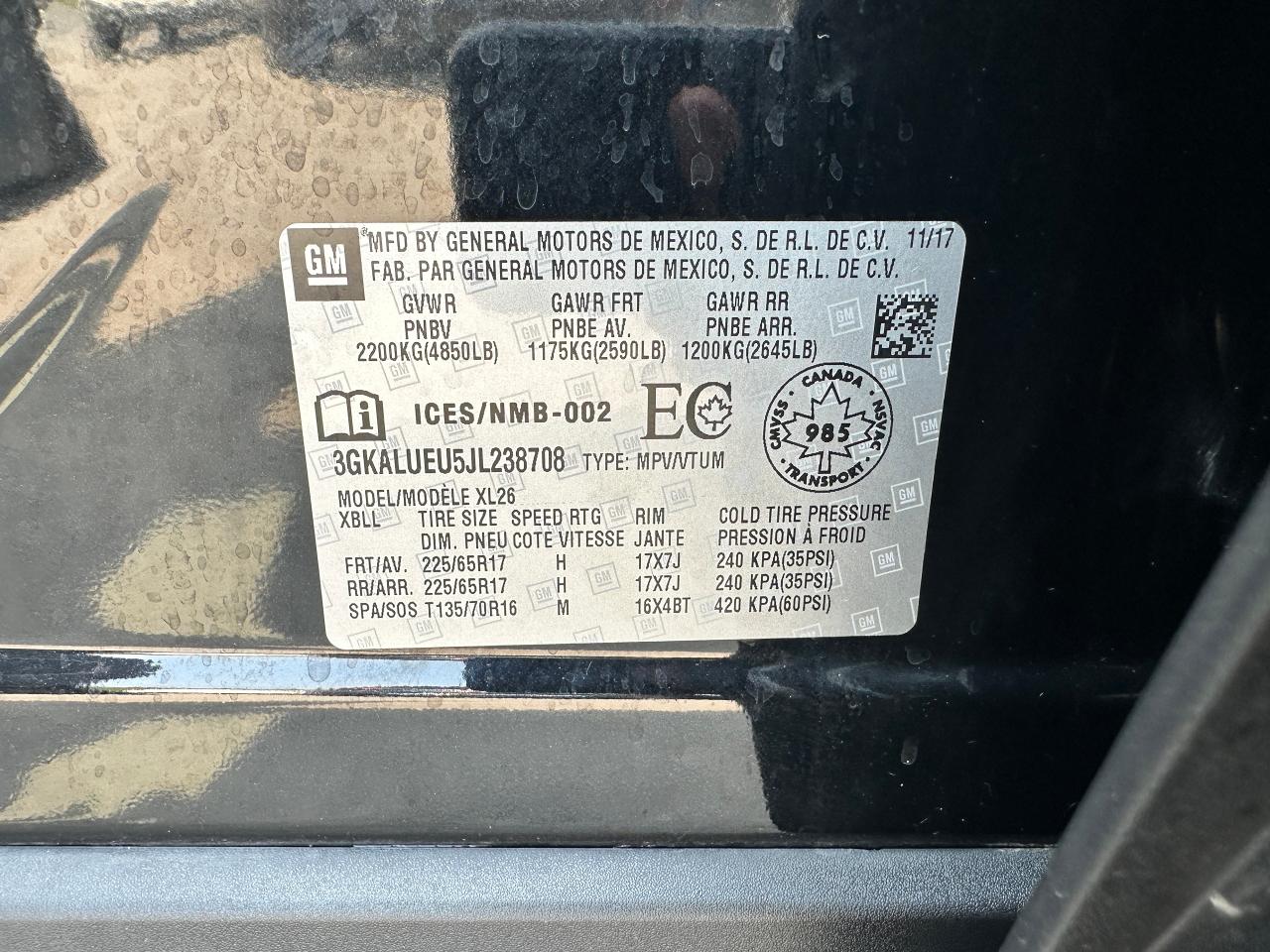 - VIN: 3GKALUEU5JL238708