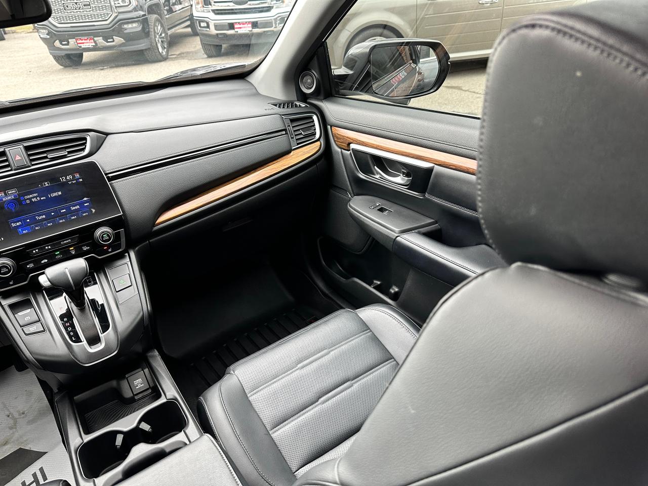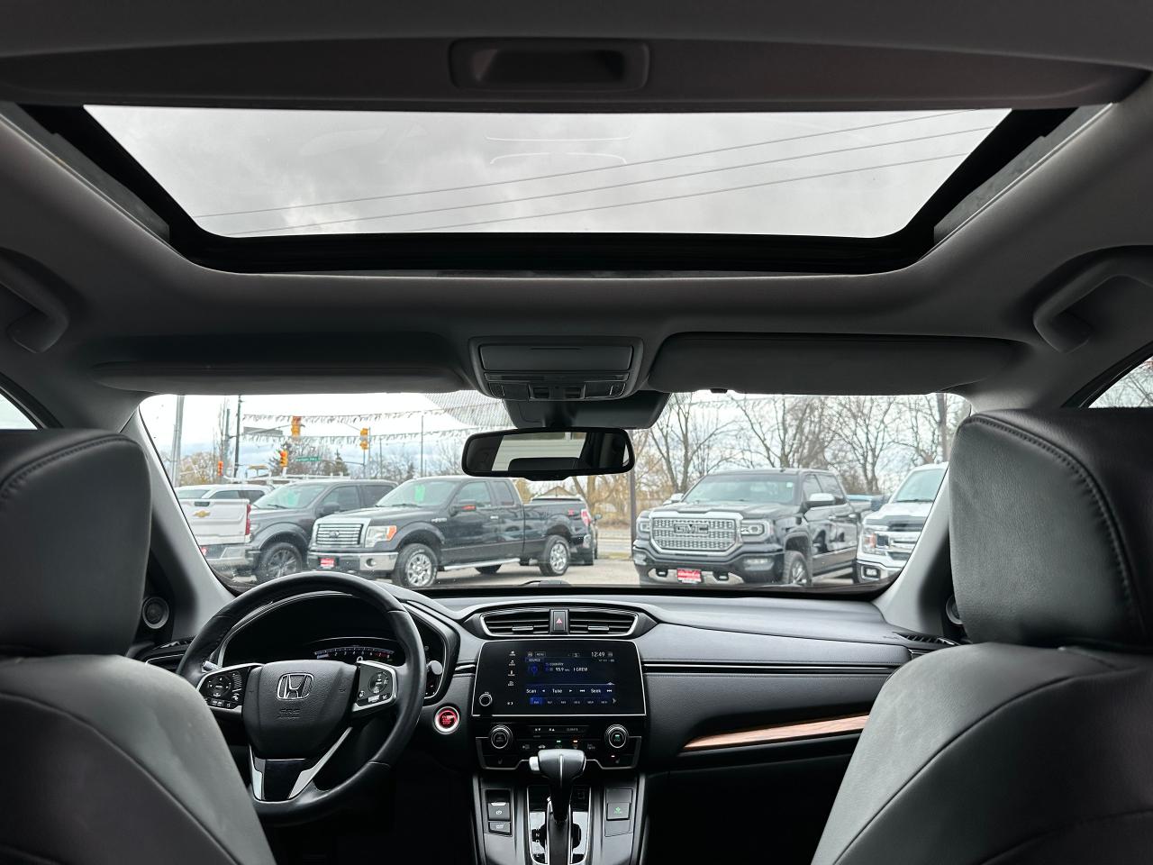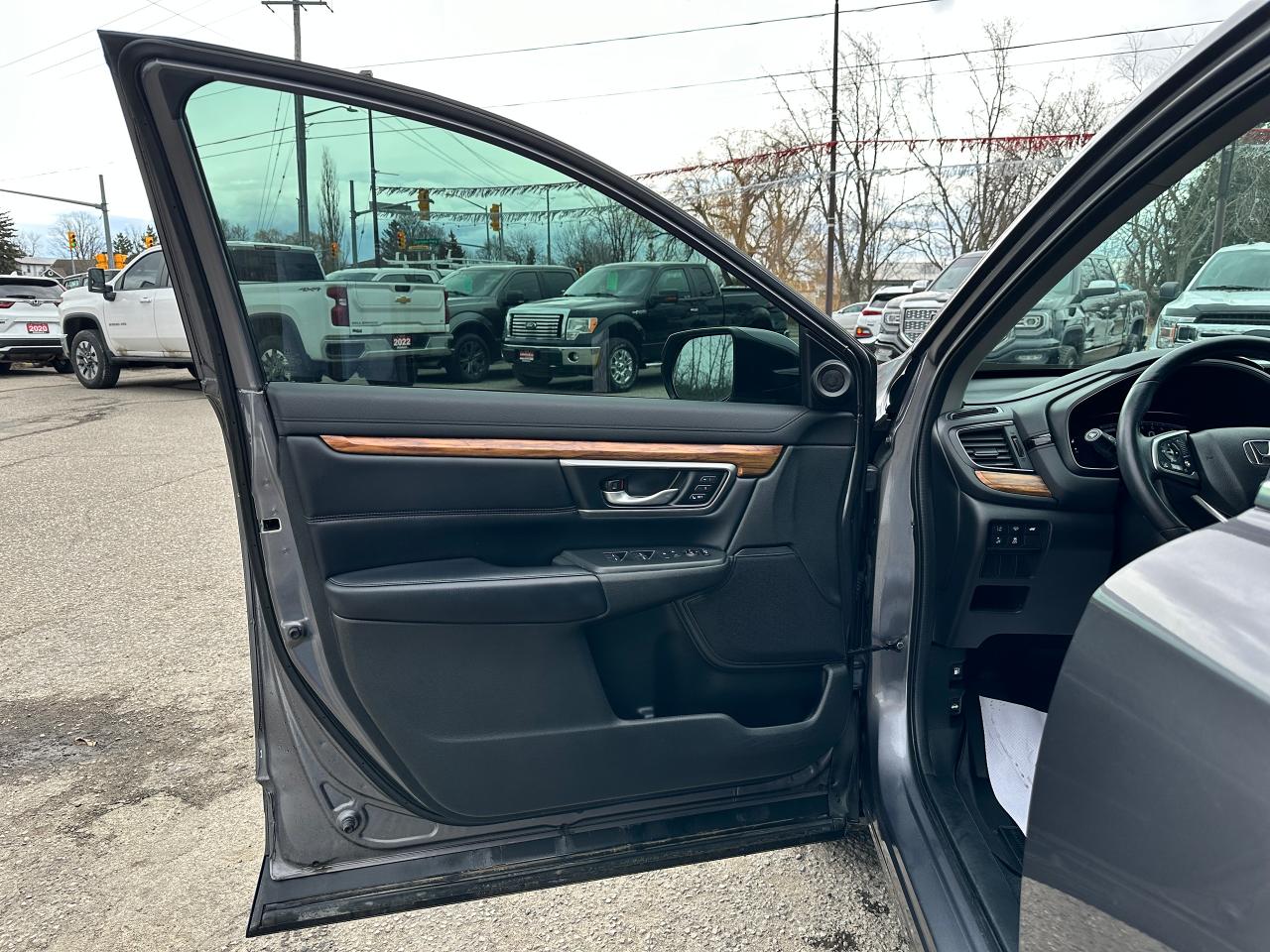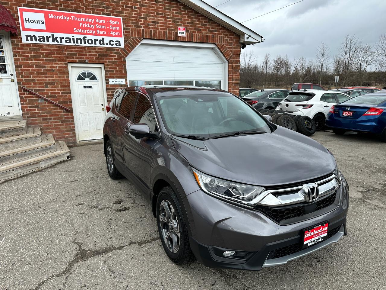 Super-clean, well-optioned, One-Owner Honda CR-V from Owen Sound, ON! This EX-L AWD model looks great in its Grey paint and factory alloy wheels with nice options inside and out! The exterior features keyless entry with remote start, proximity keys, remote power trunk, factory power sunroof, colour-matched side mirrors with integrated turn signals, automatic headlights, fog lights, heated wiper area, tinted privacy glass, lane-keeping assist, forward collision warning, a sleek rear spoiler, gorgeous factory alloy wheels, a peppy fuel efficient 1.5L 4-cylinder turbocharged Engine and Automatic transmission powering the All-Wheel-Drive System! The interior is clean and comfortable with Heated Leather seating both front and rear, power adjustable front seats with driver's lumbar and memory controls, power door locks, mirrors and windows, a heated leather wrapped steering wheel with Audio and Adaptive Cruise controls, an easy to read and use gauge cluster, push button start, large central touch screen AM/FM/XM Satellite Radio with Bluetooth, Smartphone Connection, Backup Camera and Blind Spot Camera, Dual-Zone A/C climate control, ECON driving mode for improved fuel economy, a spacious cargo area with retractable cargo cover, all weather floor mats, universal garage door openers, rear seat mirror USB/12V accessory ports and more!