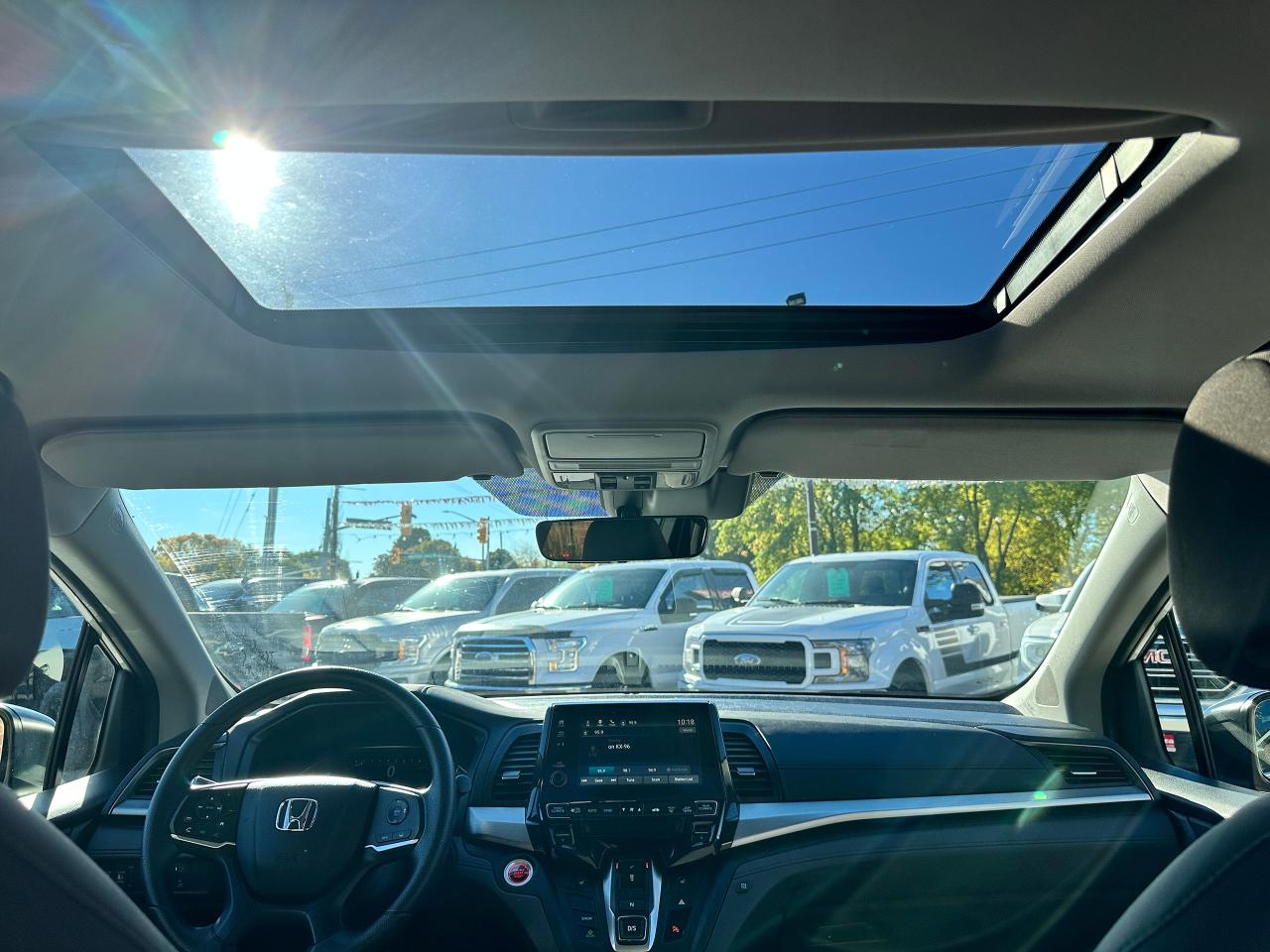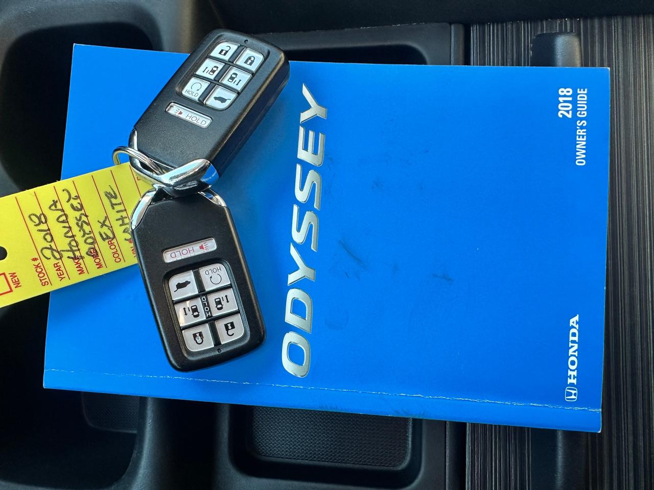 WOW! Super-Clean, well-maintained One-Owner Honda Odyssey from Markham, ON! This EX 8 Passenger model looks incredible in its Diamond White Paint and factory alloy wheels, with great options inside and out! the exterior features keyless entry with proximity keys and remote start, remote power sliding passenger doors, automatic headlights, foglights, adaptive cruise control, lane keep assist and forward collision system, a large factory power sunroof, colour-matched side mirrors with integrated turn signals and passenger side blind spot camera, tinted privacy glass, heated windshield, gorgeous machine finished alloy wheels with NEW All-Season tires, freshly installed, a smooth 3.5L V6 Engine and Automatic Transmission! The interior is clean and comfortable with room for the whole gang, heated cloth front seats with power adjustment and driver's lumbar control, fold-away third row seating, adjustable mid row with removable seats, power door locks, windows and mirrors, steering wheel mounted Audio, Cruise controls and paddle shifters, an easy to read and use gauge cluster, push button start, a large central touch screen AM/FM Radio with Bluetooth, Apple CarPlay, Android Auto, CD/MP3 Player, and Backup Camera, Multi-Zone climate control with front and rear window defrost settings, push button gear selection, SNOW/ECON Driving modes to fit your driving conditions, USB/AUX/12V accessory ports and more!