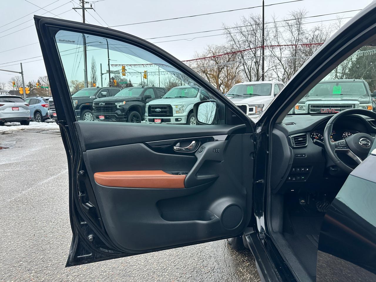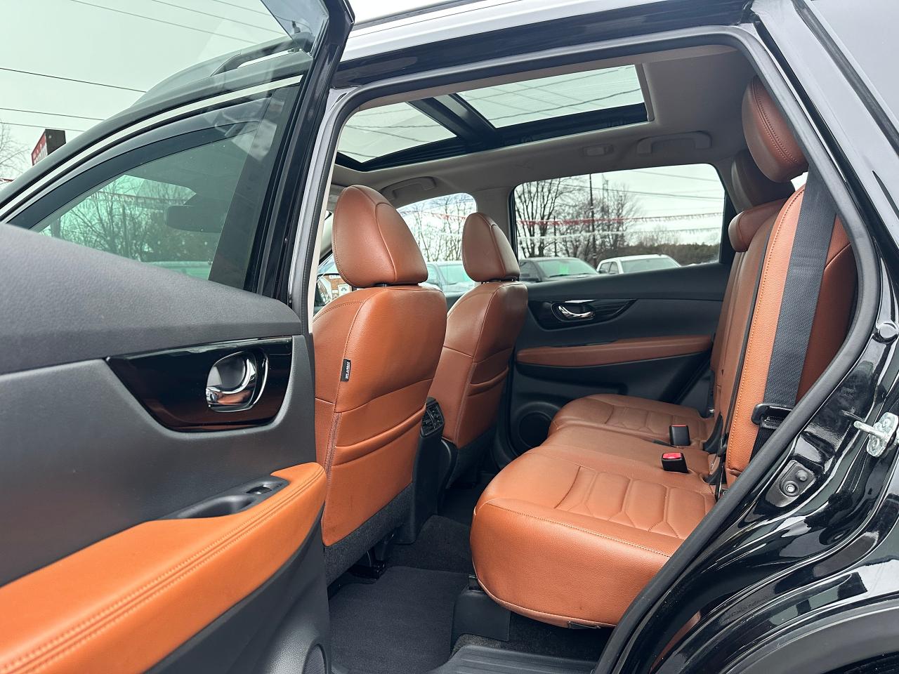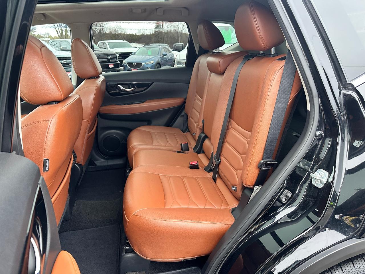WOW! Stunning LOW-KM, Nissan Rogue from Scarborough, ON! This SL AWD model looks incredible in its Black paint and Factory alloy wheels, with amazing options and styling inside and out! The exterior features keyless entry with remote start and proximity key, remote power liftgate, a HUGE panoramic powered sunroof, automatic headlights, foglights, roof rack rails, tinted privacy glass, Nissan safety shield including blind spot monitors, forward collision/adaptive cruise settings, 360 SkyView Cameras for parking assistance, colour-matched heated side mirrors with integrated turn signals, tinted privacy glass, a sleek rear spoiler, gorgeous machine finished factory alloy wheels with NEW All-Season tires freshly installed, a peppy fuel efficient 2.5L 4-Cylinder Engine and CVT Auto Transmission powering the All-Wheel-Drive System! The interior is very well appointed with Two-Tone Brown/Black leather interior/seating, heated power-adjustable front seating with driver's lumbar control and memory settings, power door locks, windows and mirrors, comfortable rear seating and large cargo area, a heated leather wrapped steering wheel with Audio and Cruise controls, push button start, an easy to read and use gauge cluster, a large central touch screen AM/FM/XM Satellite Radio with BOSE Premium Audio, Bluetooth, Navigation, Apple CarPlay, Android Auto, CD Player, and Parking Assist Cameras, Dual-Zone A/C climate controls with front and rear window defrost settings, Sport/Eco Driving Modes, USB/AUX/12V accessory ports, and more!