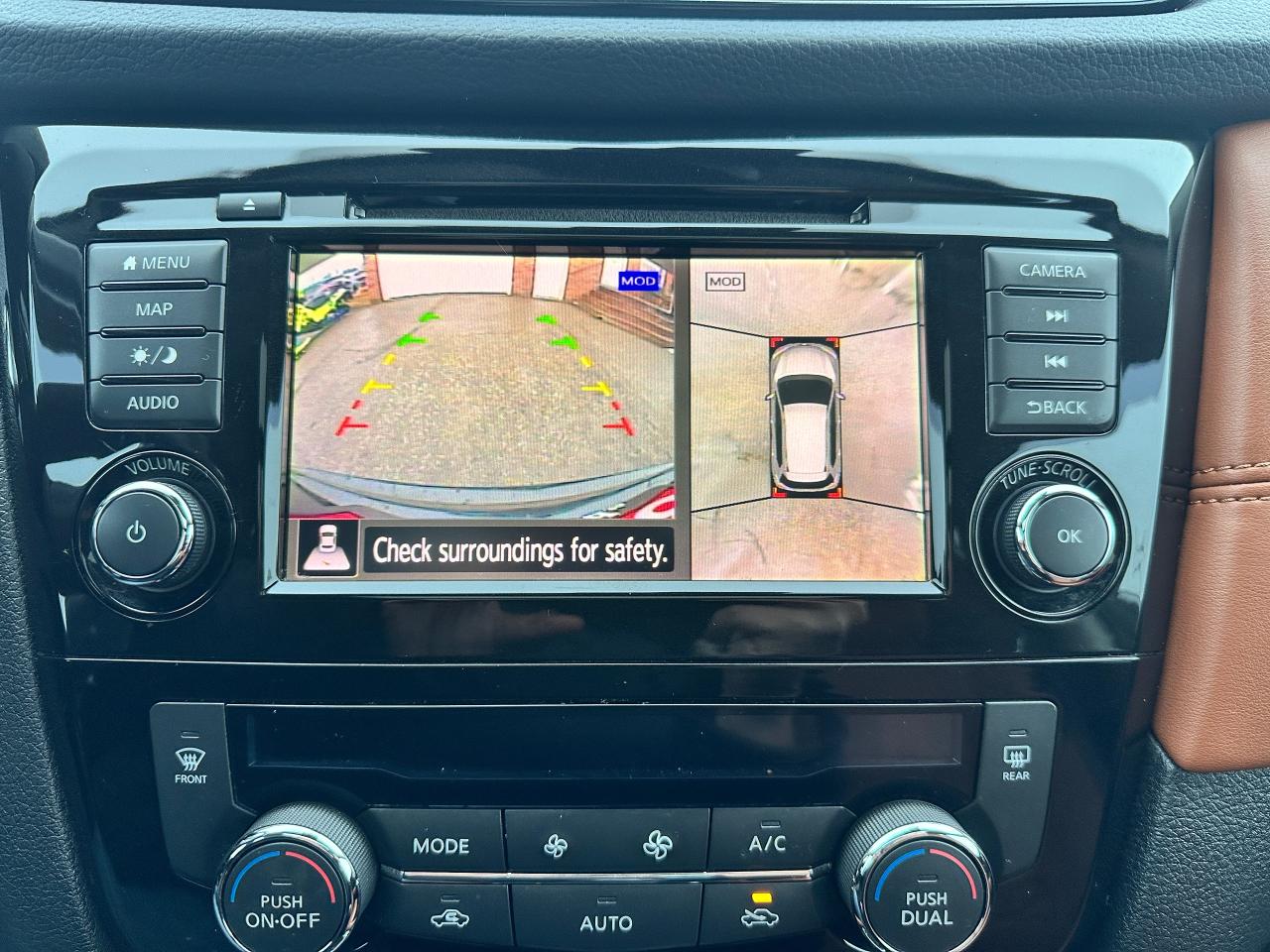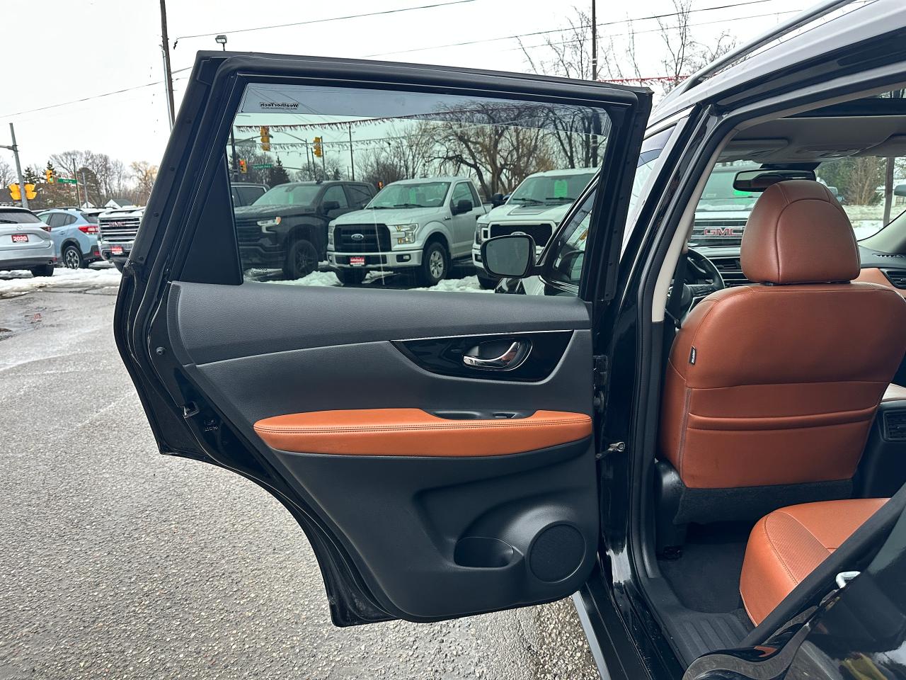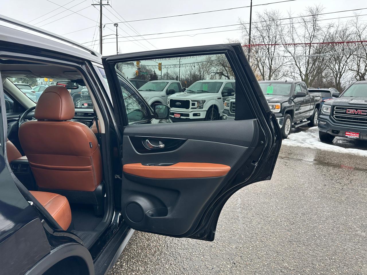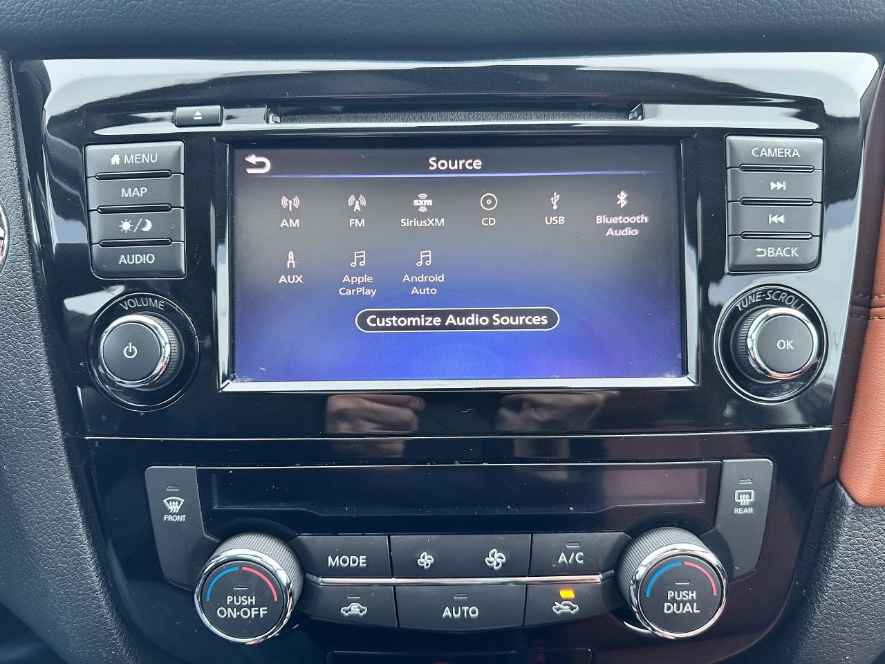 WOW! Stunning LOW-KM, Nissan Rogue from Scarborough, ON! This SL AWD model looks incredible in its Black paint and Factory alloy wheels, with amazing options and styling inside and out! The exterior features keyless entry with remote start and proximity key, remote power liftgate, a HUGE panoramic powered sunroof, automatic headlights, foglights, roof rack rails, tinted privacy glass, Nissan safety shield including blind spot monitors, forward collision/adaptive cruise settings, 360 SkyView Cameras for parking assistance, colour-matched heated side mirrors with integrated turn signals, tinted privacy glass, a sleek rear spoiler, gorgeous machine finished factory alloy wheels with NEW All-Season tires freshly installed, a peppy fuel efficient 2.5L 4-Cylinder Engine and CVT Auto Transmission powering the All-Wheel-Drive System! The interior is very well appointed with Two-Tone Brown/Black leather interior/seating, heated power-adjustable front seating with driver's lumbar control and memory settings, power door locks, windows and mirrors, comfortable rear seating and large cargo area, a heated leather wrapped steering wheel with Audio and Cruise controls, push button start, an easy to read and use gauge cluster, a large central touch screen AM/FM/XM Satellite Radio with BOSE Premium Audio, Bluetooth, Navigation, Apple CarPlay, Android Auto, CD Player, and Parking Assist Cameras, Dual-Zone A/C climate controls with front and rear window defrost settings, Sport/Eco Driving Modes, USB/AUX/12V accessory ports, and more!
