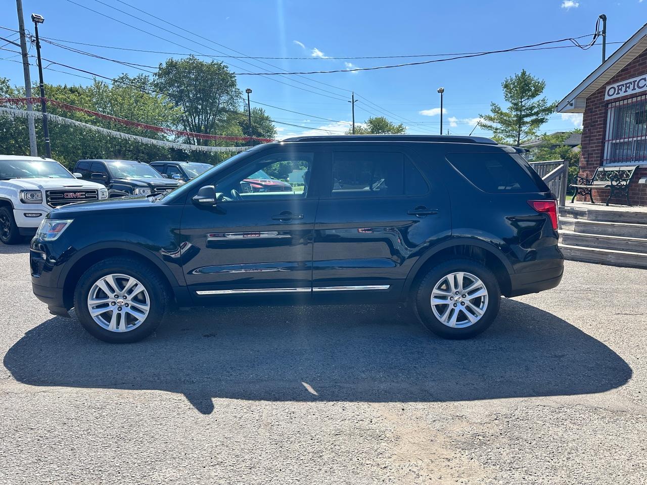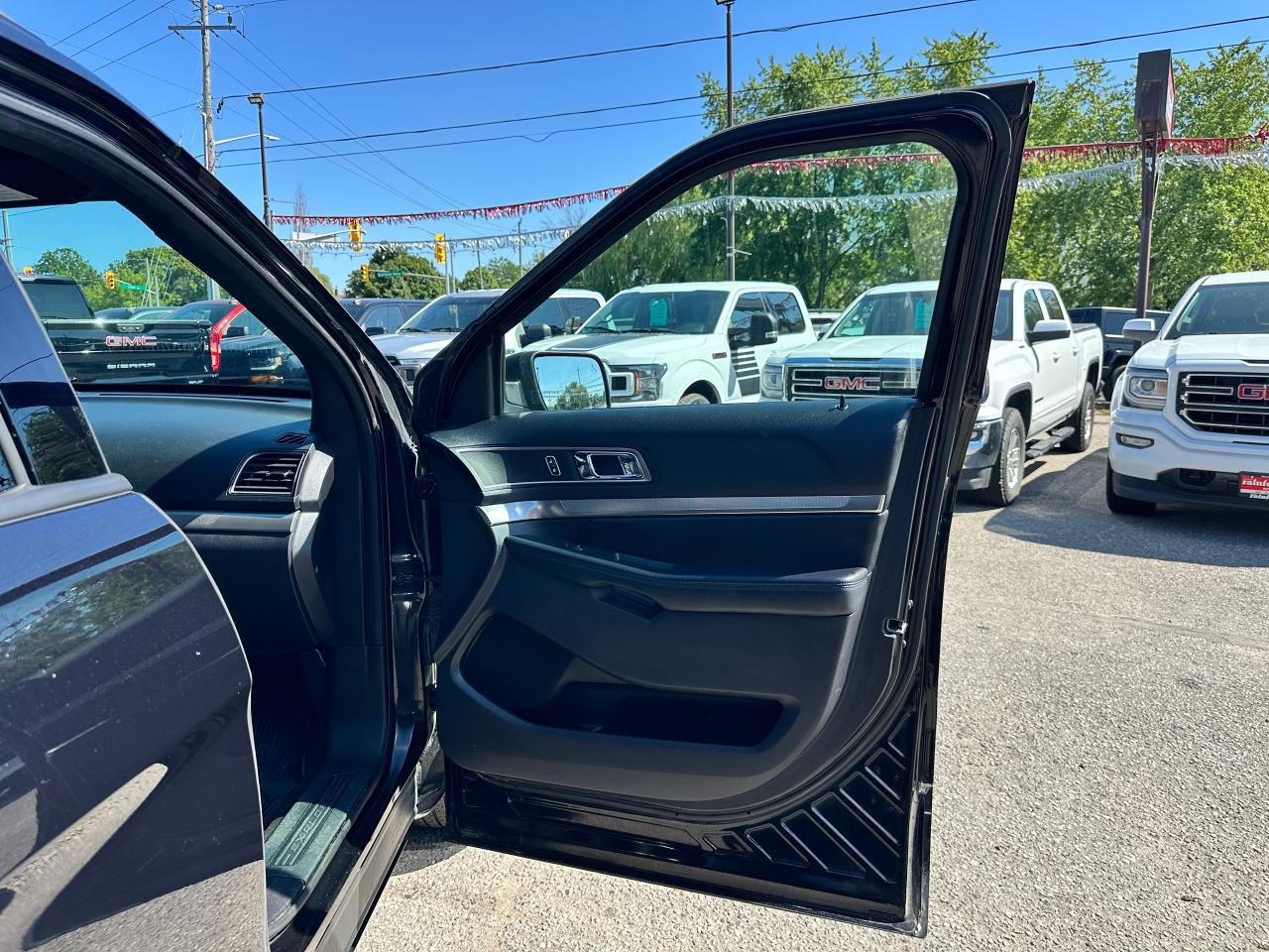 Super-Clean, well-maintained Ford Explorer from Lindsay, ON! This XLT 4WD model is very well equipped and looks incredible in its Black paint and factory alloy wheels! The exterior features keyless entry with remote start and proximity keys, keycode entry, automatic headlights, foglights, blind spot monitors, adaptive cruise/forward warning, integrated mirror turn signals, a HUGE power sunroof, a power rear liftgate, roof rack rails, tinted privacy glass, a sporty dual rear exhaust, a sleek rear spoiler, gorgeous factory alloy wheels, a peppy 2.3L 4-cylinder Turbocharged Engine and Automatic transmission power the 4WD system! The interior is clean and comfortable with power-adjustable heated leather front seats with driver's lumbar controls, fold-away third row seating, rear A/C controls, power door locks, windows and mirrors, steering wheel audio and cruise controls, an easy-to-read and use gauge cluster, push button start, a large central touch screen AM/FM/XM Satellite Radio with Bluetooth, Apple CarPlay, Navigation, WiFi Settings, and Backup Camera, Dual-Zone A/C climate controls with front and rear window defrost settings, terrain selection modes, hill descent assist, USB/12V accessory ports and more!