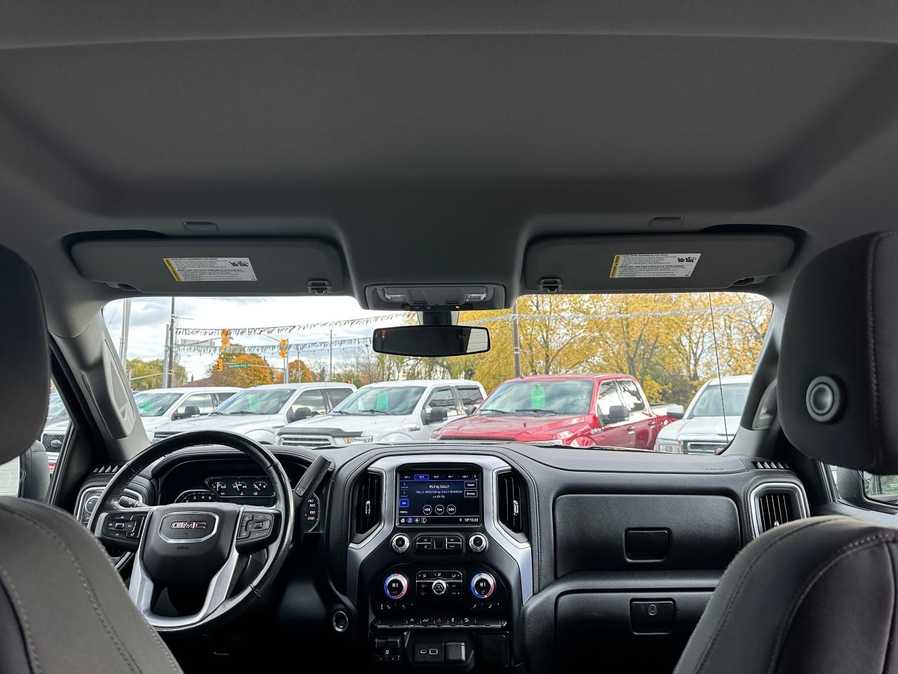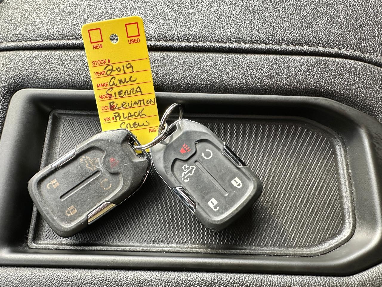 WOW! Super-Clean and LOW-KM, GMC Sierra 1500 from Kingston, ON! This Elevation Crew Cab 4x4 model looks great in its Black paint and Alloy wheels, with nice options inside and out! The exterior features keyless entry with remote start and proximity keys, automatic headlights, foglights, front tow hooks, a trailer hitch, tinted privacy glass, rear bumper steps, a dual rear exhaust, a spray-in bedliner and hard folding tonneau cover, gorgeous black factory alloy wheels, remote tailgate release, a powerful 5.3L V8 Engine and Automatic Transmission powering the 4x4 system! The interior is clean and comfortable with heated cloth front seats with driver's power adjustment and lumbar control, all-weather floor mats, power door locks, mirrors and windows, a heated leather wrapped steering wheel with Audio and Cruise controls, electronic 4x4 selection buttons and trail assist knob, integrated electronic trailer brake controller, an easy to read and use gauge cluster, push button start, a large central touch screen AM/FM/XM Satellite Radio with Bluetooth, Apple CarPlay, Android Auto, OnStar Turn-By-Turn capability and Backup Camera, Dual-Zone A/C climate controls with front and rear window defrost settings, Auto-Stop/Start Override switch, hill descent assist, USB-C/USB/12V accessory ports and more!