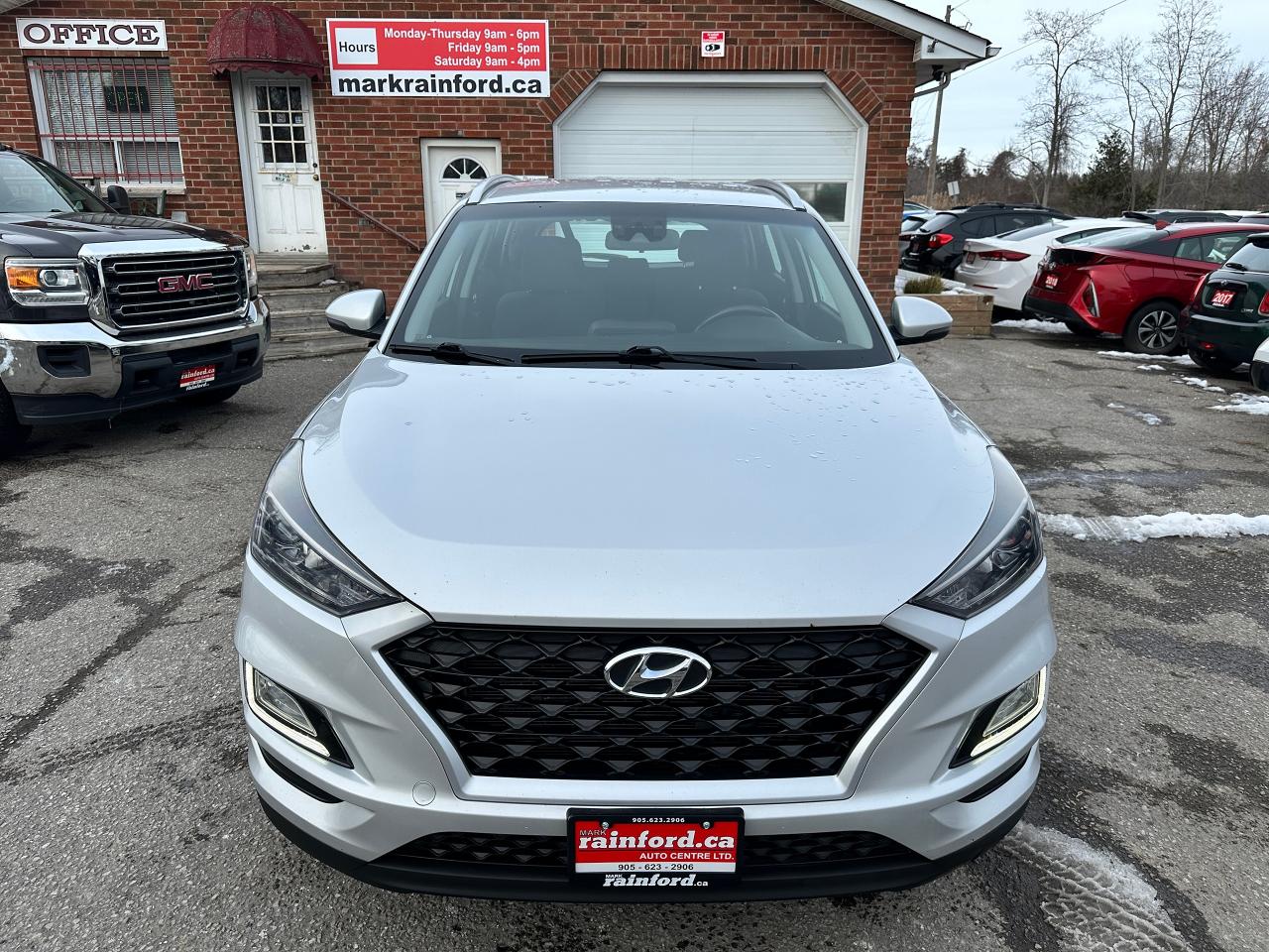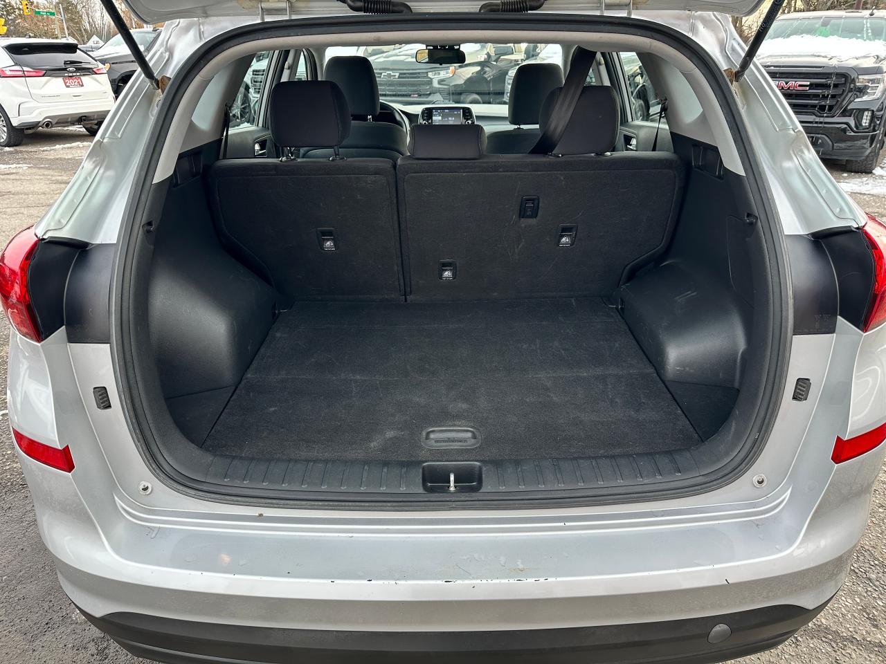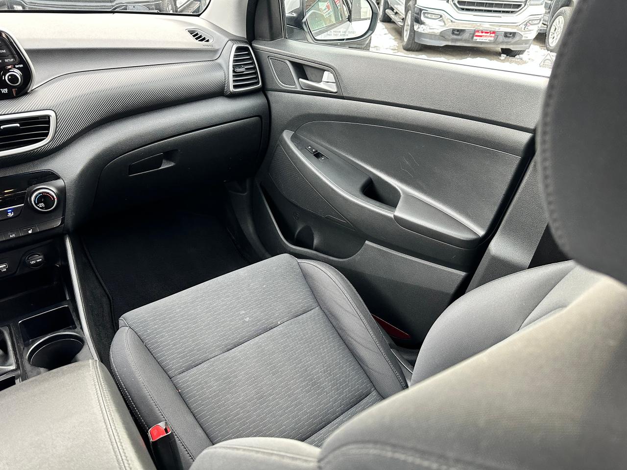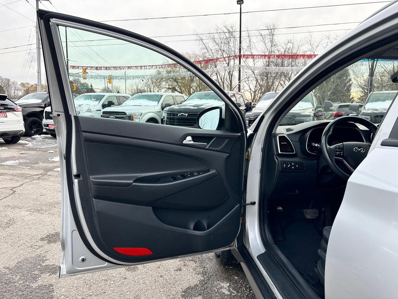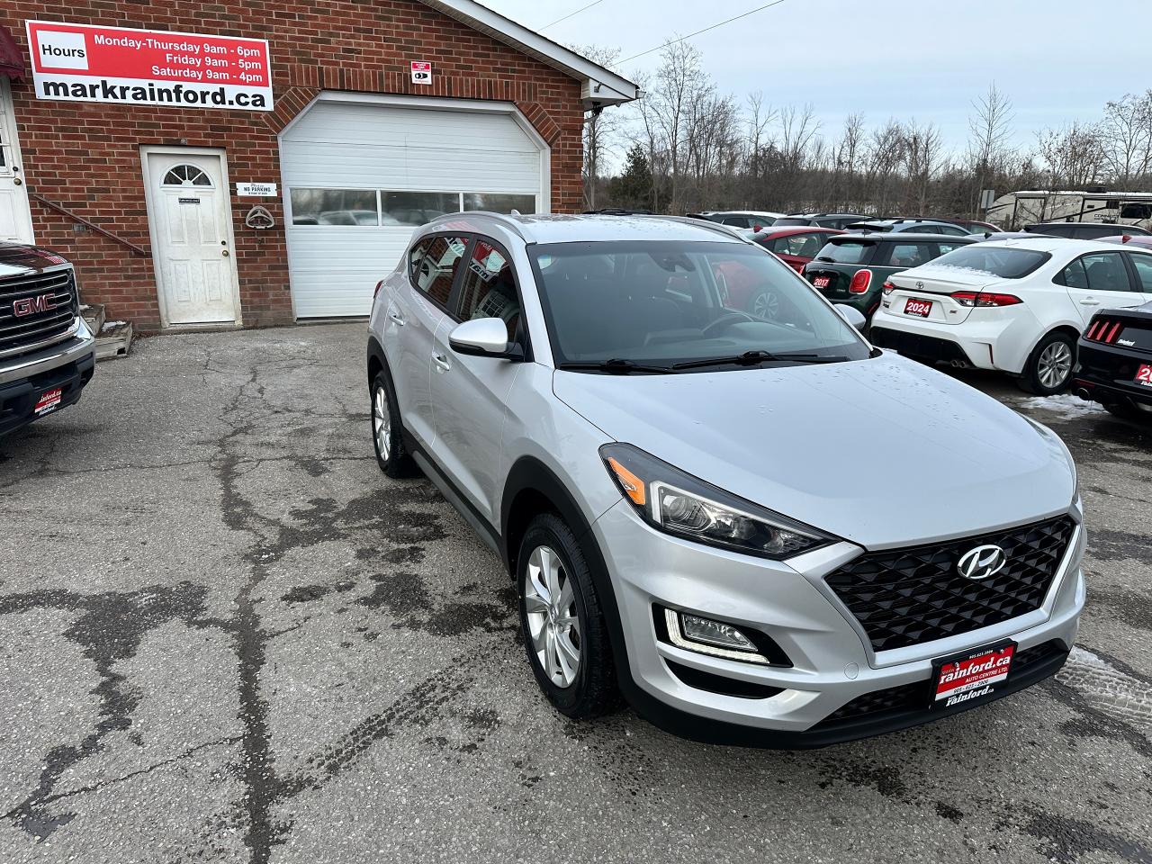 Clean and Tidy Hyundai Tucson from Kingston, ON! This Preferred AWD model looks great in its Silver paint and factory alloy wheels, with nice options inside and out! The exterior features keyless entry and remote starter, Automatic headlights, foglights, colour-matched side mirrors with integrated turn signals, a sleek rear spoiler, lane departure warning, blind spot detection, roof rack rails, nice factory alloy wheels, new All-Season tires freshly installed, a peppy fuel-efficient 2.0L 4-cylinder Engine and Automatic Transmission powering the All-Wheel-Drive system! The interior is comfortable with heated cloth seats front and rear, power door locks, windows and mirrors, a heated leather wrapped steering wheel with Audio and Cruise controls, an easy to read and use gauge cluster, a large central touch screen with AM/FM Radio, Bluetooth, Apple CarPlay, Android Auto, and Backup Camera, A/C climate controls with front and rear window defrost settings, USB/AUX/12V accessory ports, Hill descent assist, Drive Mode Selection and more!