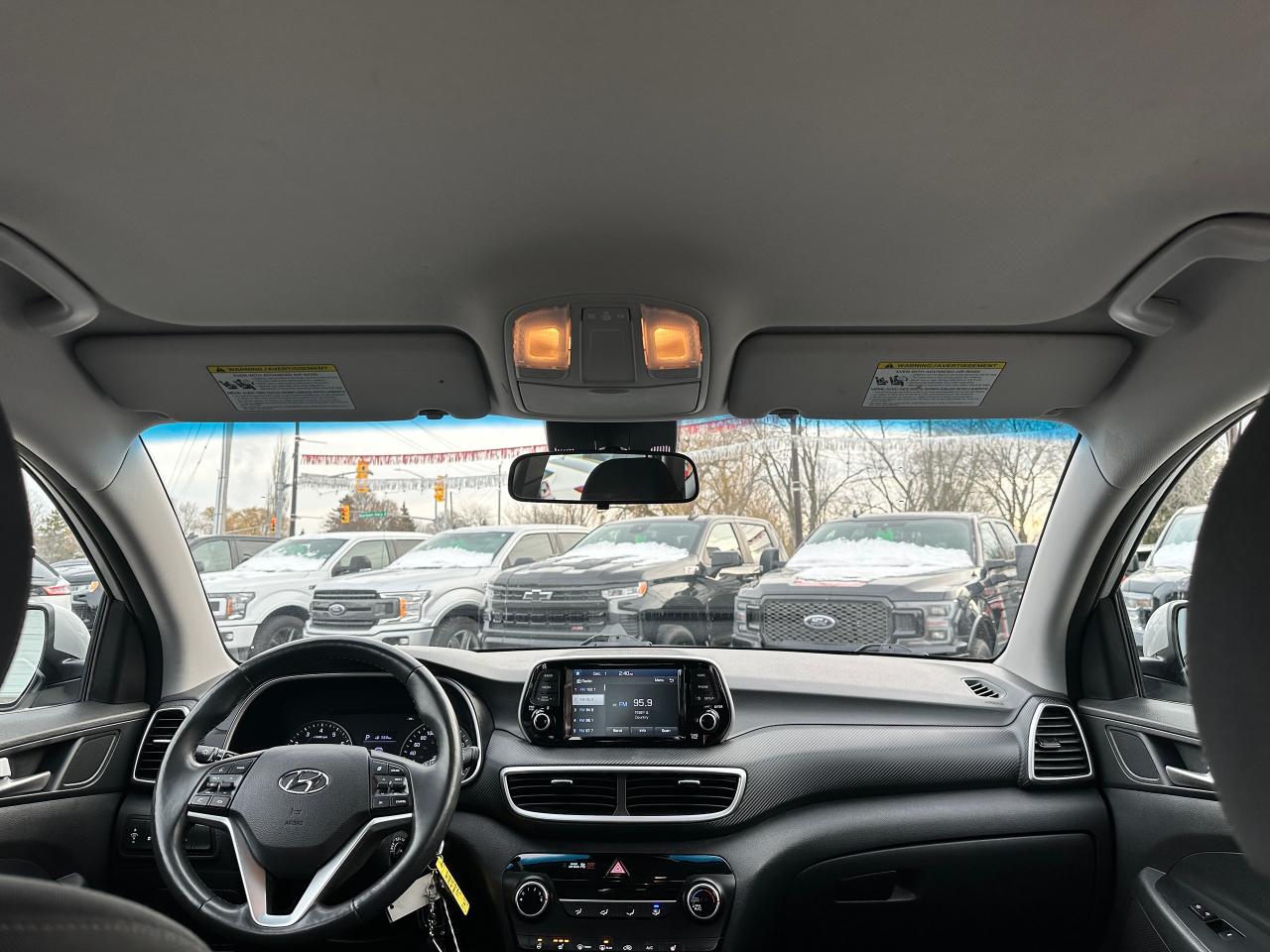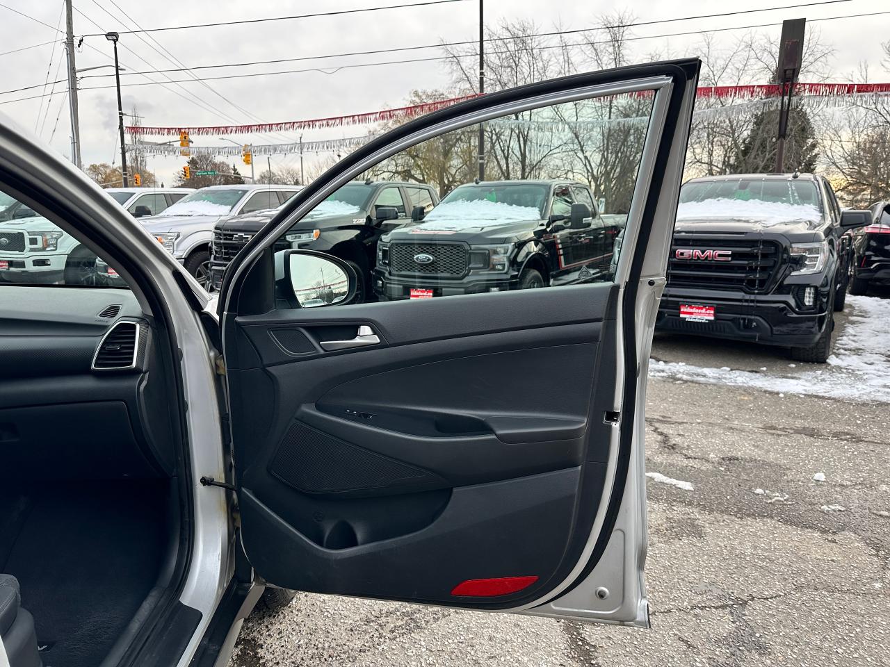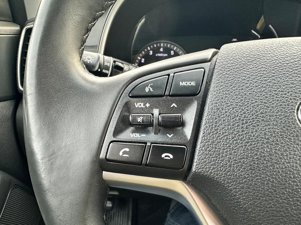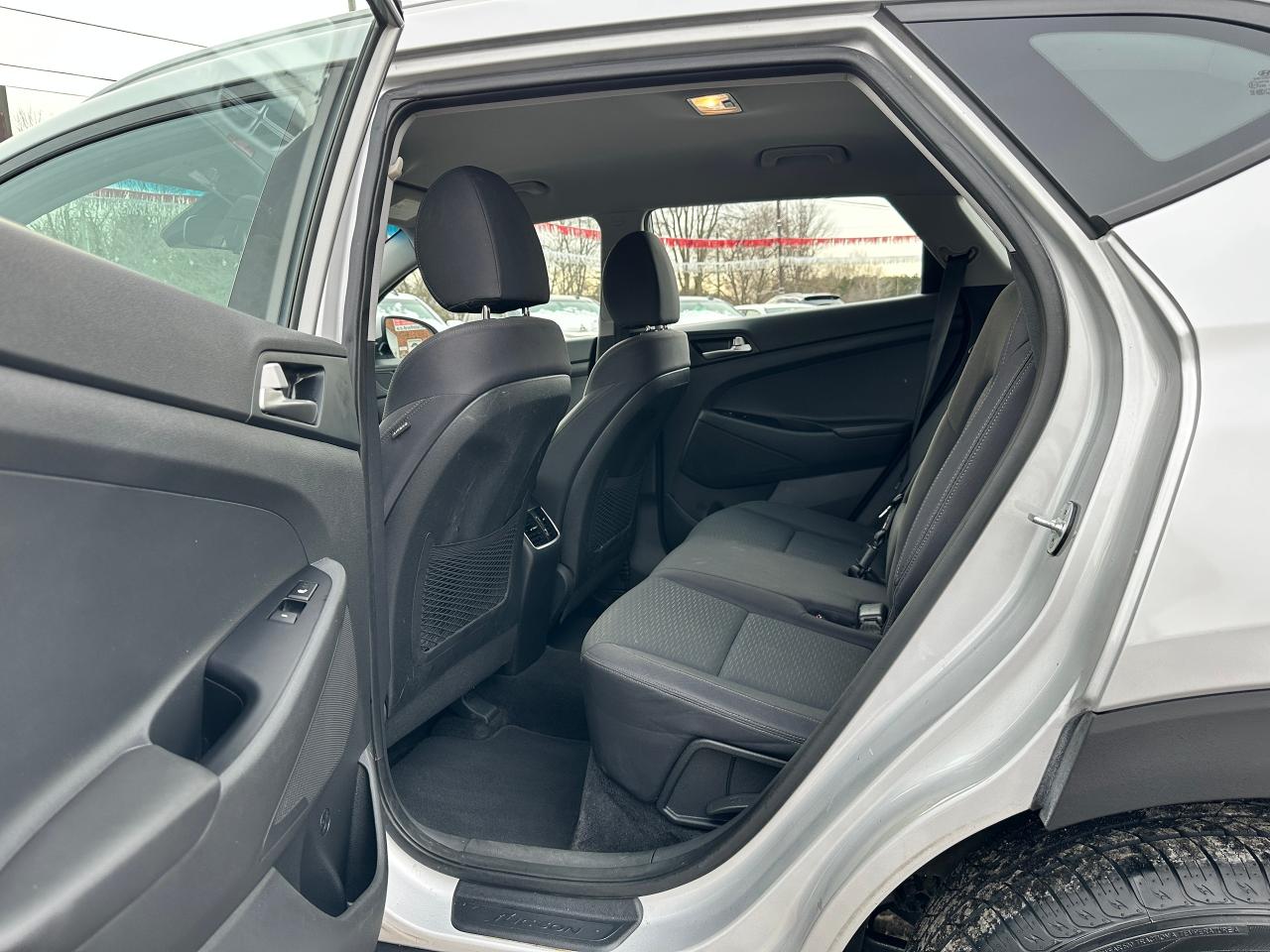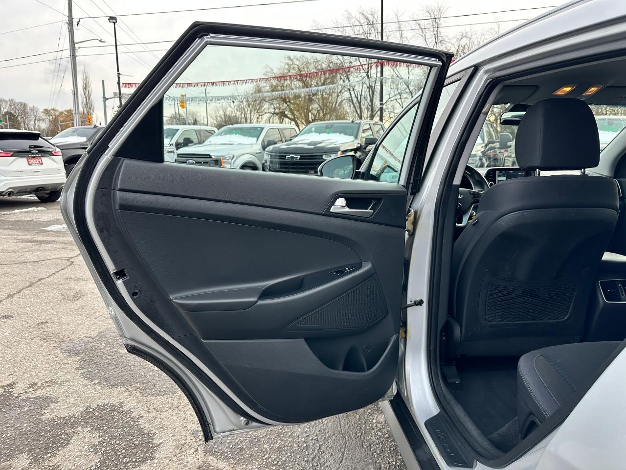Clean and Tidy Hyundai Tucson from Kingston, ON! This Preferred AWD model looks great in its Silver paint and factory alloy wheels, with nice options inside and out! The exterior features keyless entry and remote starter, Automatic headlights, foglights, colour-matched side mirrors with integrated turn signals, a sleek rear spoiler, lane departure warning, blind spot detection, roof rack rails, nice factory alloy wheels, new All-Season tires freshly installed, a peppy fuel-efficient 2.0L 4-cylinder Engine and Automatic Transmission powering the All-Wheel-Drive system! The interior is comfortable with heated cloth seats front and rear, power door locks, windows and mirrors, a heated leather wrapped steering wheel with Audio and Cruise controls, an easy to read and use gauge cluster, a large central touch screen with AM/FM Radio, Bluetooth, Apple CarPlay, Android Auto, and Backup Camera, A/C climate controls with front and rear window defrost settings, USB/AUX/12V accessory ports, Hill descent assist, Drive Mode Selection and more!