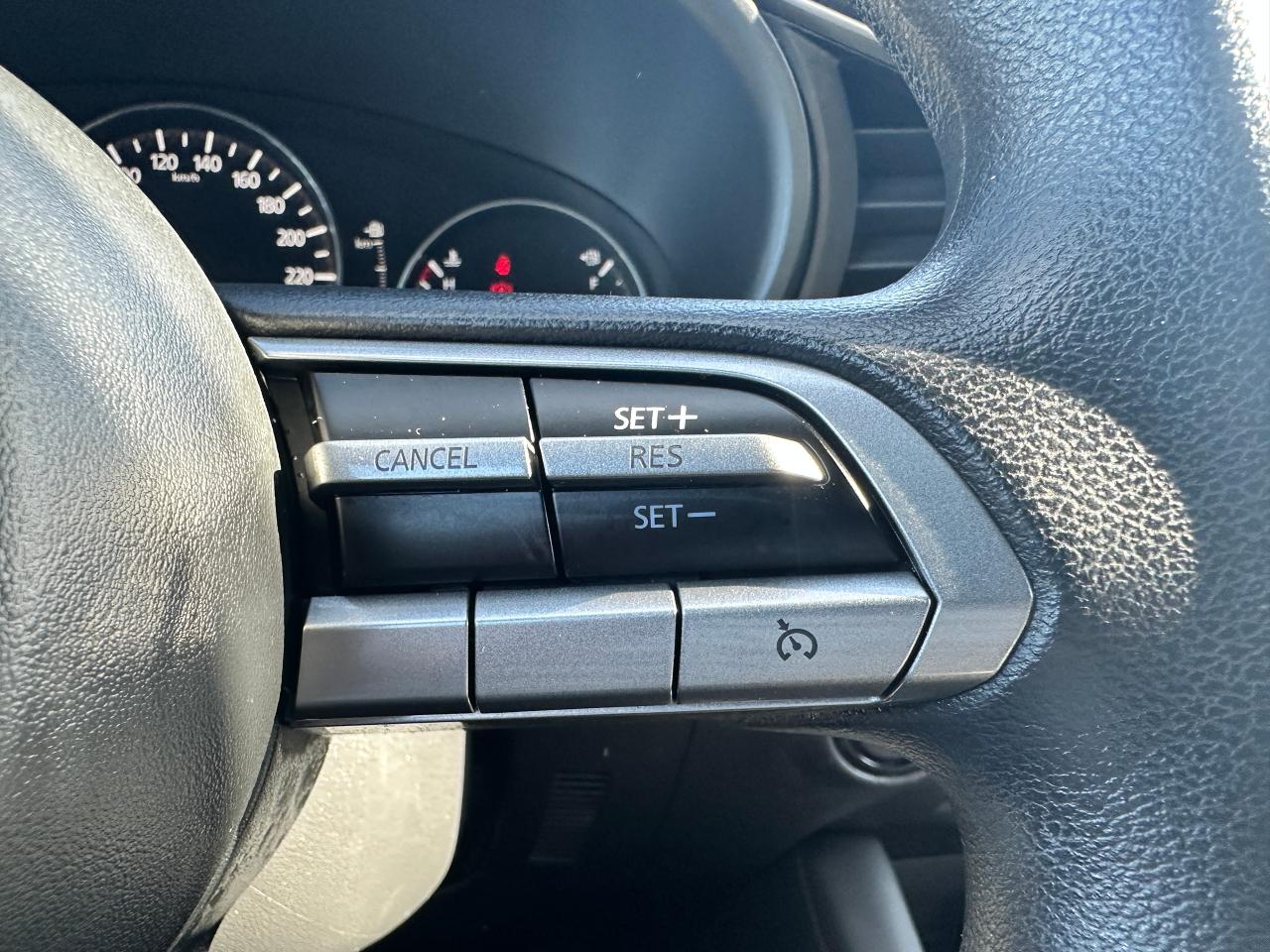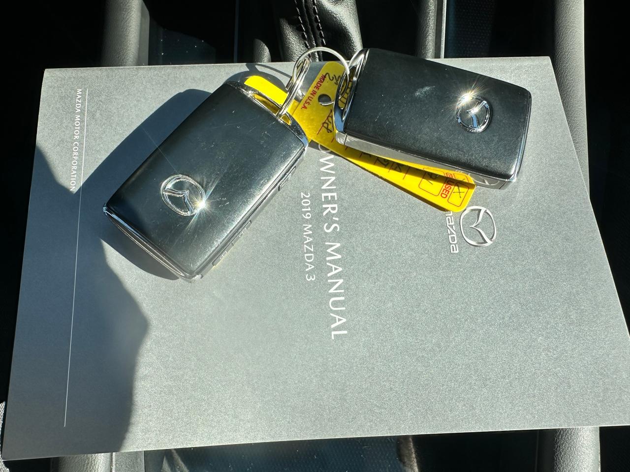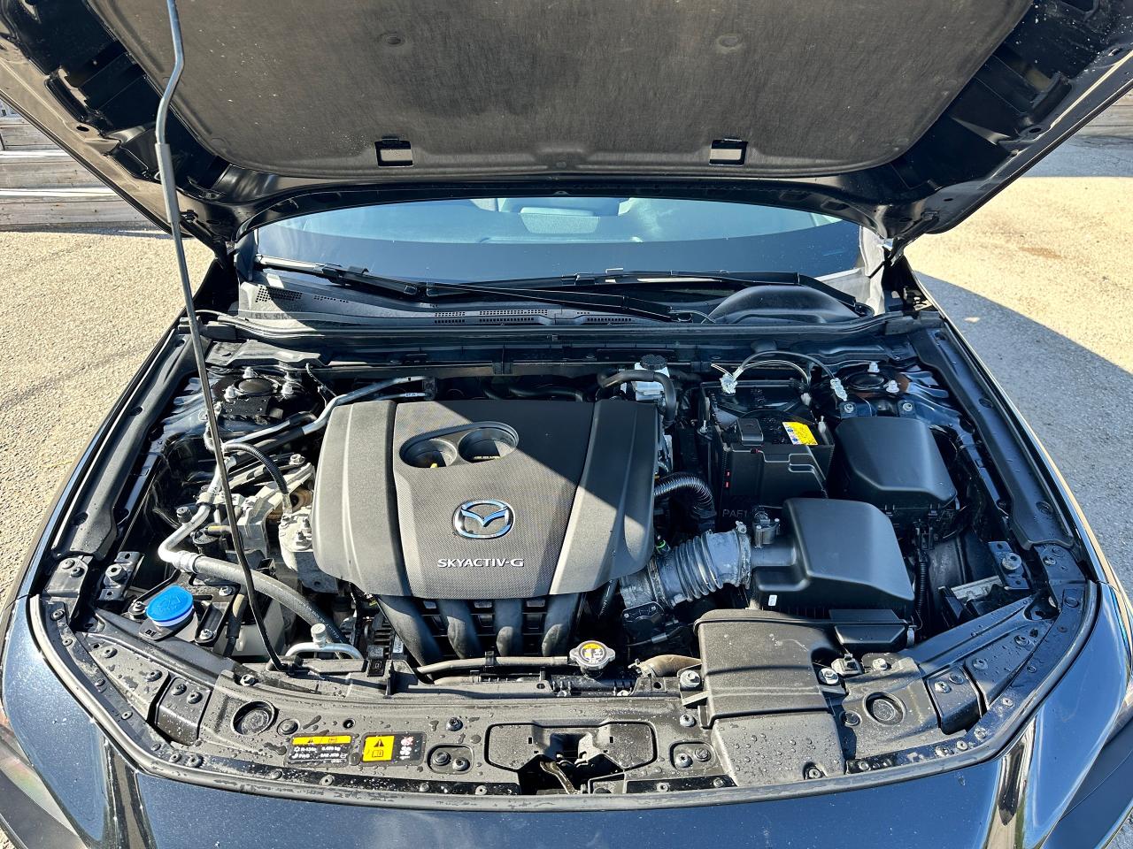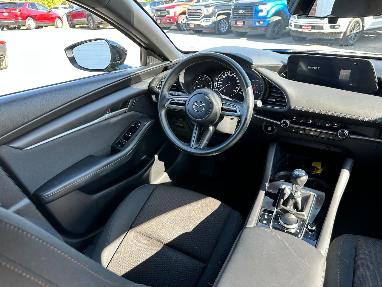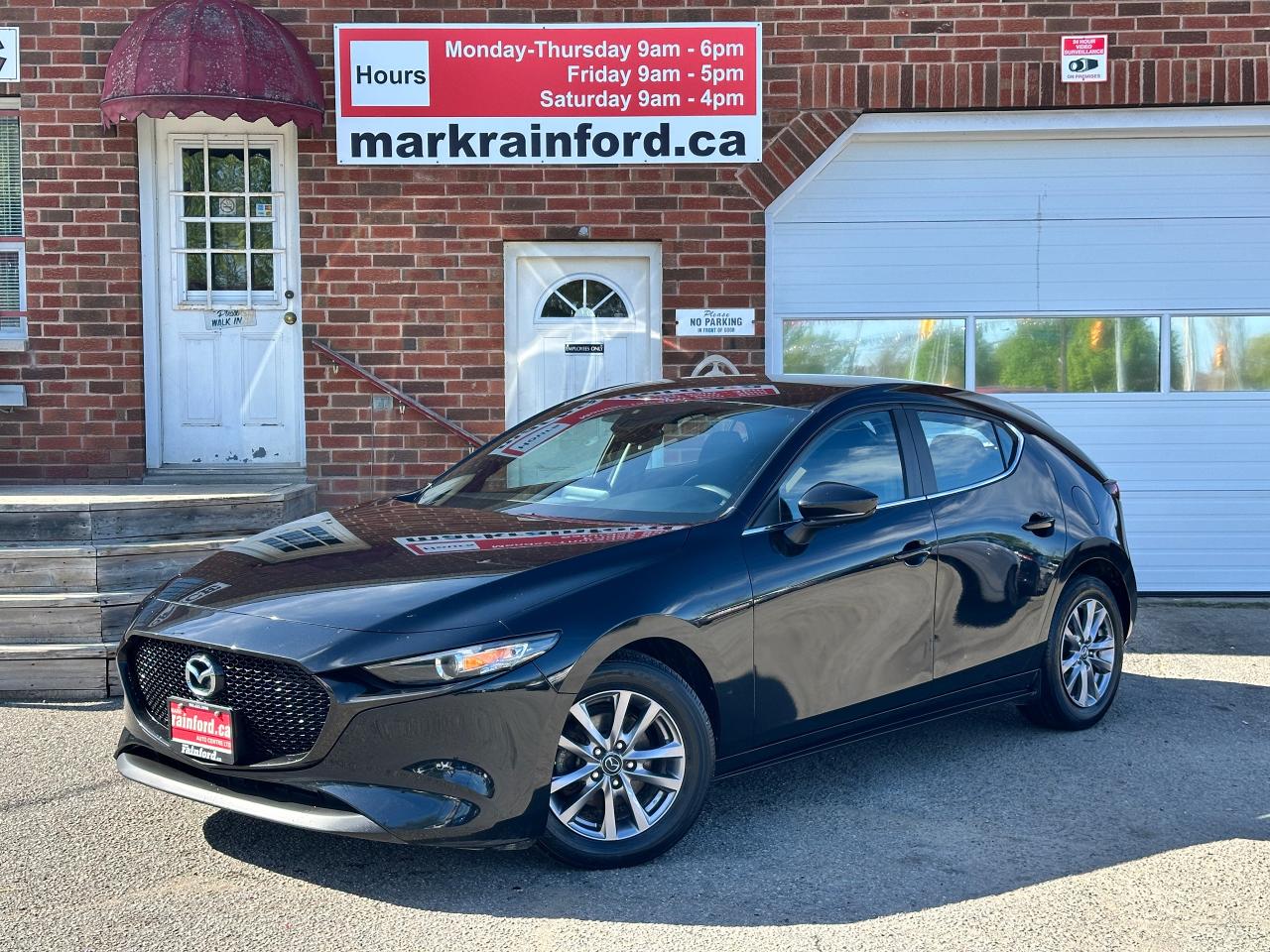 Super-Clean LOW KM Mazda MAZDA3 from Kanata, ON! This GX Hatchback 6-Speed Manual model looks great in its Black paint and factory alloy wheels, with nice options inside and out! The exterior features keyless entry, colour-matched side mirrors with integrated turn signals, blind spot monitor, a sleek rear spoiler, sporty dual exit exhaust, gorgeous factory alloy wheels, a peppy fuel-efficient 2.0L 4-cylinder Engine and 6-Speed Transmission make this hatchback a joy to drive! The interior is clean and comfortable with heated cloth front seats, power door locks, windows and mirrors, driver's seat thigh adjustment, a large cargo area with privacy shade, steering wheel audio and cruise controls, an easy to read and use gauge cluster, push button start, a large central AM/FM HD Radio with Bluetooth, NAV ready, Backup Camera, A/C climate control with front and rear window defrost settings, an easy to use and nice feeling shifter knob, USB/12V accessory ports and more!