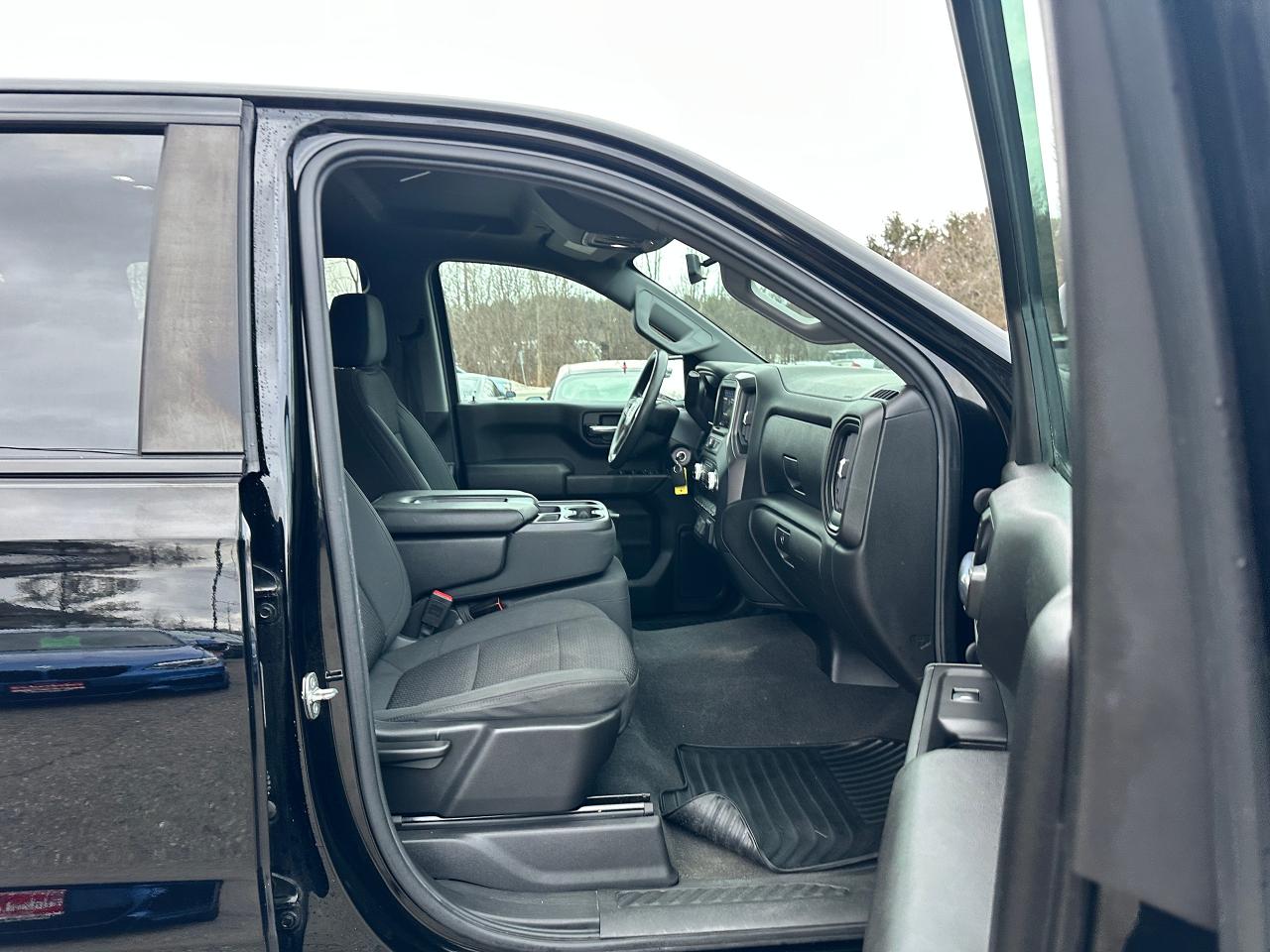 WOW! Super-Clean and sharp looking GMC Sierra 1500 from Belleville, ON! This 2.7L Crew Cab 4x4 model looks amazing in its Black paint and factory alloy wheels, with plenty of space and seating! The exterior features keyless entry, Automatic headlights, front tow hooks, a trailer hitch, black side mirrors, tinted privacy glass, rear bumper steps, a GMC spray-in bedliner, a soft folding tonneau cover, bed-light, gorgeous Black factory alloy wheels, an efficient 2.7L 4-Cylinder Turbocharged Engine and Automatic transmission powering the 4x4 system! The interior is clean and comfortable with cloth seating for 6 occupants through its fold-up centre console, all-weather floor mats, power door locks, windows and mirrors, electronic 4x4 selection buttons, steering wheel mounted cruise controls, an easy-to-read and use gauge cluster, large central touch screen AM/FM Radio with Bluetooth, Apple CarPlay, Android Auto, WiFi Settings and Backup Camera, A/C climate controls with front and rear window defrost settings, Auto-Stop/Start override button, electronic tailgate release button, USB/12V accessory ports and more!