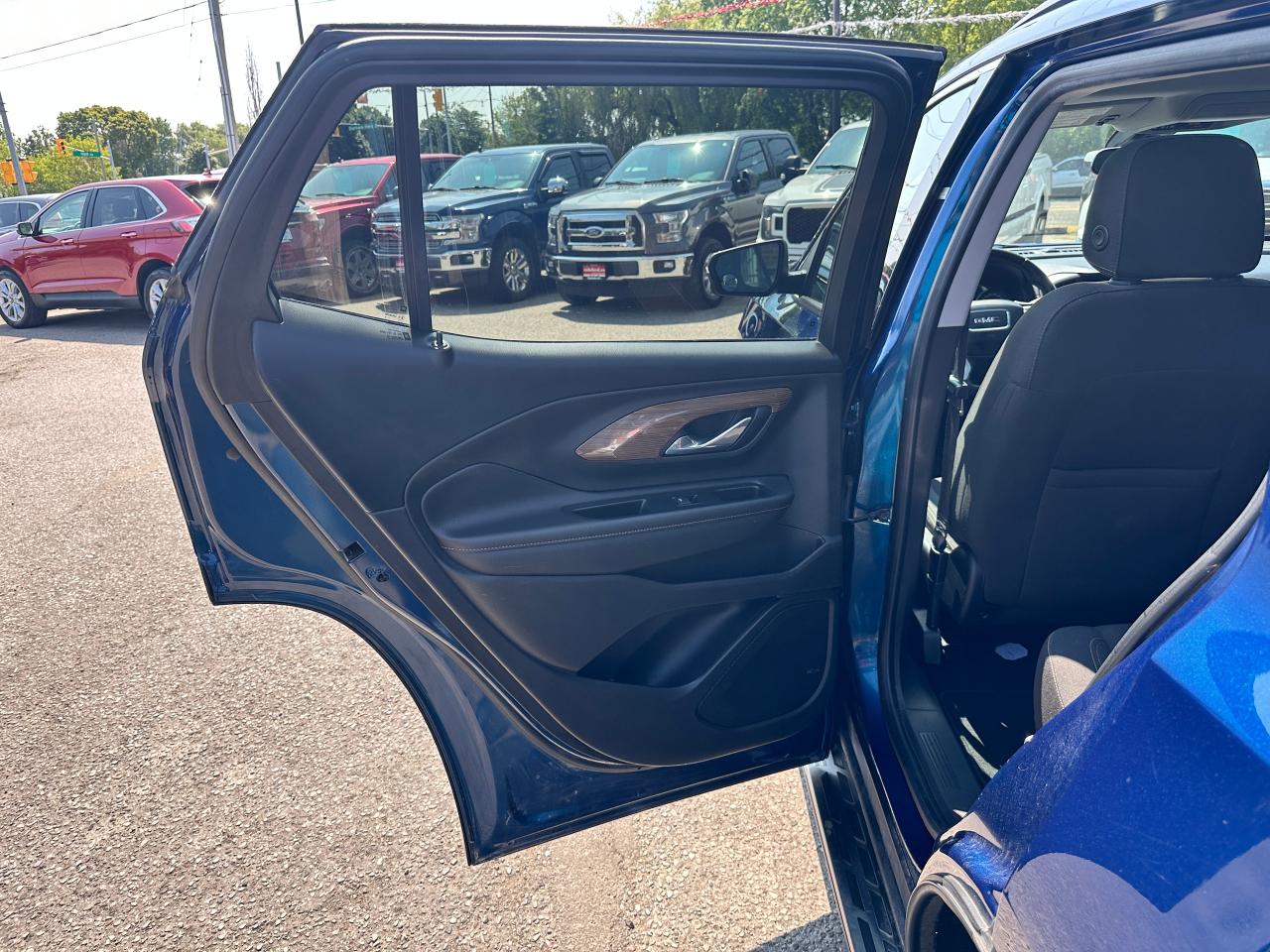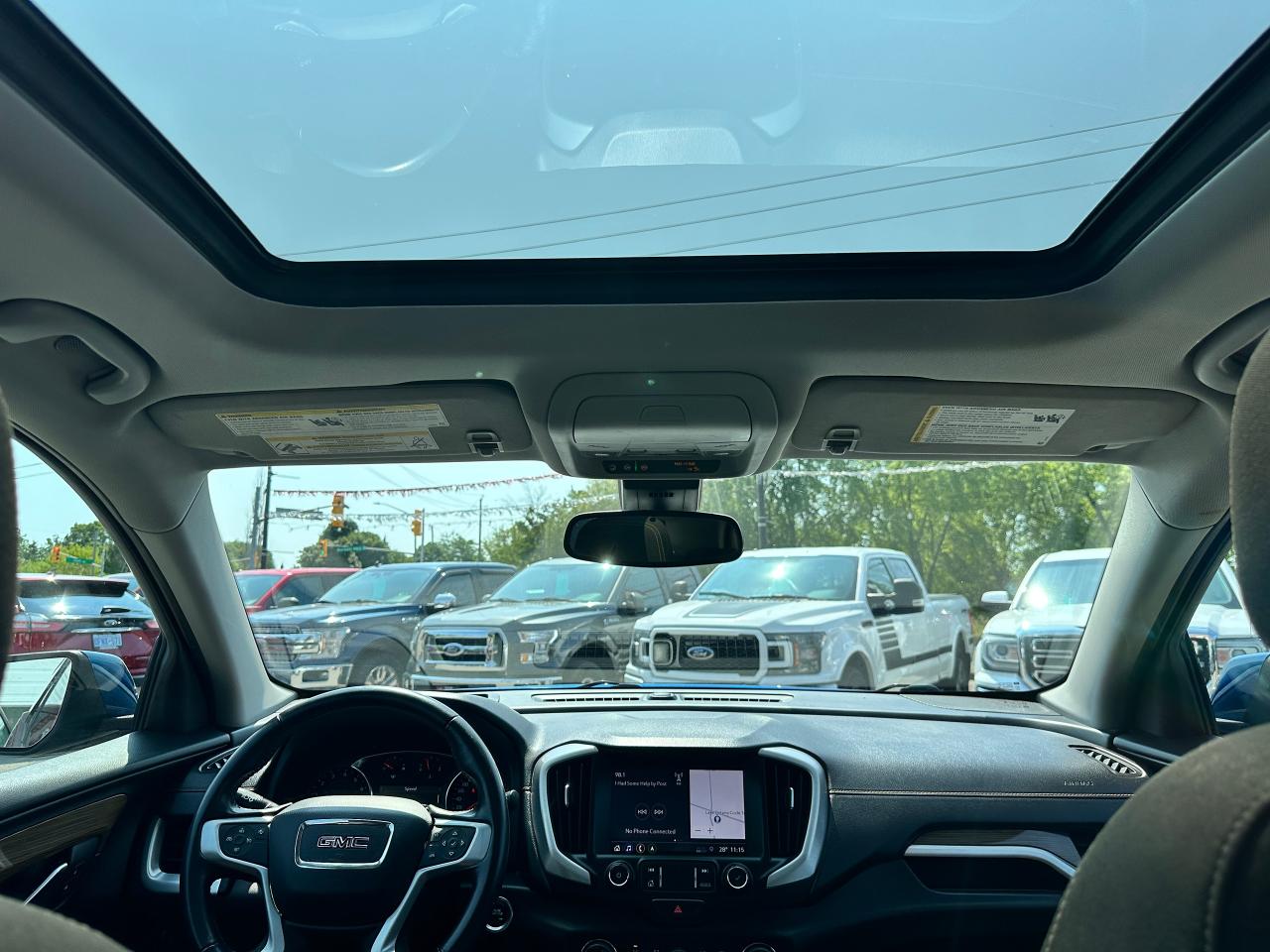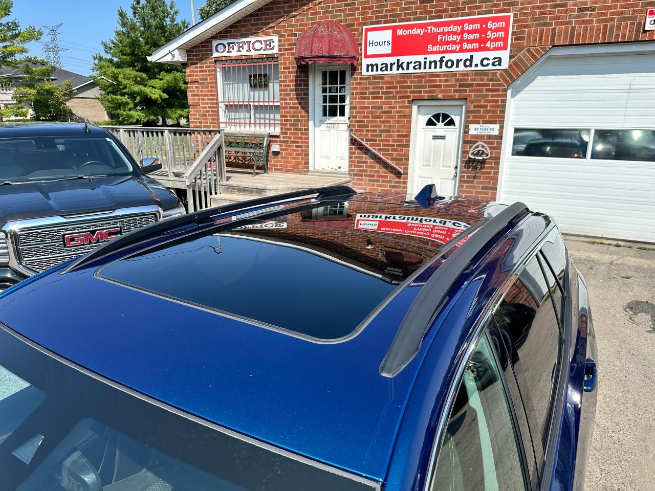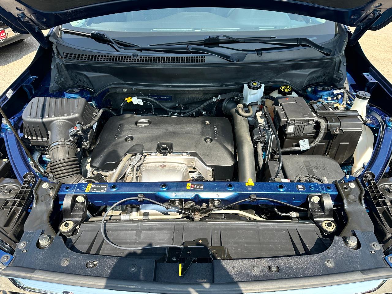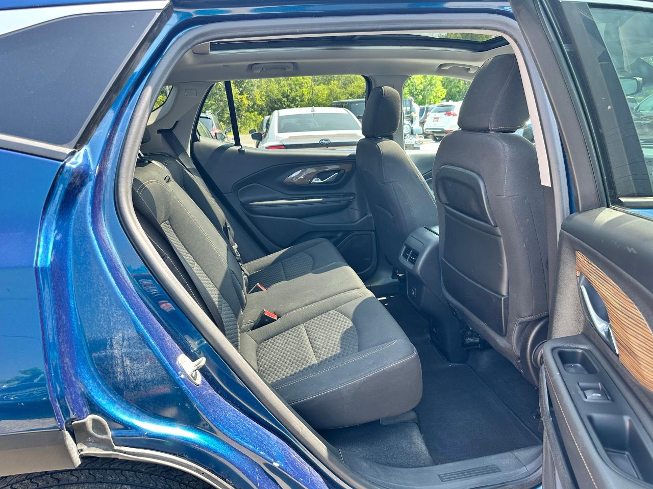 Super-Clean Local ONE-OWNER GMC Terrain from Bowmanville, ON! This SLE AWD model looks amazing in its beautiful Blue paint and factory alloy wheels, with great options inside and out! The exterior features keyless entry with remote start and proximity keys, automatic headlights, and automatic highbeams, colour-matched side mirrors with integrated turn signals, blind spot monitors, lande departure warning, a HUGE panoramic sunroof, roof rack rails, tinted privacy glass, forward collision warning, stepsides, trailer hitch, sporty dual rear exhaust, sleek rear spoiler, a peppy fuel efficient 2.0L 4-cylinder Engine and Automatic transmission powering the All-Wheel-Drive System! The interior is clean and comfortable with heated cloth seats with driver's power adjustment and lumbar controls, power door locks, windows and mirrors, a leather wrapped steering wheel with Audio and Cruise controls, push button start, an easy to read and use gauge cluster, a large central touch screen AM/FM/XM Satellite radio with Blueooth, Navigation, Apple CarPlay and Android Auto, and Backup Camera, Dual-Zone A/C climate control with front and rear window defrost settings, push button gear selection, USB/USB-C/AUX/12V/SD accessory ports and more!