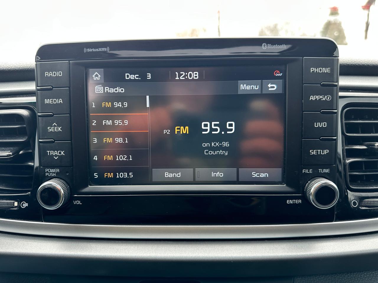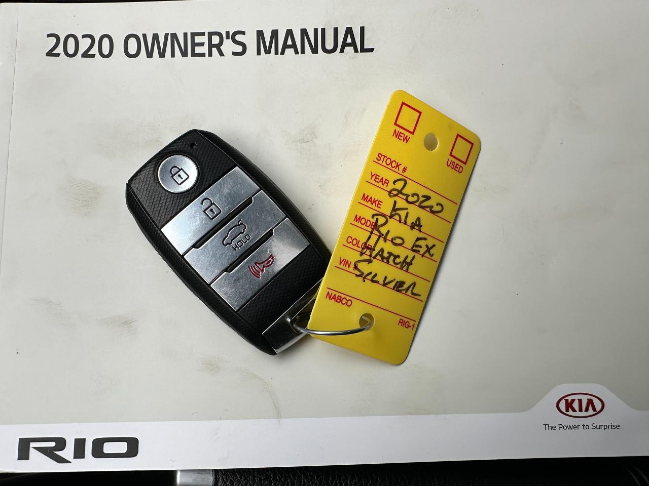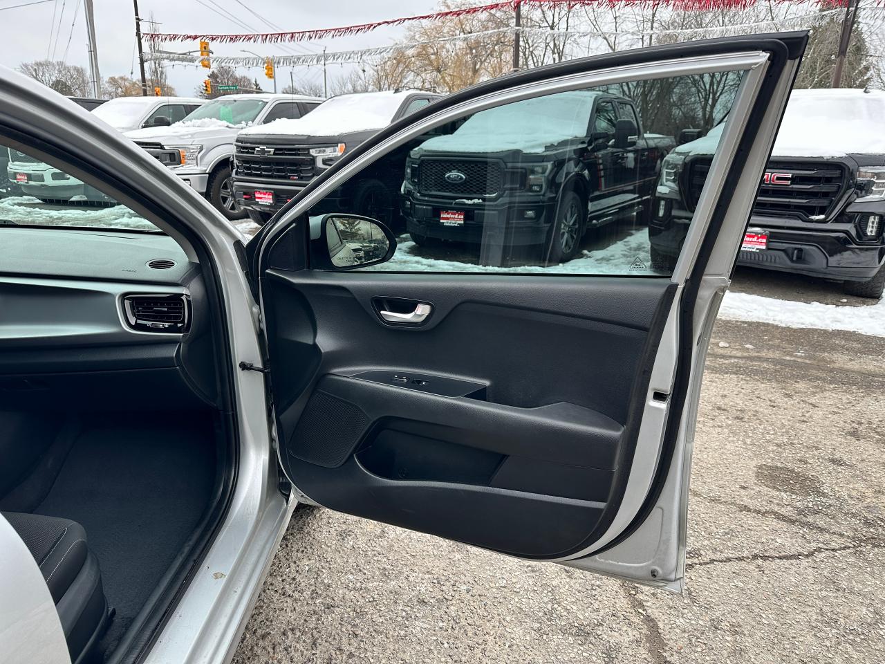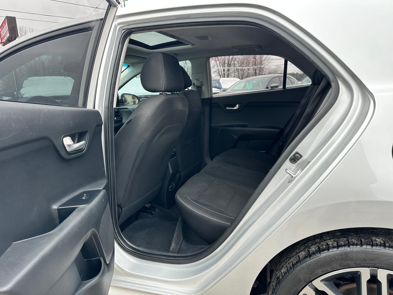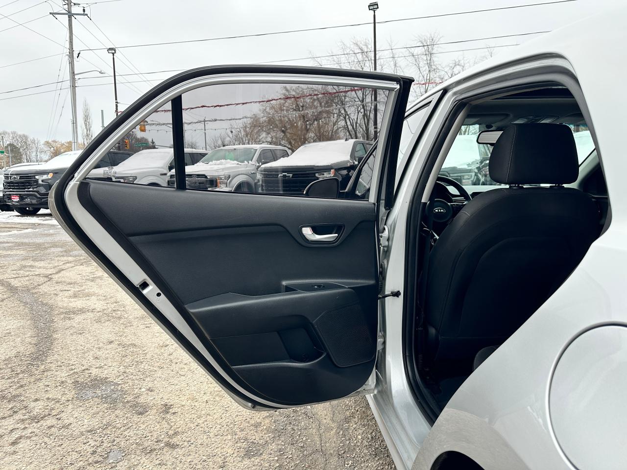 Super-Clean Kia Rio from Cambridge, ON! This EX Hatchback model looks fantastic in its Silver paint and factory alloy wheels, with nice options inside and out! The exterior features keyless entry with a proximity key, automatic headlights, foglights, a factory power sunroof, colour-matched side mirrors with integrated turn signals, tinted privacy glass, a sleek rear spoiler, gorgeous split spoke factory alloy wheels, a fuel-efficient 1.6L 4-cylinder Engine and CVT Auto Transmission! The interior is clean and comfortable with heated cloth front seats, comfortable rear seating and a fair-sized cargo area with a privacy cover, power door locks, windows and mirrors, a heated leather wrapped steering wheel with Audio and Cruise controls, push button start, an easy-to-read and use gauge cluster, a central touch screen AM/FM/XM Satellite Radio with Bluetooth, Apple CarPlay, Android Auto, MP3 Settings and a Backup Camera, A/C climate controls with front and rear window defrost settings, USB/AUX/12V accessory ports and more!