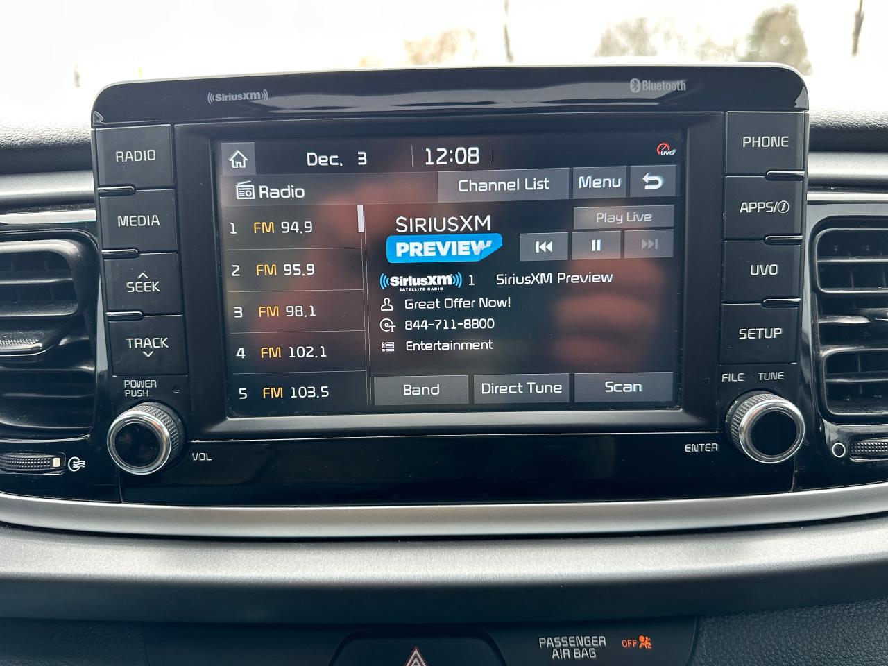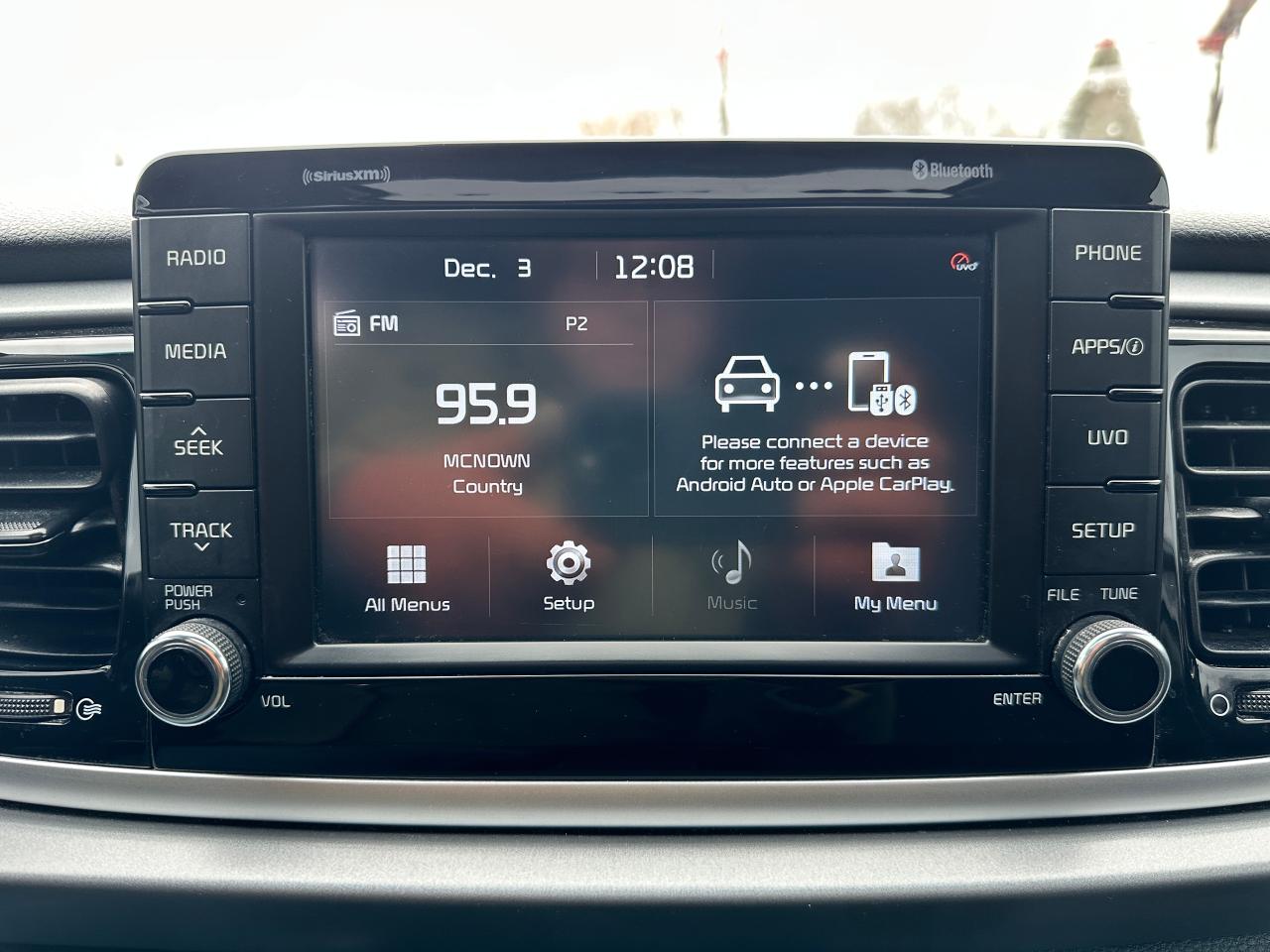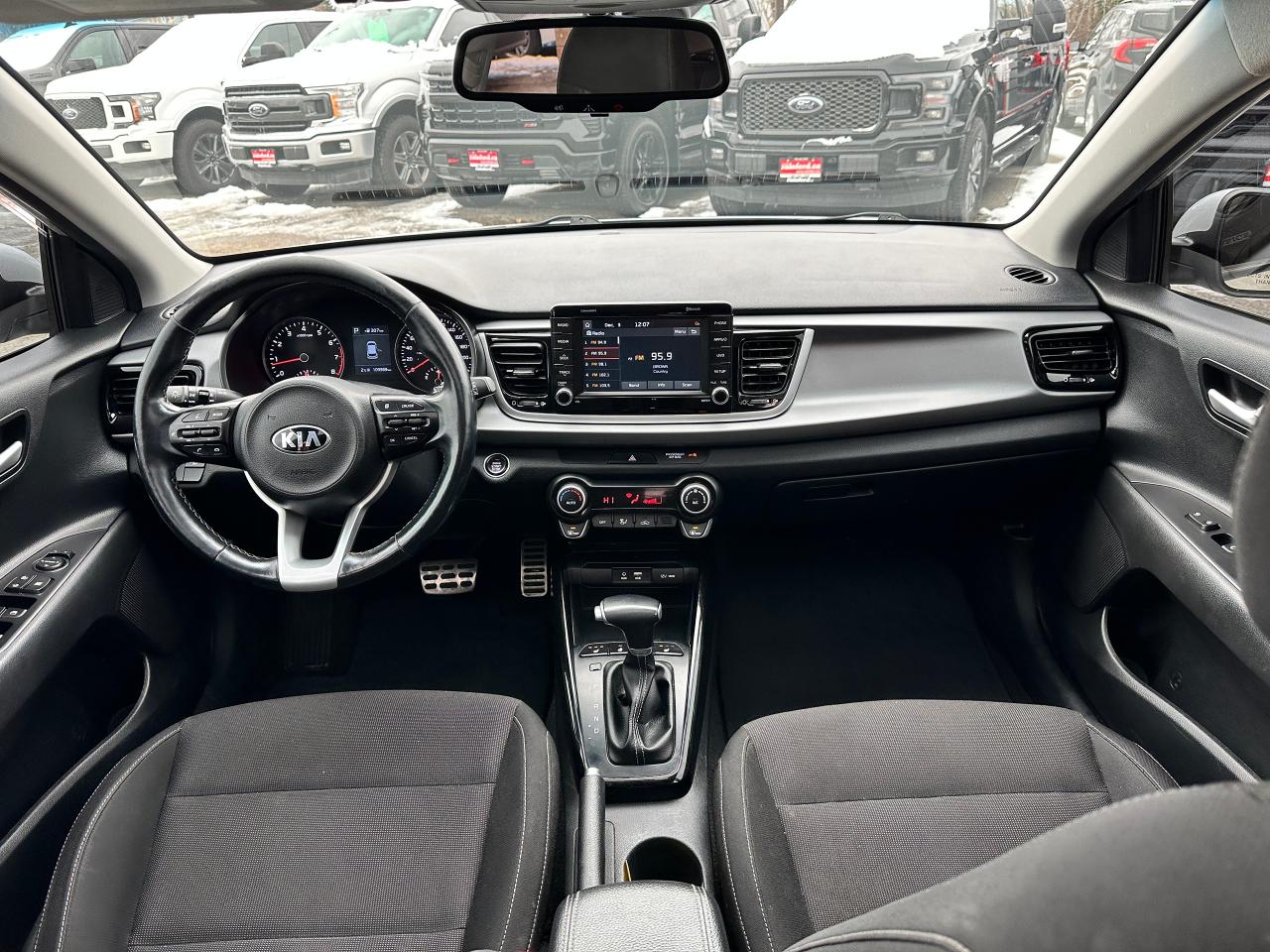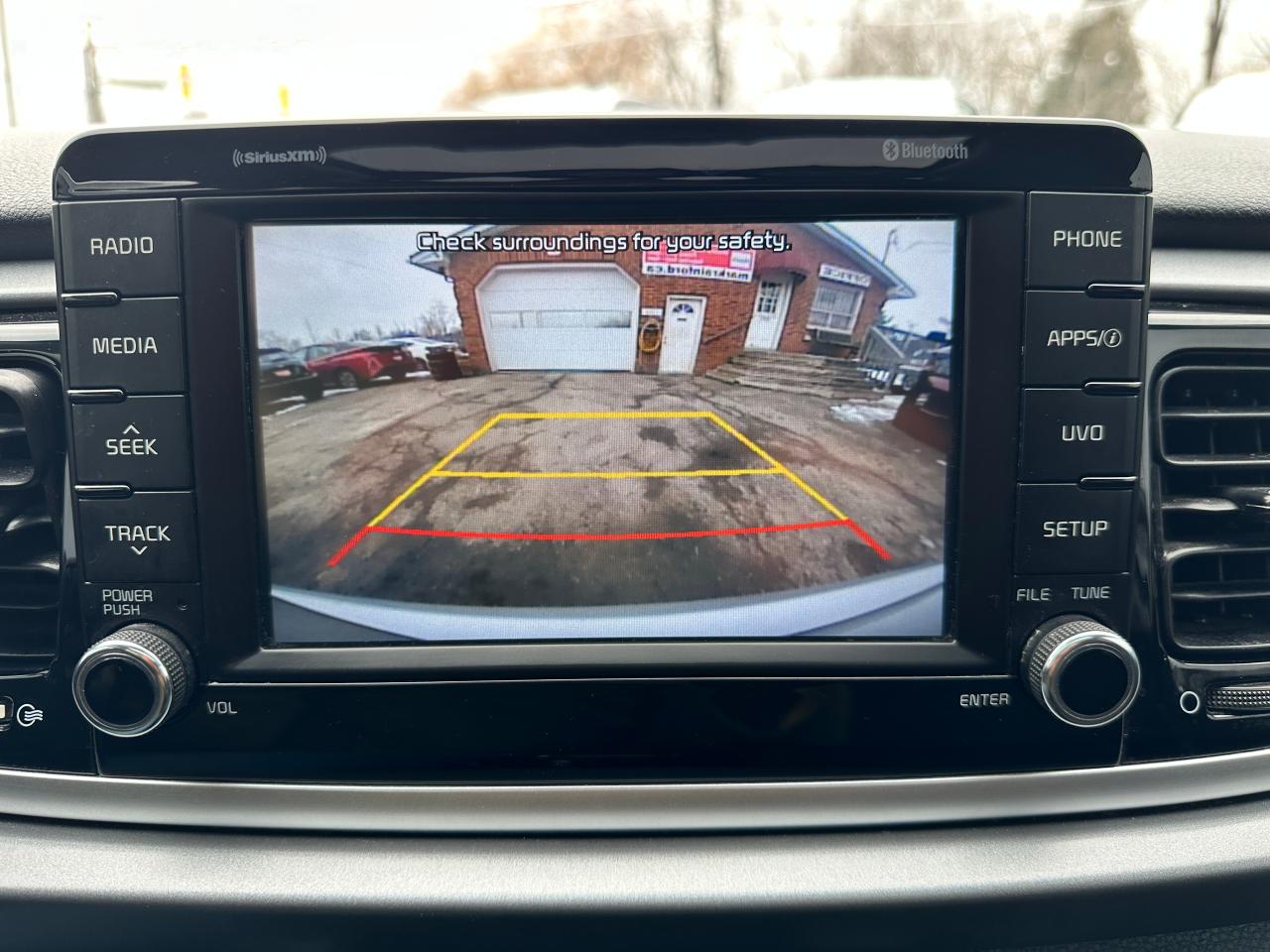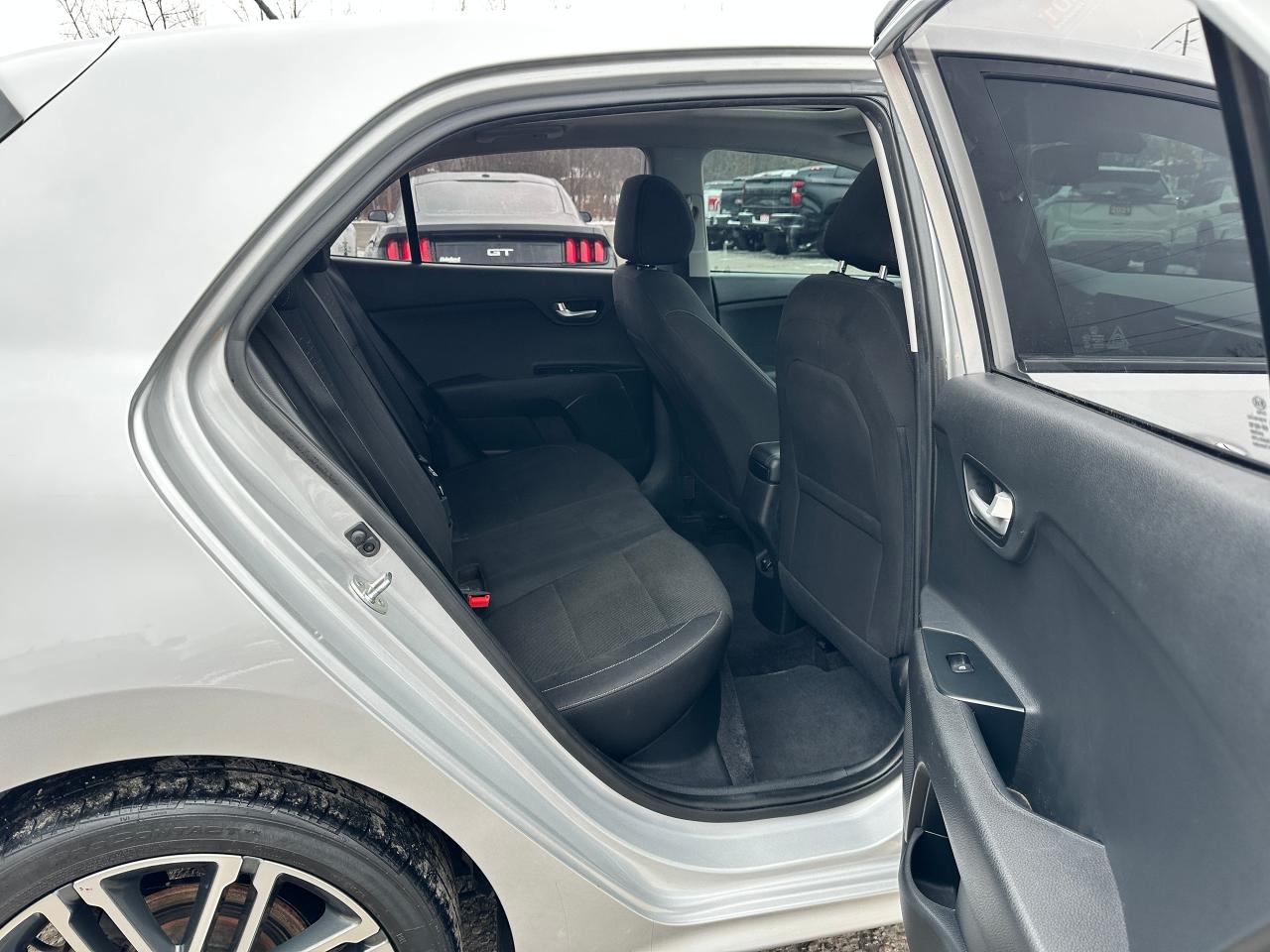Super-Clean Kia Rio from Cambridge, ON! This EX Hatchback model looks fantastic in its Silver paint and factory alloy wheels, with nice options inside and out! The exterior features keyless entry with a proximity key, automatic headlights, foglights, a factory power sunroof, colour-matched side mirrors with integrated turn signals, tinted privacy glass, a sleek rear spoiler, gorgeous split spoke factory alloy wheels, a fuel-efficient 1.6L 4-cylinder Engine and CVT Auto Transmission! The interior is clean and comfortable with heated cloth front seats, comfortable rear seating and a fair-sized cargo area with a privacy cover, power door locks, windows and mirrors, a heated leather wrapped steering wheel with Audio and Cruise controls, push button start, an easy-to-read and use gauge cluster, a central touch screen AM/FM/XM Satellite Radio with Bluetooth, Apple CarPlay, Android Auto, MP3 Settings and a Backup Camera, A/C climate controls with front and rear window defrost settings, USB/AUX/12V accessory ports and more!