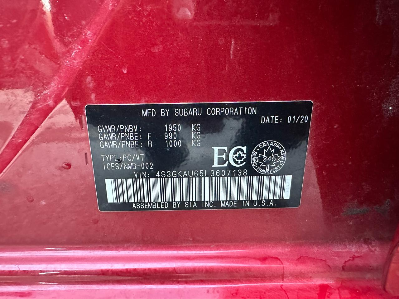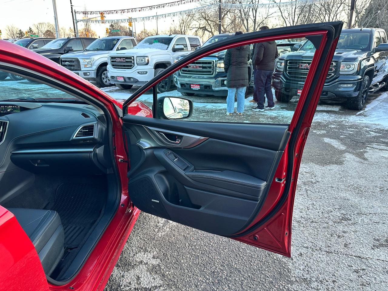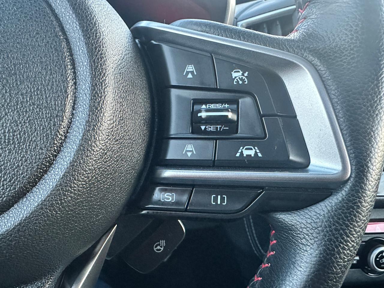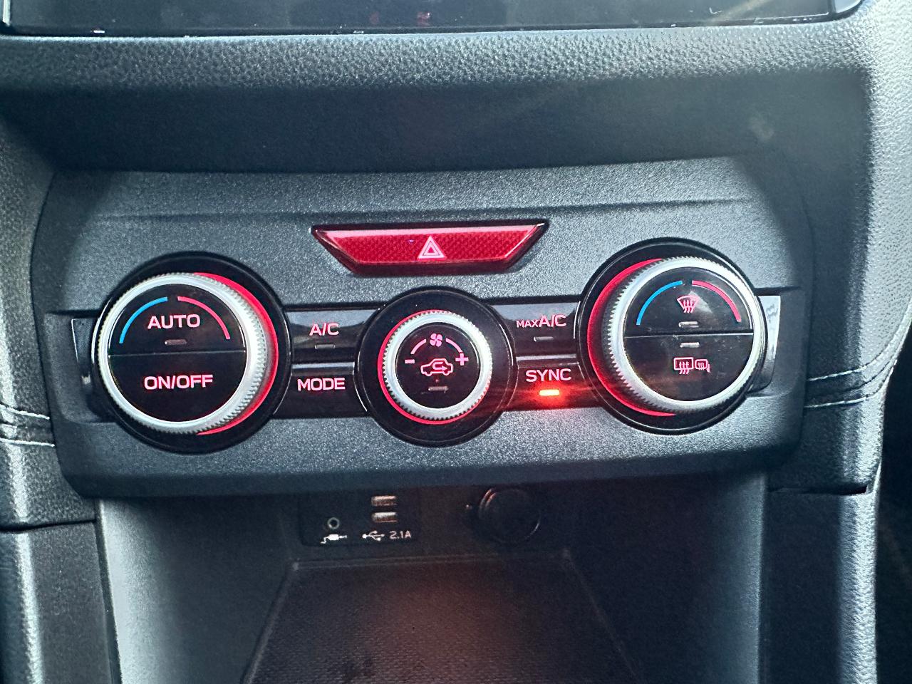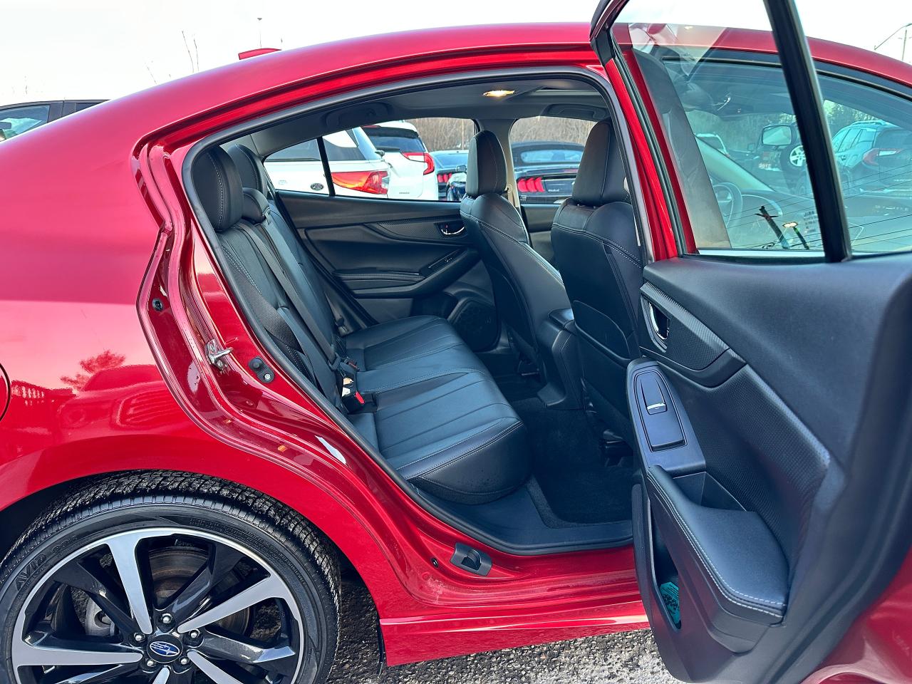 WOW! Super-Clean, Ultra-Low KM Subaru Impreza from Kingston, ON! This Sport-Tech AWD model looks incredible in its bright Red paint and factory alloy wheels, with fantastic options inside and out! The exterior features keyless entry with proximity key and remote trunk release, a large factory power sunroof, colour-matched heated side mirrors with integrated turn signals, automatic headlights, foglights, Steering Responsive Headlights, driver assist settings including lane departure warning, forward collision warning, blind spot warning and rear automatic braking/parking sensors, and adaptive cruise controls, a sleek rear spoiler, gorgeous factory machine finished alloy wheels, and a peppy fuel efficient 2.0L 4-Cylinder Boxer Engine and CVT auto transmission powering the All-Wheel-Drive system! The interior is clean and comfortable, with heated leather front seats with driver's power adjustment, power door locks, windows and mirrors, leather trimmings throughout, a heated leather wrapped steering wheel with red accent stitching, Audio and Cruise controls, an easy-to-read and use gauge cluster, push button start, a large central touch screen AM/FM/XM Satellite HD Radio with Harman Kardon Premium Audio System, Subaru Starlink, Apple CarPlay, Android Auto, Navigation, Backup Camera and CD Player, Dual-Zone A/C climate controls with front and rear window defrost settings, USB/AUX/12V accessory ports, and more!