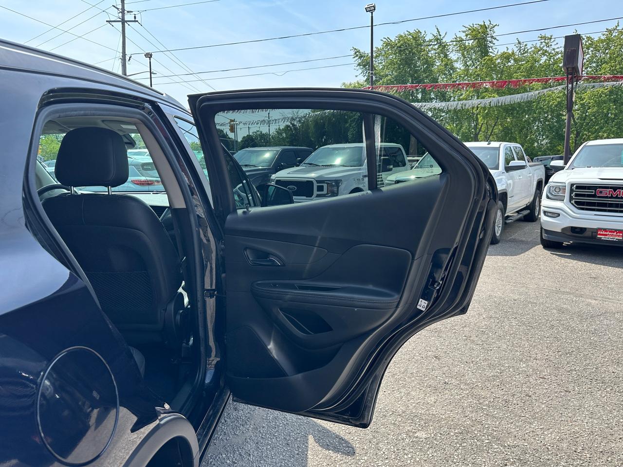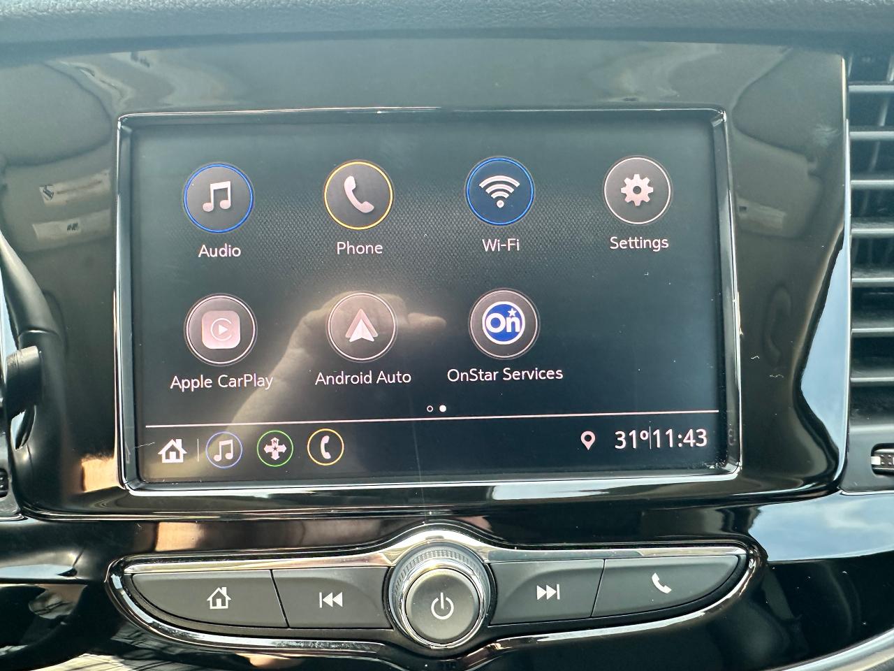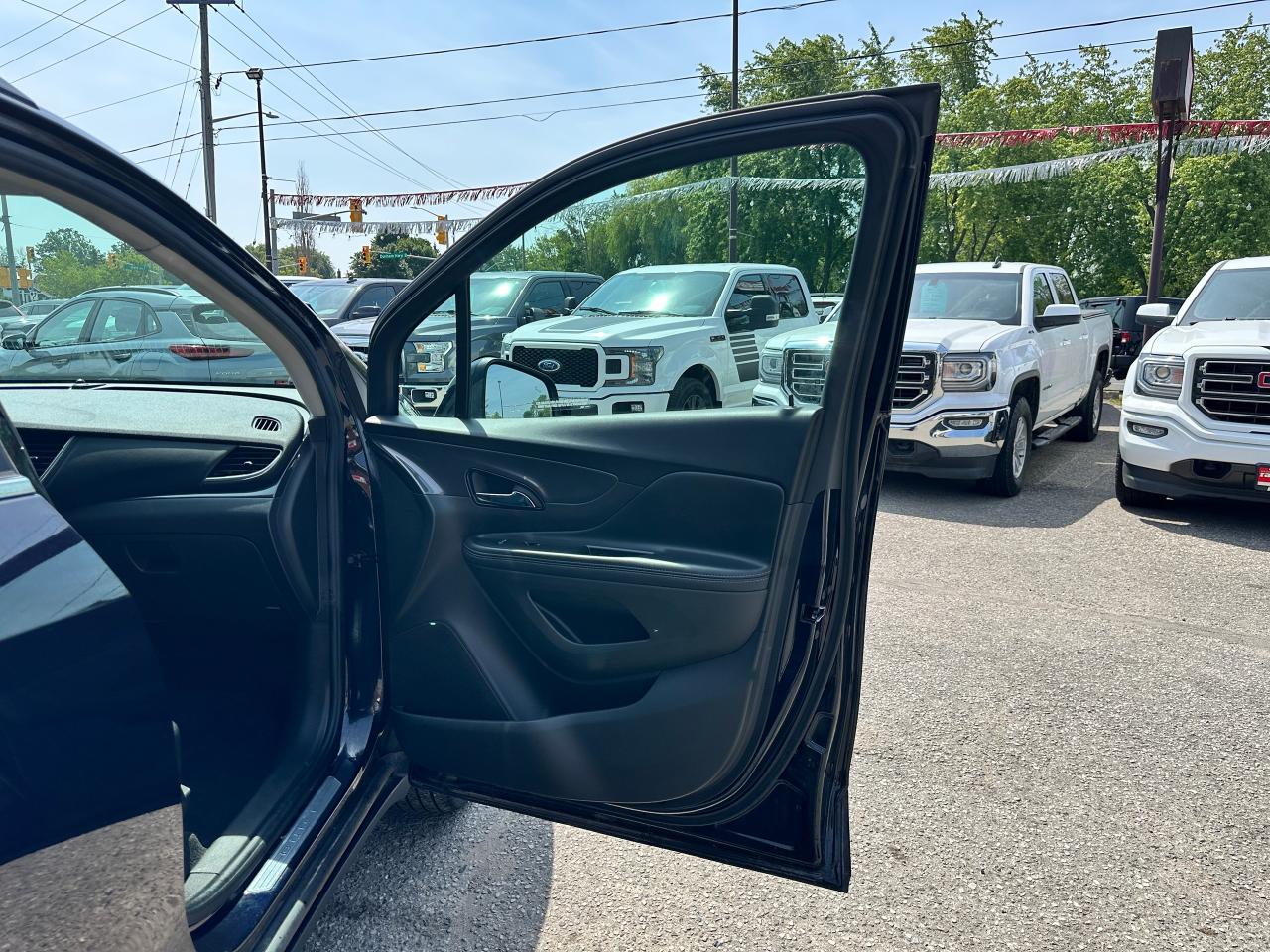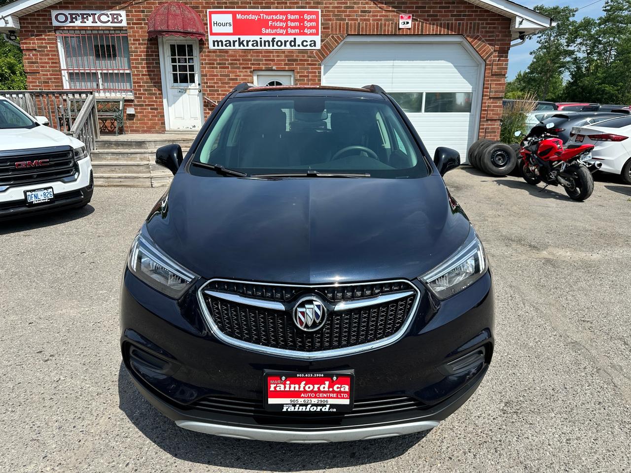 Stunning Super-Clean, LOW-KM Buick Encore from Kanata, ON! This Preferred AWD model looks amazing in its Dark Blue paint and factory alloy wheels, with convenient features inside and out! The exterior features keyless entry with remote start and proximity key, automatic headlights, roof rack rails, tinted privacy glass, blind spot monitor, a sleek rear spoiler, gorgeous machine-finished factory alloy wheels, a peppy fuel-efficient 1.4L 4-cylinder Turbocharged Engine and Automatic transmission power the All-Wheel-Drive system! The interior is clean and comfortable with cloth seating for all 5 occupants, driver's power adjustment with lumbar control, power door locks, windows and mirrors, comfortable rear seating and a spacious cargo area with privacy cover, a leather wrapped steering wheel with Audio and cruise controls, an easy to read and use guage cluster, push button start, a large central touch screen AM/FM/XM Satellite Radio with Bluetooth, Apple CarPlay, Android Auto, WiFi and OnStar Settings, along with a Backup Camera to make parking a breeze, A/C climate control with front and rear window defrost settings, USB/AUX/12V accessory ports, and more!