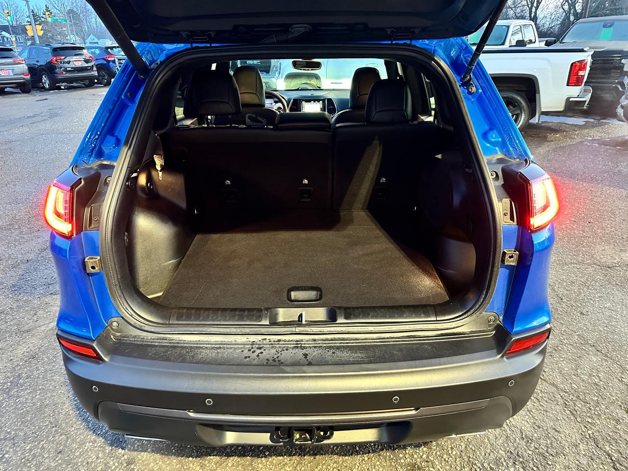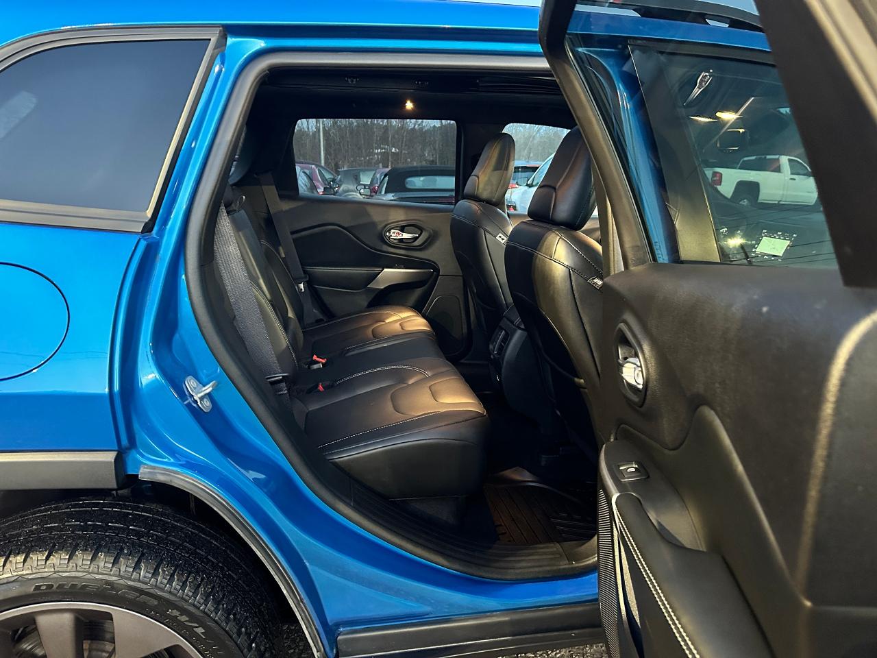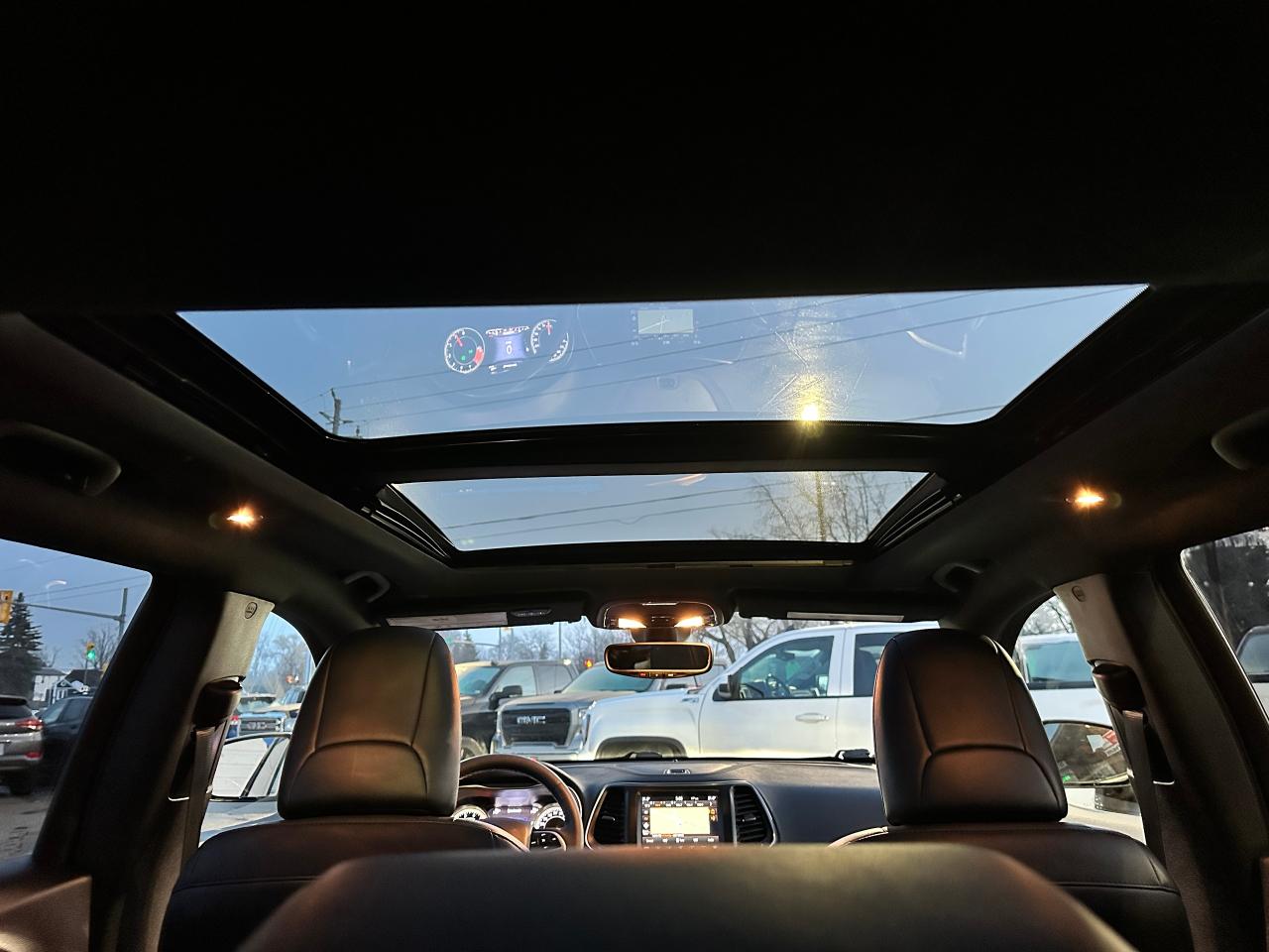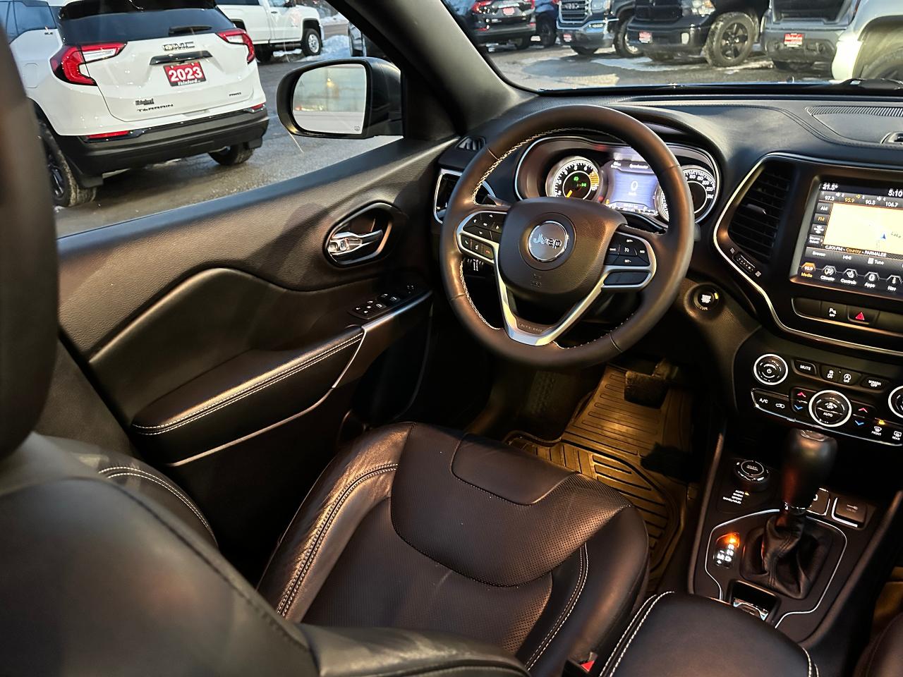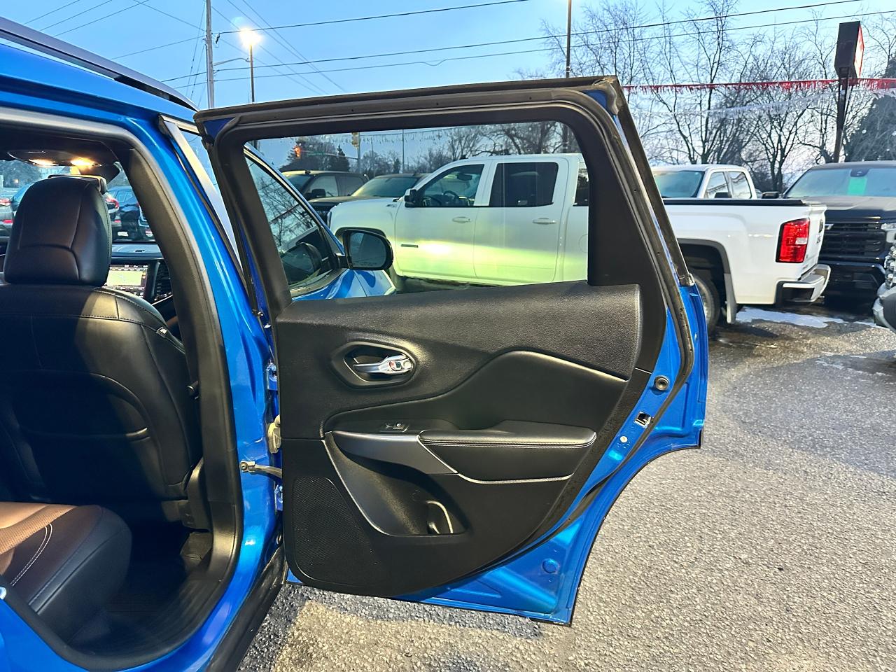 Super-Clean and well-equipped Jeep Cherokee from Paris, ON! This 80th Anniversary Edition 4x4 model looks incredible in its Blue paint and dark Factory Alloy wheels with nice options inside and out! The exterior features keyless entry with proximity keys, remote start and remote power rear liftgate, a huge Panoramic Sunroof, automatic headlights, foglights, roof rack rails, tinted privacy glass, a sleek rear spoiler, rear parking sensors, blind spot monitors, a trailer hitch, gorgeous dark factory split spoke alloy wheels, a powerful 3.2L V6 Engine and Automatic transmission driving the 4x4 system! The interior is clean and comfortable with heated leather front seats with power adjustment and lumbar controls, power door locks, windows and mirrors, a spacious cargo area and roomy rear seating, a heated leather wrapped steering wheel with Audio and Cruise controls, push button start, an easy to read and use gauge cluster, a large central touch screen AM/FM/XM Satellite HD Radio with Bluetooth, Navigation, Apple CarPlay, Android Auto, WiFi Settings, MP3 and Backup Camera, Dual-Zone A/C climate controls with front and rear window defrost settings, Auto-Stop/Start Override, Multiple Drive/Terrain modes, USB/AUX/12V accessory ports, universal garage door openers and more!\