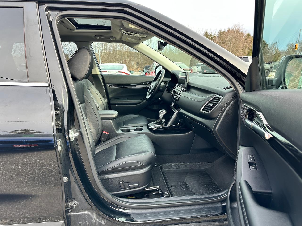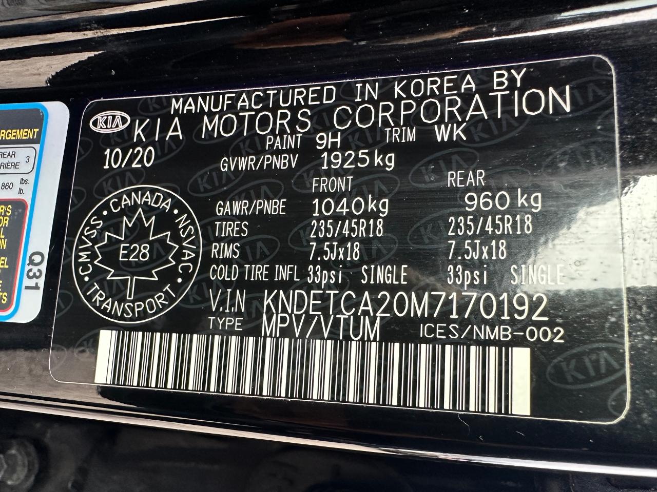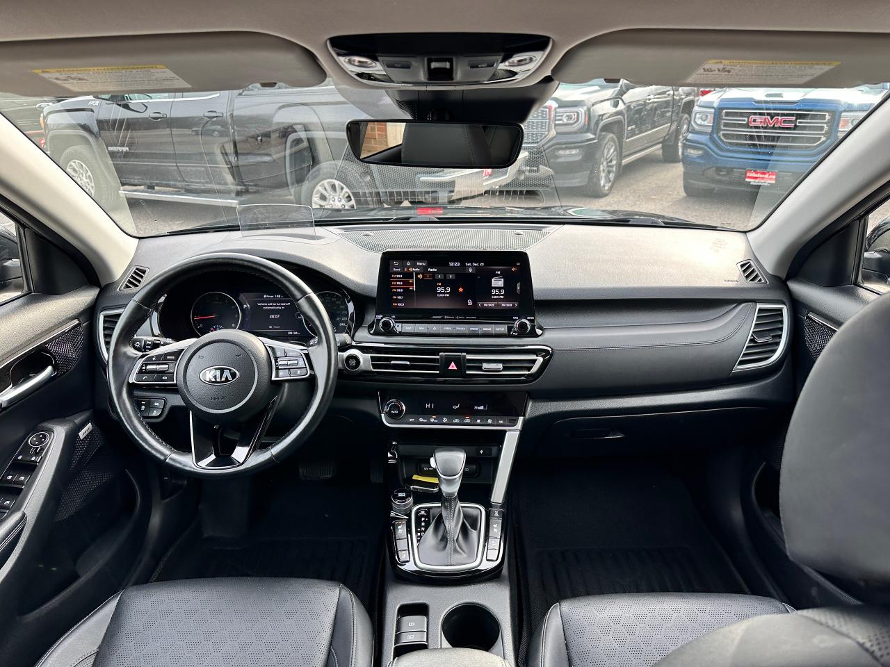 Ultra-Clean, One Owner Kia Seltos from Carleton Place, ON! This SX-Turbo AWD model looks incredible in its Black paint and factory alloy wheels with amazing options inside and out! The exterior features keyless entry with remote start and proximity key, automatic headlights, automatic highbeams, foglights, colour-matched side mirrors with integrated turn signals, tinted privacy glass, roof rack rails, lane keeping assist, adaptivecruise and forward warnings, blind spot monitors, a sleek rear spoiler, absolutely stunning machine-finished factory alloy wheels, a peppy fuel-efficient 1.6L Turbocharged 4-cylinder Engine and Automatic Transmission powering the All-Wheel-Drive system! The interior is clean and comfortable with heated and cooled front leather seats with power adjustment and drivers lumbar control, heated rear leather seats, all weather floor mats and a large rear cargo area with privacy shade, drivers heads up display, power door locks, mirrors and windows, a heated leather-wrapped steering wheel with Audio and Cruise controls, an easy to read and use guage cluster, showing multiple drive modes, a large central touch screen AM/FM/XM Satellite HD Radio with BOSE Premium Audio, Bluetooth, Navigation, Apple CarPlay, Android Auto, and Backup Camera, A/C climate controls with front and rear window defrost settings, hill descent assist, USB/12V accessory ports and more!