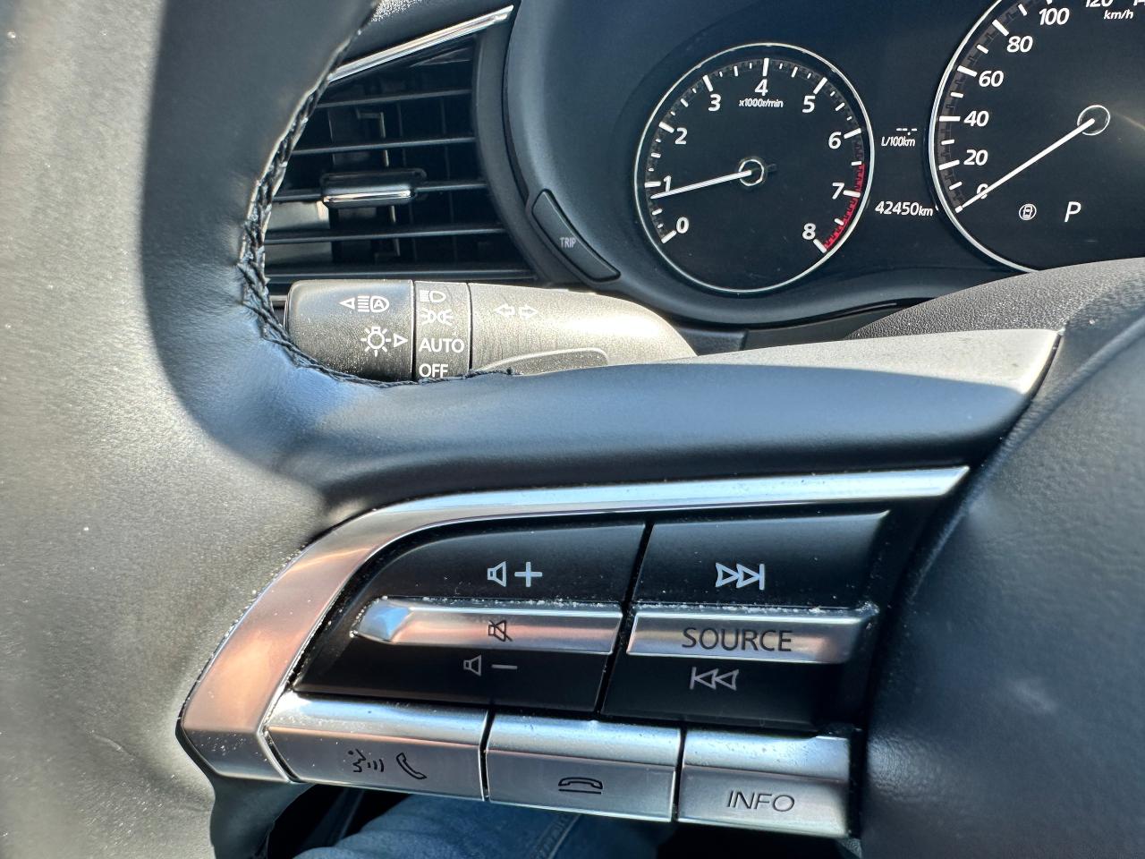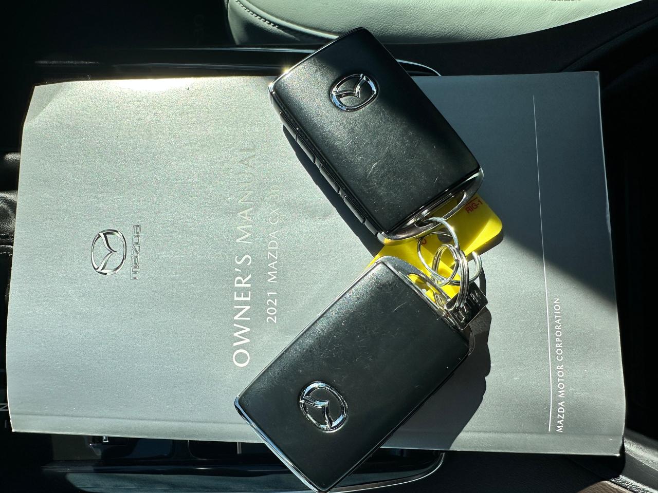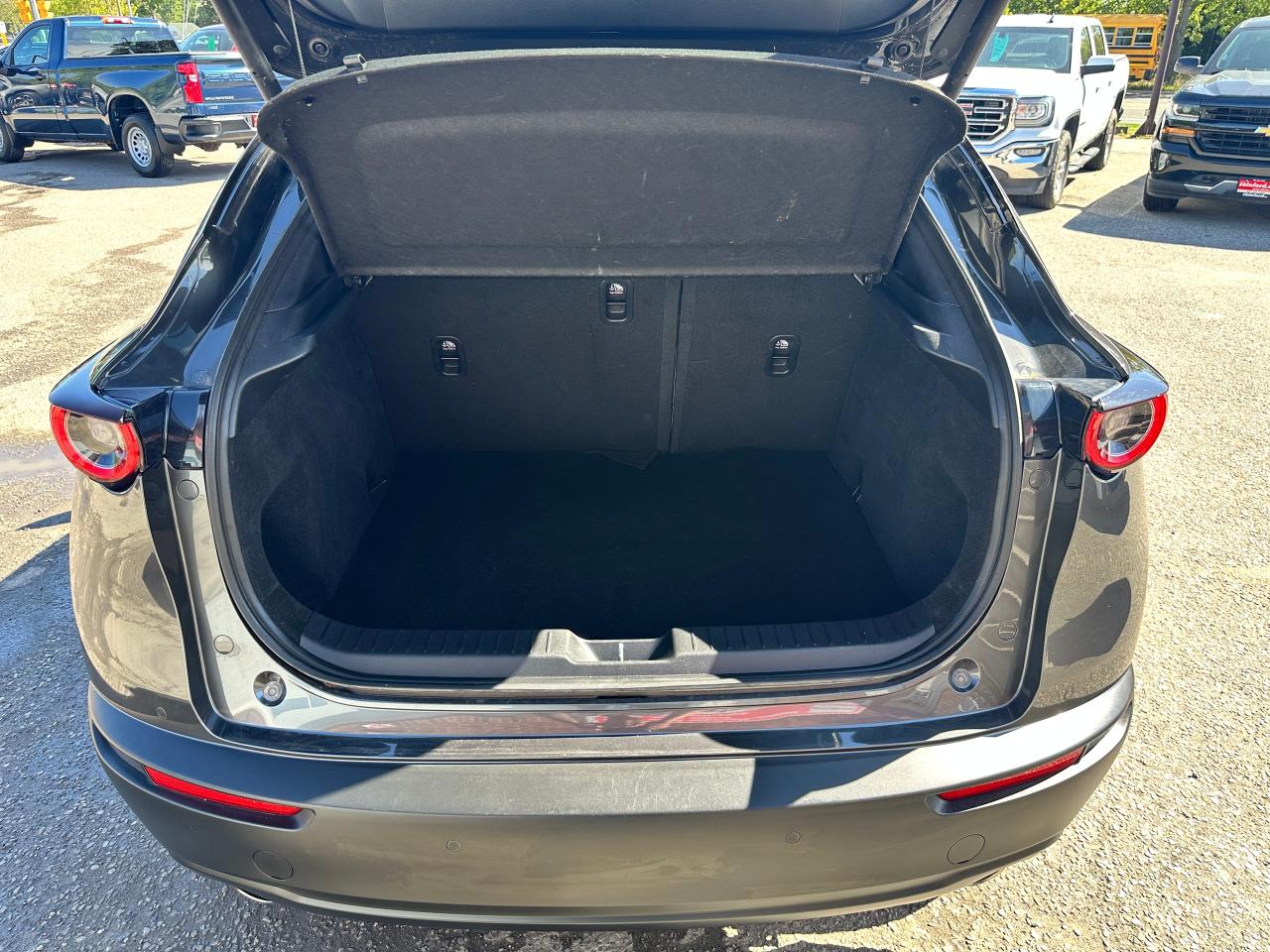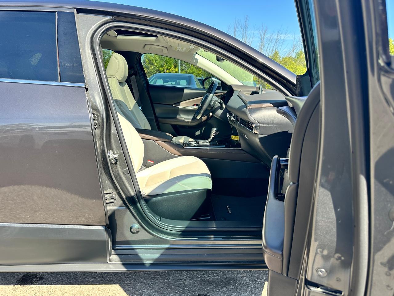 WOW! Super-Clean Mazda CX-30 from Kingston, ON! This GT AWD model looks absolutely stunning in its Grey paint and factory alloy wheels, with amazing options and styling! The exterior features keyless entry, automatic headlights and high beams, a factory power sunroof, colour-matched side mirrors with integrated turn signals, tinted privacy glass, a sporty dual rear exhaust, forward collision warning and adaptive cruise settings, lane departure warning, parking sensors, gorgeous factory split spoke dark alloy wheels, a peppy fuel-efficient 2.5L 4-cylinder Engine and Automatic transmission powering the All-Wheel-Drive system! The interior is clean and comfortable with heated leather front seats with driver's power adjustment, lumbar control and memory settings, power door locks, windows and mirrors, a heated leather wrapped steering wheel with Audio and Cruise controls, an easy to read and use gauge cluster, push button start, central AM/FM/XM Satellite HD Radio with Bluetooth, Navigation, Apple CarPlay, Android Auto, and Backup Camera, Dual-Zone A/C climate control with front and rear window defrosts settings, USB/12V accessory ports, Terrain assist, SPORT Driving mode, and more!