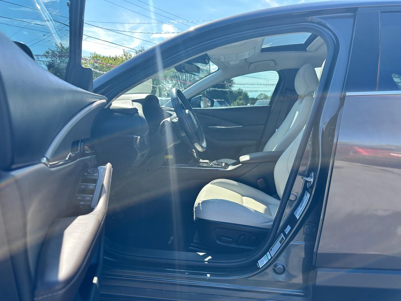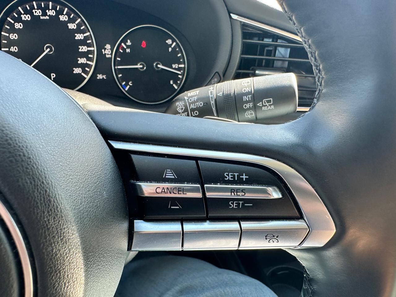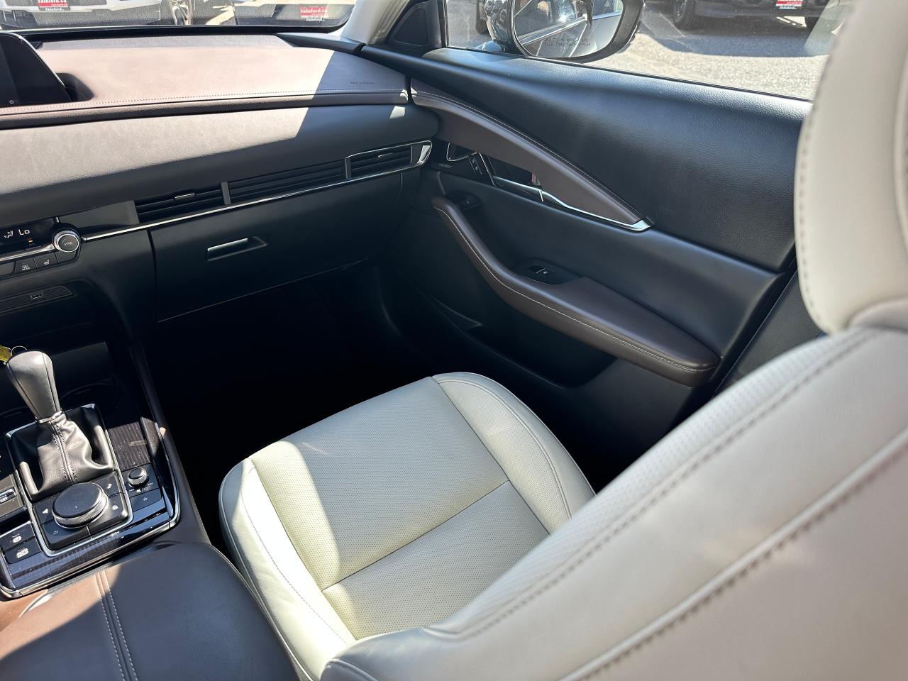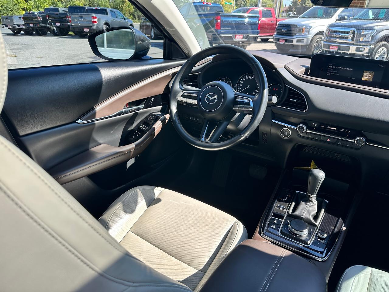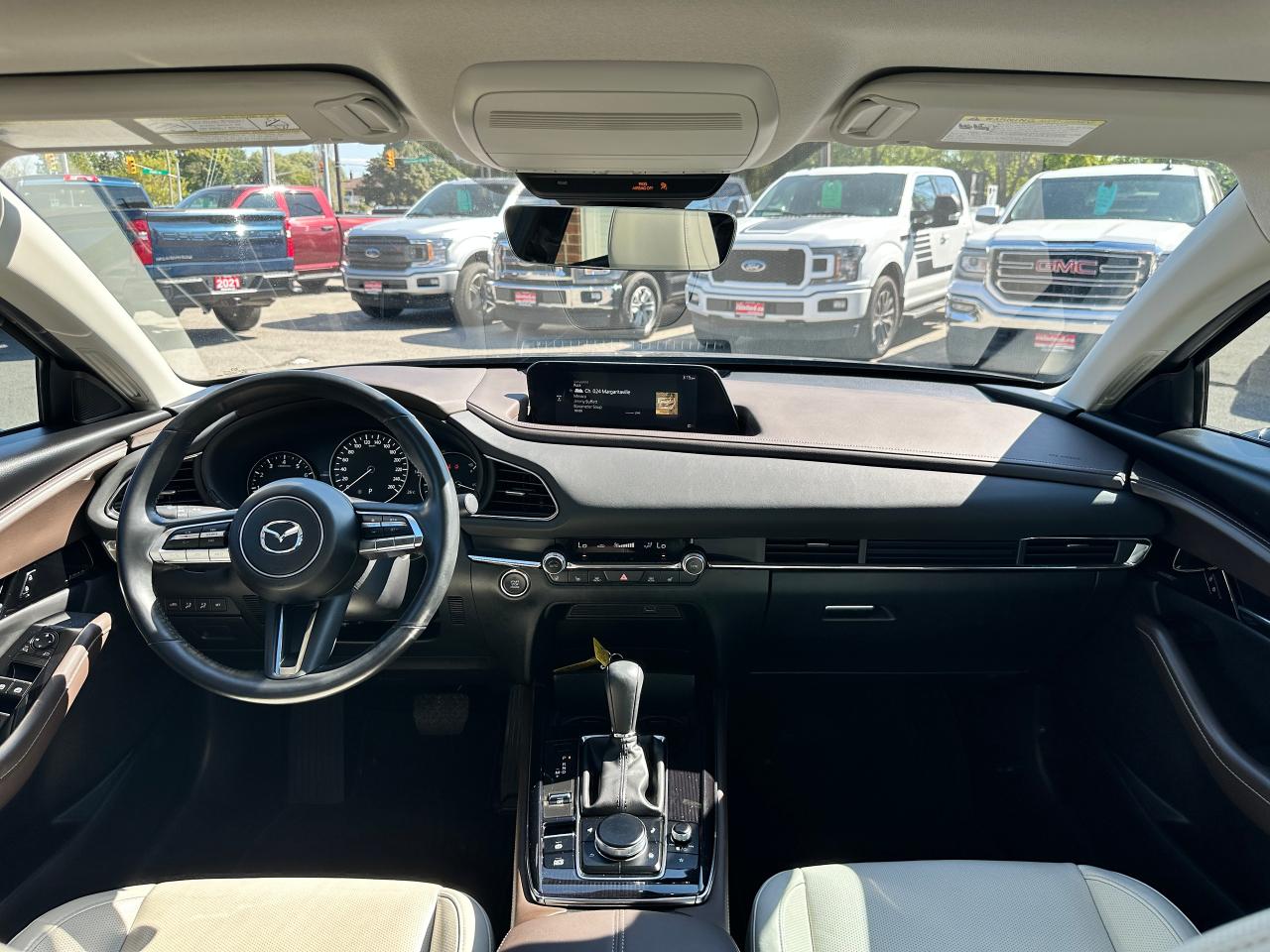 WOW! Super-Clean Mazda CX-30 from Kingston, ON! This GT AWD model looks absolutely stunning in its Grey paint and factory alloy wheels, with amazing options and styling! The exterior features keyless entry, automatic headlights and high beams, a factory power sunroof, colour-matched side mirrors with integrated turn signals, tinted privacy glass, a sporty dual rear exhaust, forward collision warning and adaptive cruise settings, lane departure warning, parking sensors, gorgeous factory split spoke dark alloy wheels, a peppy fuel-efficient 2.5L 4-cylinder Engine and Automatic transmission powering the All-Wheel-Drive system! The interior is clean and comfortable with heated leather front seats with driver's power adjustment, lumbar control and memory settings, power door locks, windows and mirrors, a heated leather wrapped steering wheel with Audio and Cruise controls, an easy to read and use gauge cluster, push button start, central AM/FM/XM Satellite HD Radio with Bluetooth, Navigation, Apple CarPlay, Android Auto, and Backup Camera, Dual-Zone A/C climate control with front and rear window defrosts settings, USB/12V accessory ports, Terrain assist, SPORT Driving mode, and more!