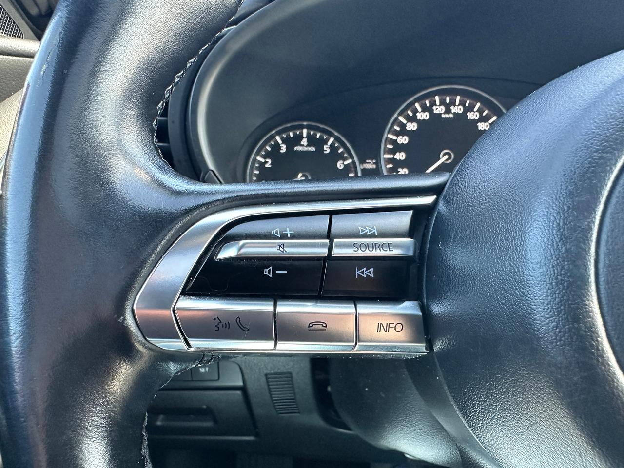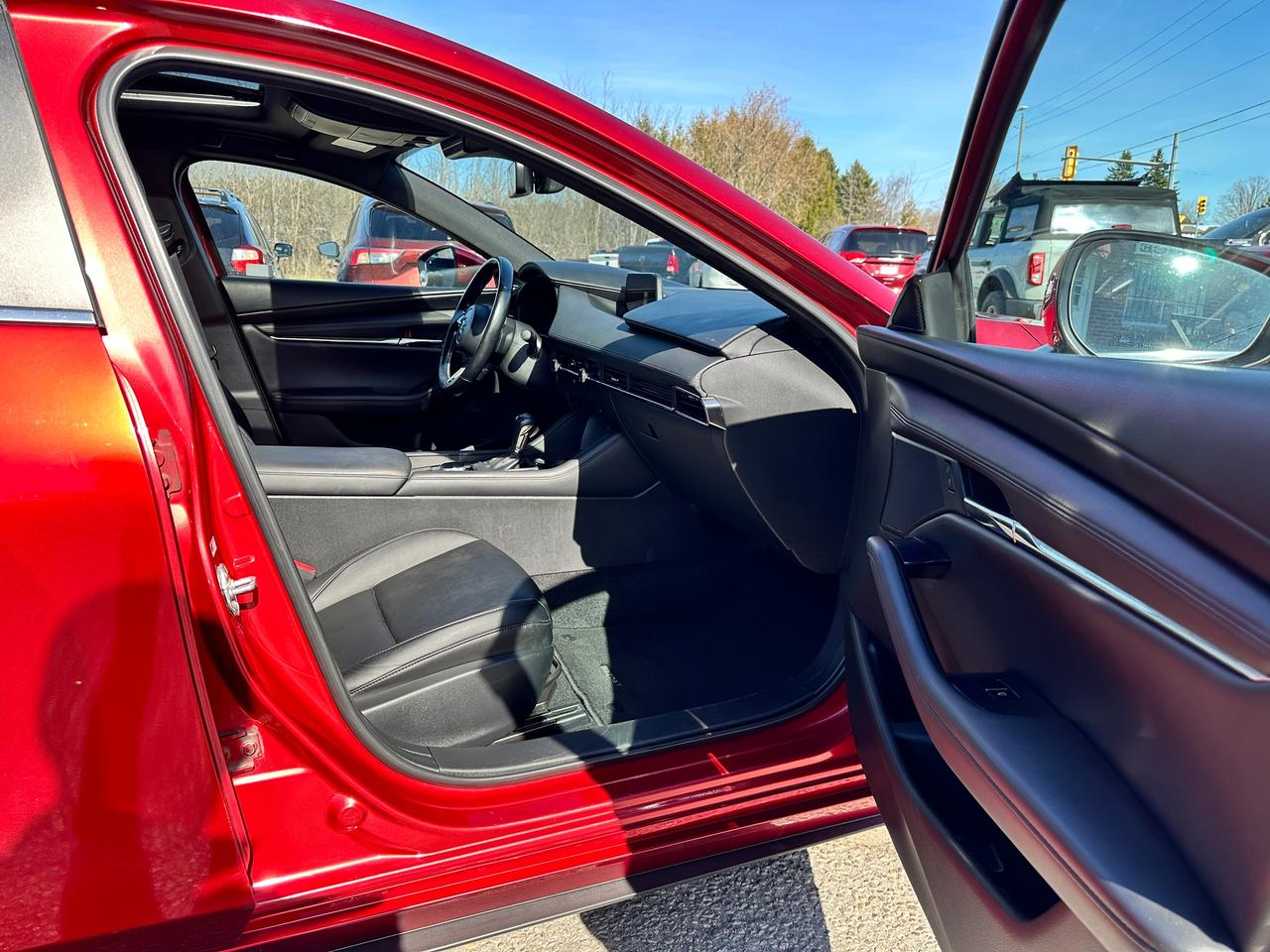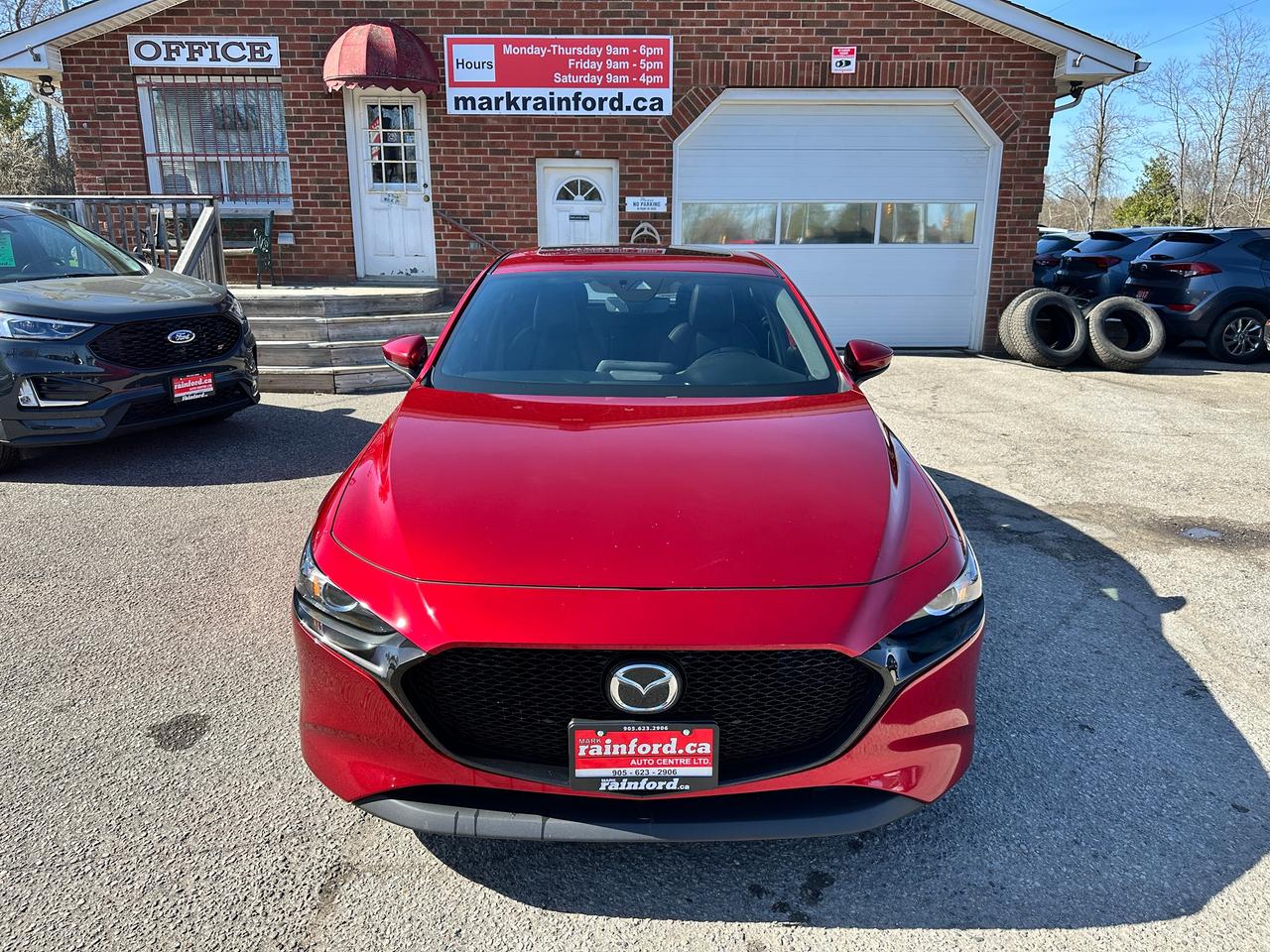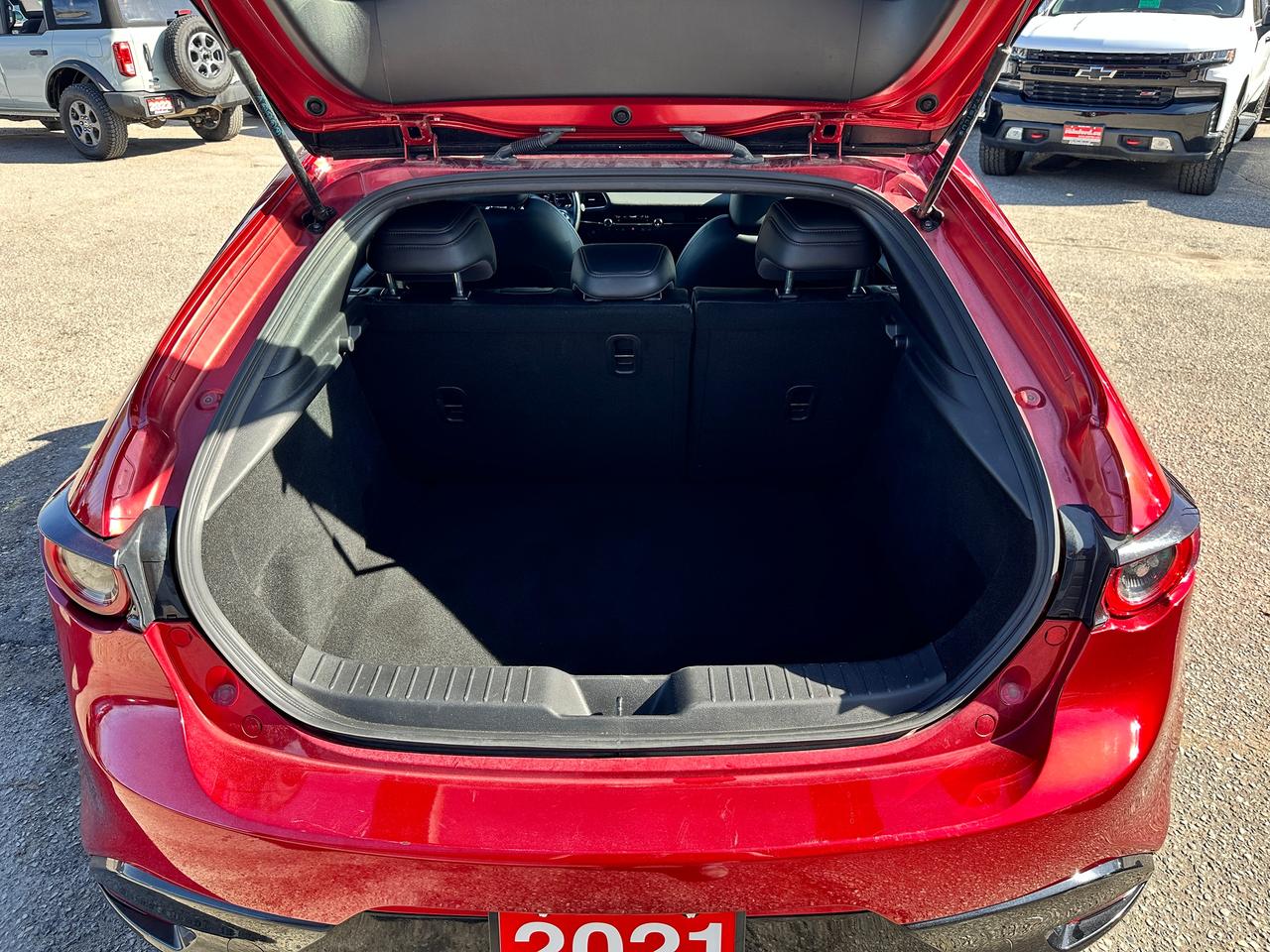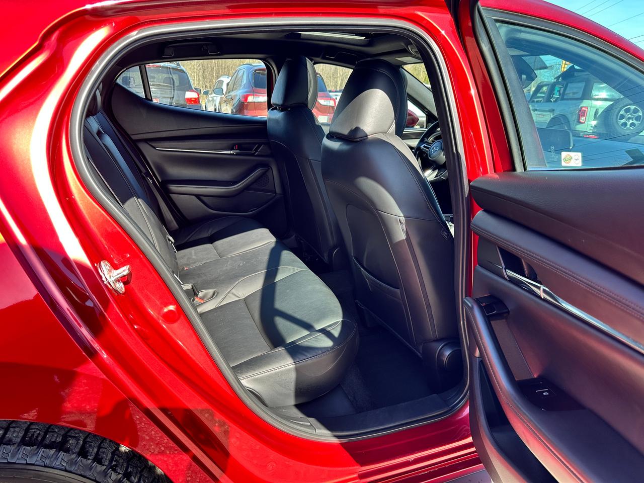Super-Clean, Gorgeous One-Owner Mazda MAZDA3 from Toronto, ON! This GS Sport AWD model looks stunning in its Red paint and factory alloy wheels, with great options inside and out! The exterior features keyless entry, automatic headlights and high beams, a large factory power sunroof, colour-matched side mirrors with integrated turn signals, driver assistance settings including forward collision/adaptive cruise control and blind spot monitors, a sporty dual rear exhaust, a sleek rear spoiler, nice factory alloy wheels, a peppy fuel-efficient 2.5L 4-Cylinder Engine paired to a 6-Speed Automatic transmission and Mazda i-Activ All-Wheel-Drive system! The interior is clean and comfortable with heated leather front seats with driver's power adjustment, lumbar control and memory settings, power door locks, windows and mirrors, comfortable rear seating and a spacious cargo area, a heated leather wrapped steering wheel with Audio and Cruise controls, an easy to read and use gauge cluster, push button start, a large cental AM/FM Radio with Bluetooth, Apple CarPlay, Android Auto, and Backup Camera, with Navigation Capability ready, Dual-Zone A/C climate controls with front and rear window defrost settings, SPORT Driving mode, USB/12V accessory ports, and more!