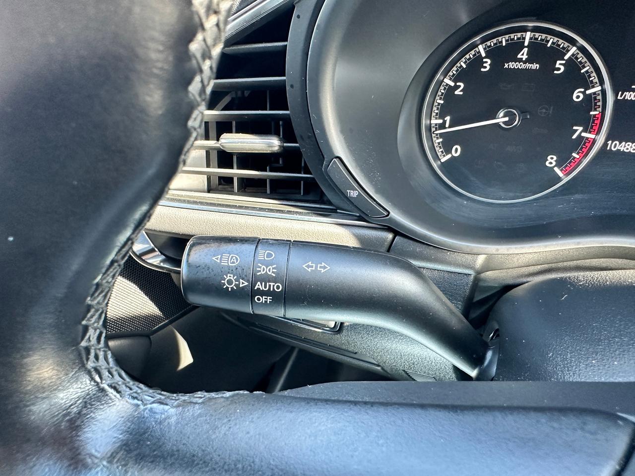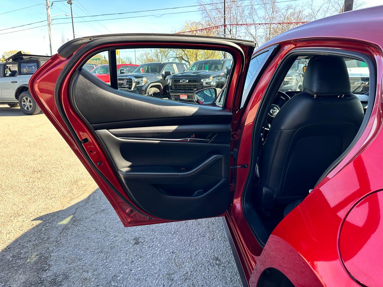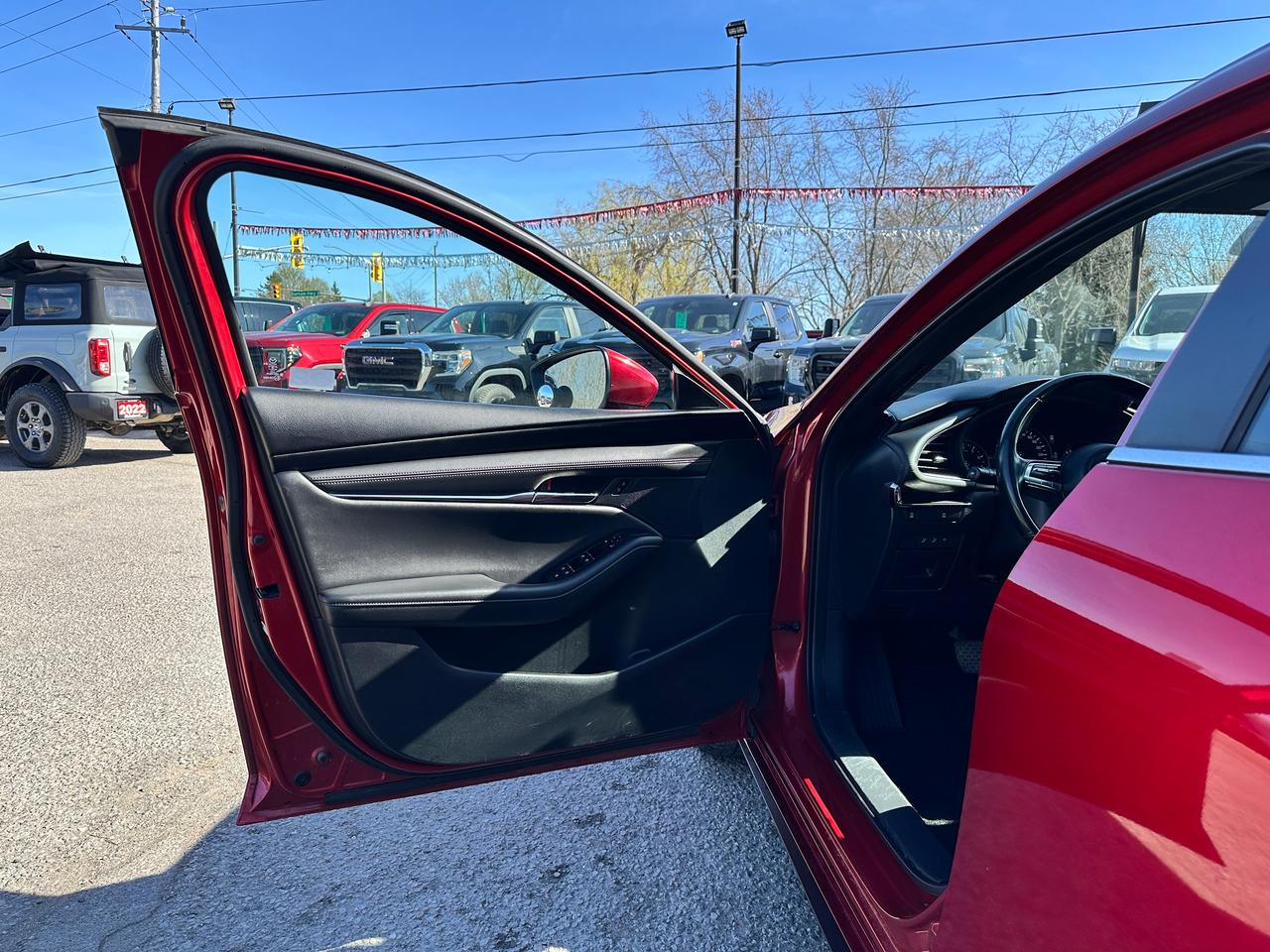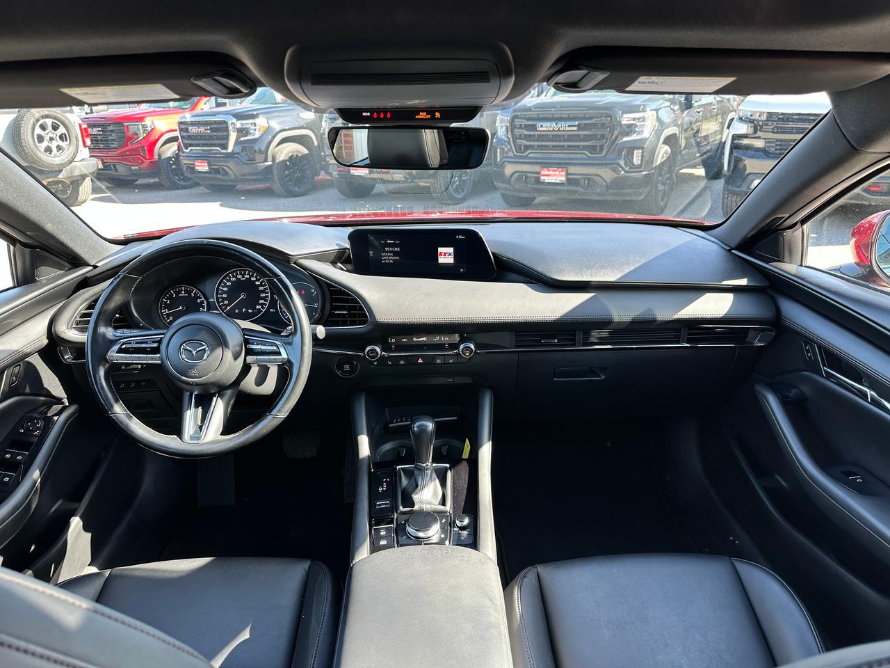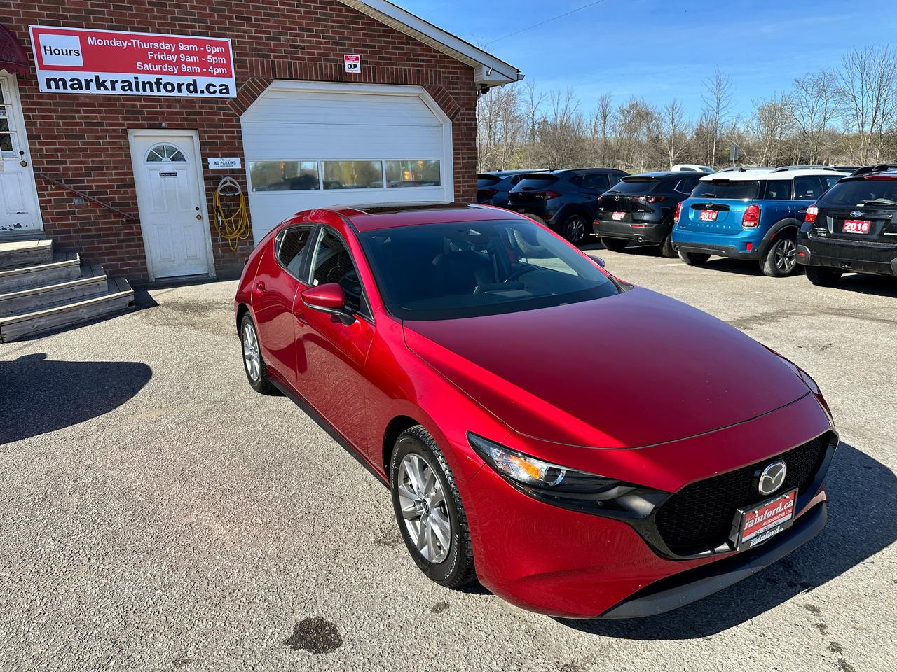 Super-Clean, Gorgeous One-Owner Mazda MAZDA3 from Toronto, ON! This GS Sport AWD model looks stunning in its Red paint and factory alloy wheels, with great options inside and out! The exterior features keyless entry, automatic headlights and high beams, a large factory power sunroof, colour-matched side mirrors with integrated turn signals, driver assistance settings including forward collision/adaptive cruise control and blind spot monitors, a sporty dual rear exhaust, a sleek rear spoiler, nice factory alloy wheels, a peppy fuel-efficient 2.5L 4-Cylinder Engine paired to a 6-Speed Automatic transmission and Mazda i-Activ All-Wheel-Drive system! The interior is clean and comfortable with heated leather front seats with driver's power adjustment, lumbar control and memory settings, power door locks, windows and mirrors, comfortable rear seating and a spacious cargo area, a heated leather wrapped steering wheel with Audio and Cruise controls, an easy to read and use gauge cluster, push button start, a large cental AM/FM Radio with Bluetooth, Apple CarPlay, Android Auto, and Backup Camera, with Navigation Capability ready, Dual-Zone A/C climate controls with front and rear window defrost settings, SPORT Driving mode, USB/12V accessory ports, and more!