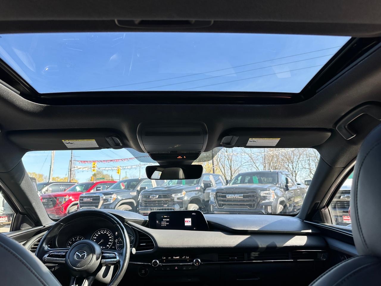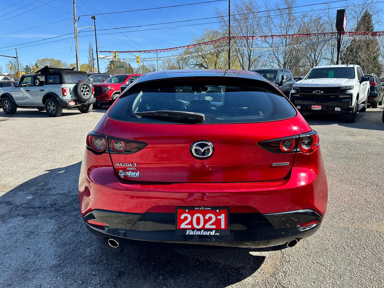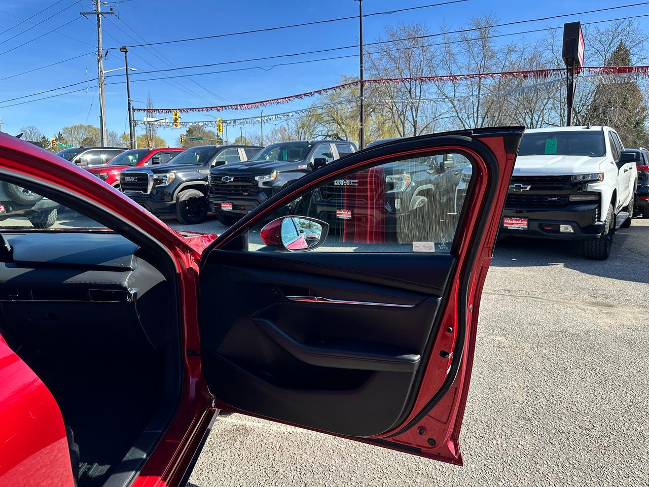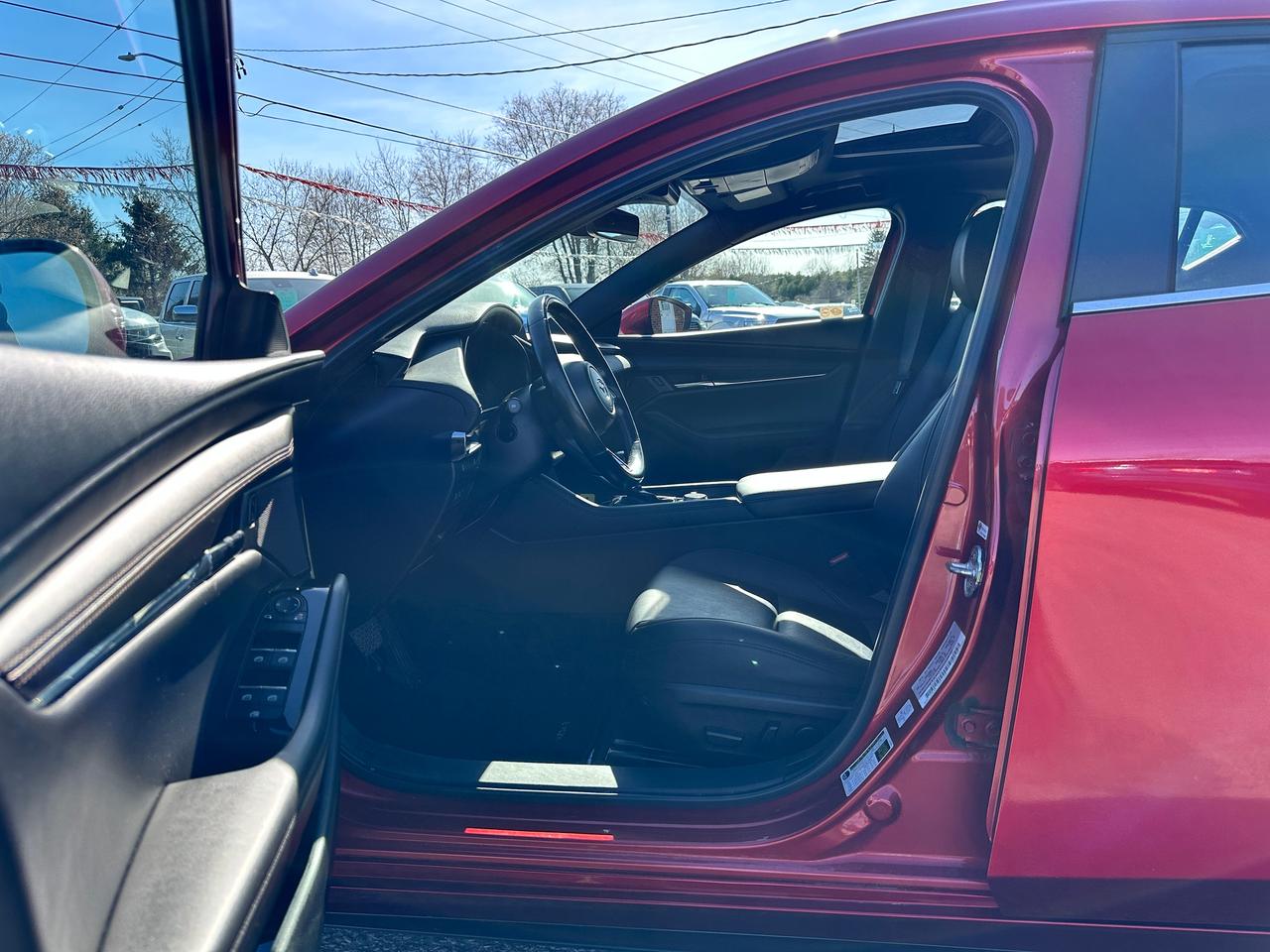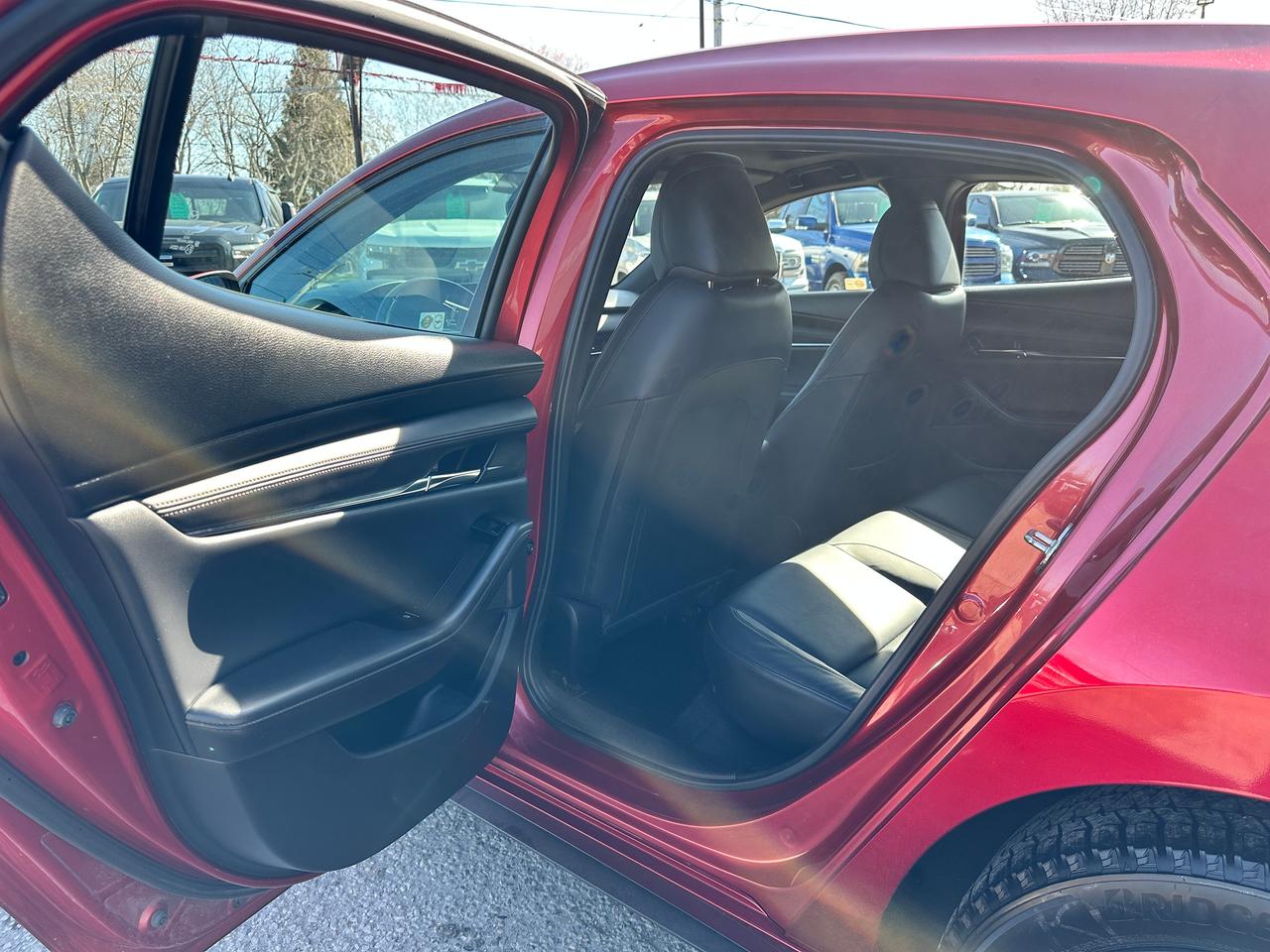 Super-Clean, Gorgeous One-Owner Mazda MAZDA3 from Toronto, ON! This GS Sport AWD model looks stunning in its Red paint and factory alloy wheels, with great options inside and out! The exterior features keyless entry, automatic headlights and high beams, a large factory power sunroof, colour-matched side mirrors with integrated turn signals, driver assistance settings including forward collision/adaptive cruise control and blind spot monitors, a sporty dual rear exhaust, a sleek rear spoiler, nice factory alloy wheels, a peppy fuel-efficient 2.5L 4-Cylinder Engine paired to a 6-Speed Automatic transmission and Mazda i-Activ All-Wheel-Drive system! The interior is clean and comfortable with heated leather front seats with driver's power adjustment, lumbar control and memory settings, power door locks, windows and mirrors, comfortable rear seating and a spacious cargo area, a heated leather wrapped steering wheel with Audio and Cruise controls, an easy to read and use gauge cluster, push button start, a large cental AM/FM Radio with Bluetooth, Apple CarPlay, Android Auto, and Backup Camera, with Navigation Capability ready, Dual-Zone A/C climate controls with front and rear window defrost settings, SPORT Driving mode, USB/12V accessory ports, and more!